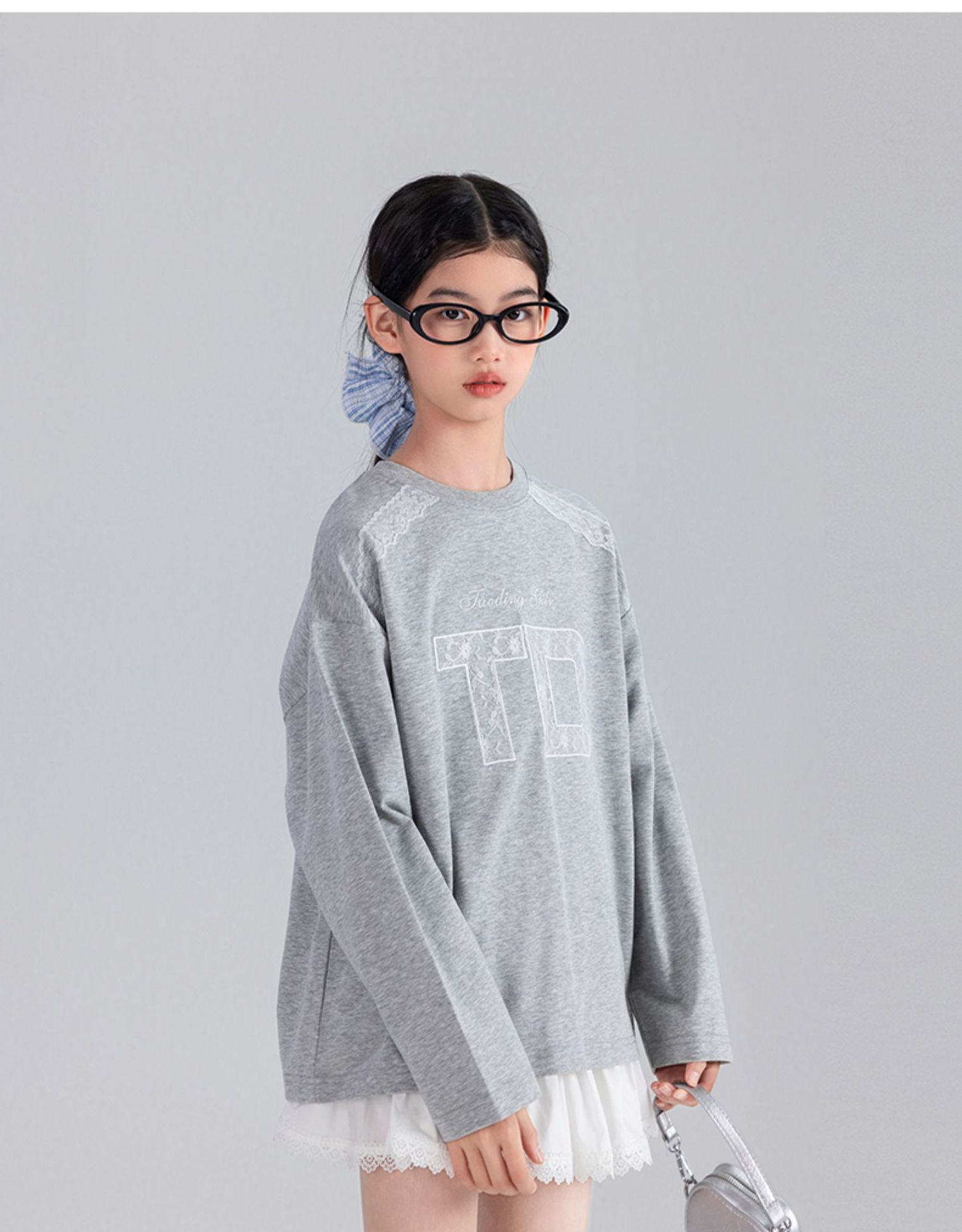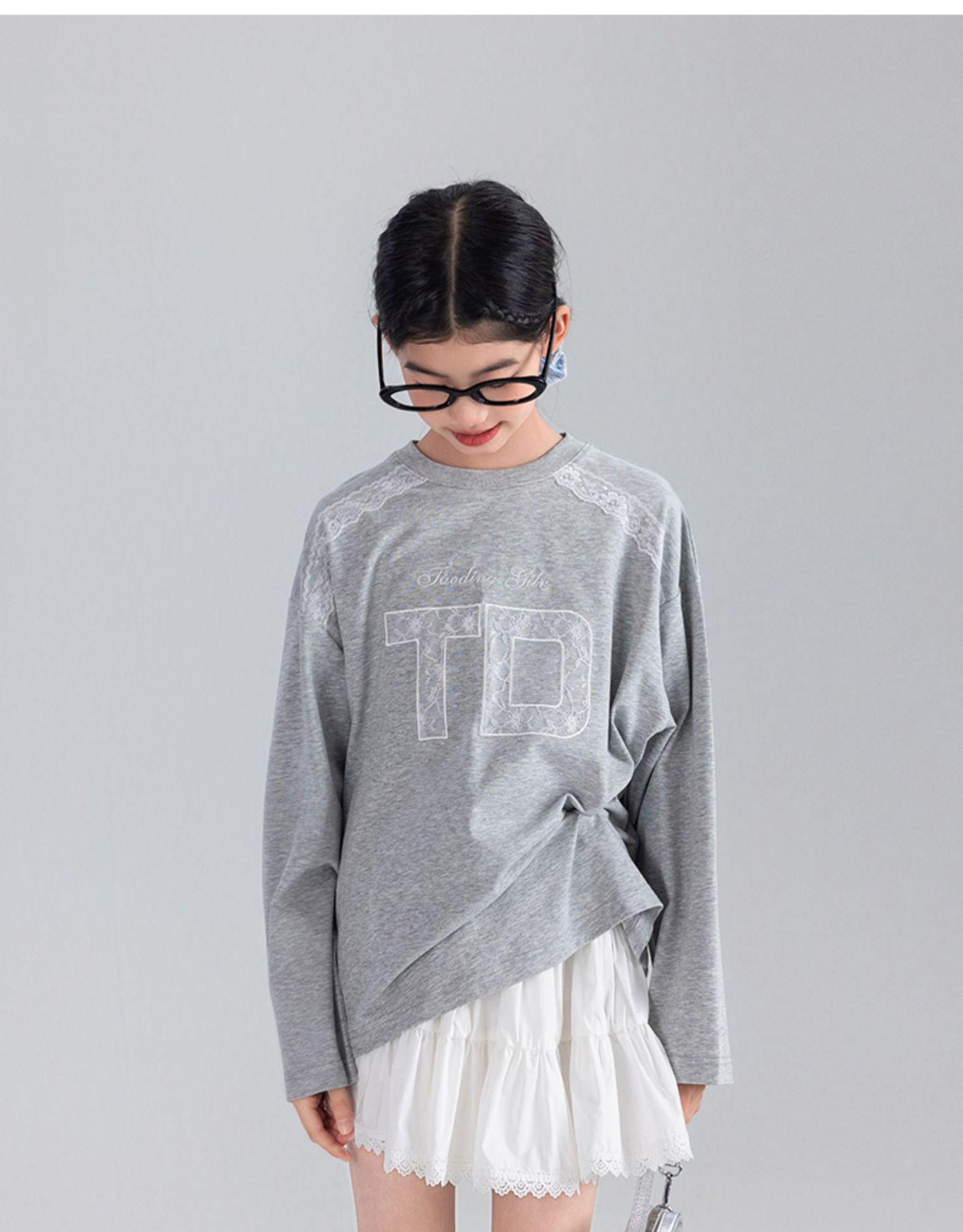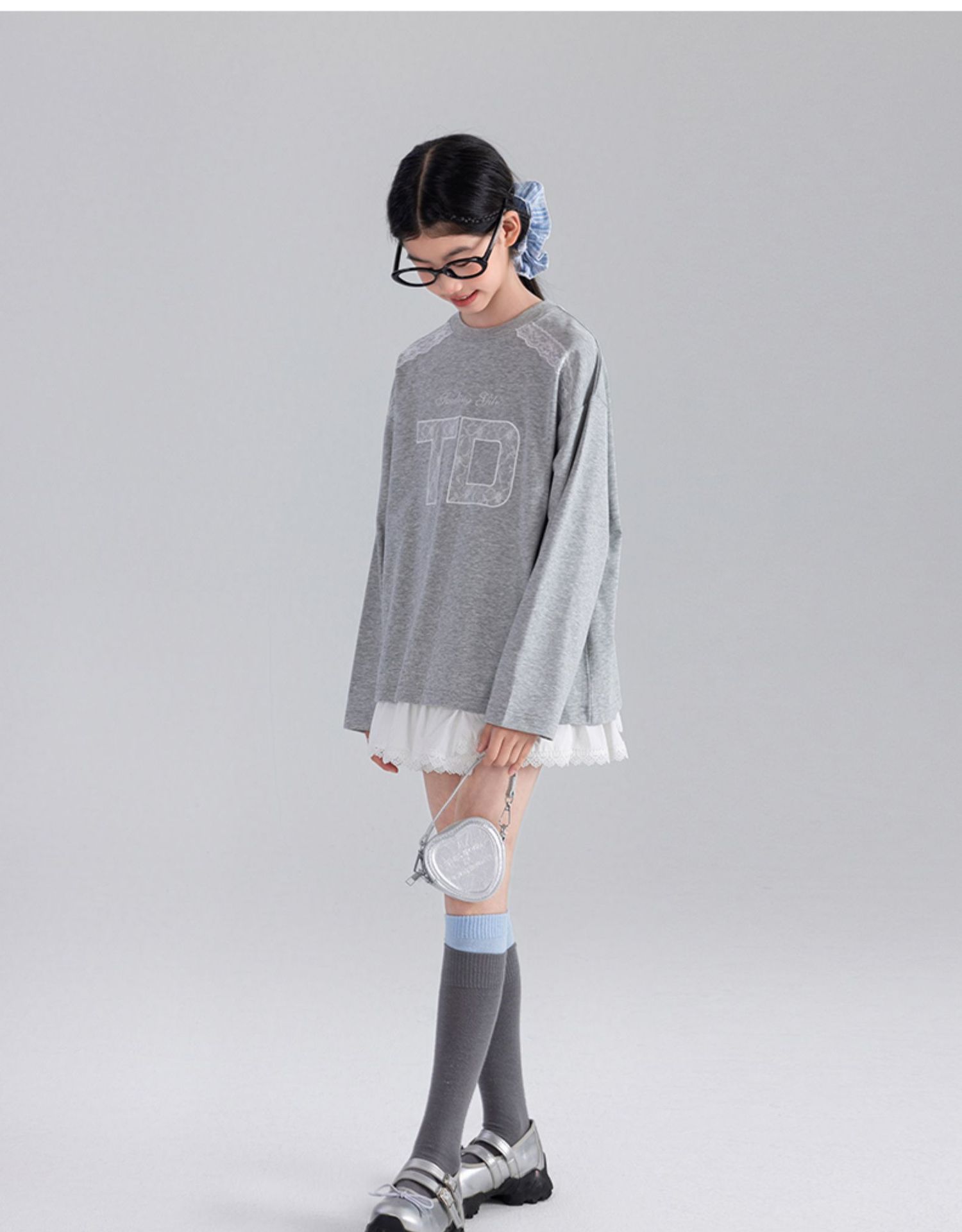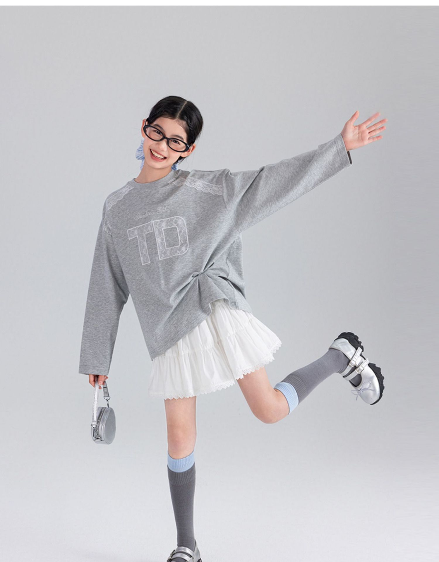 Amoy Town [외부 음악 교실] 여자 발레 긴 소매 티셔츠 봄과 가을 새로운 올 매치 루즈베이스 셔츠스토어 가기