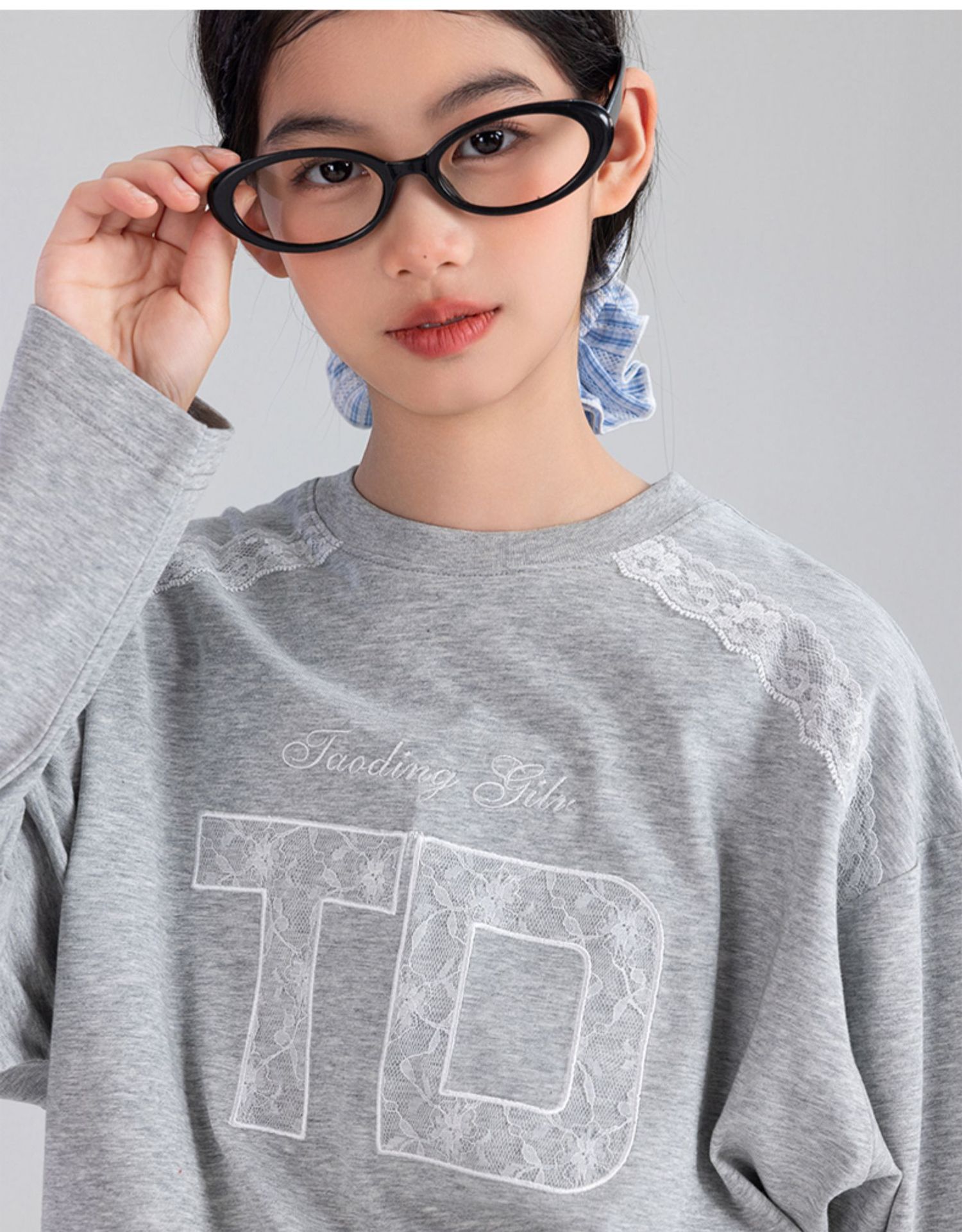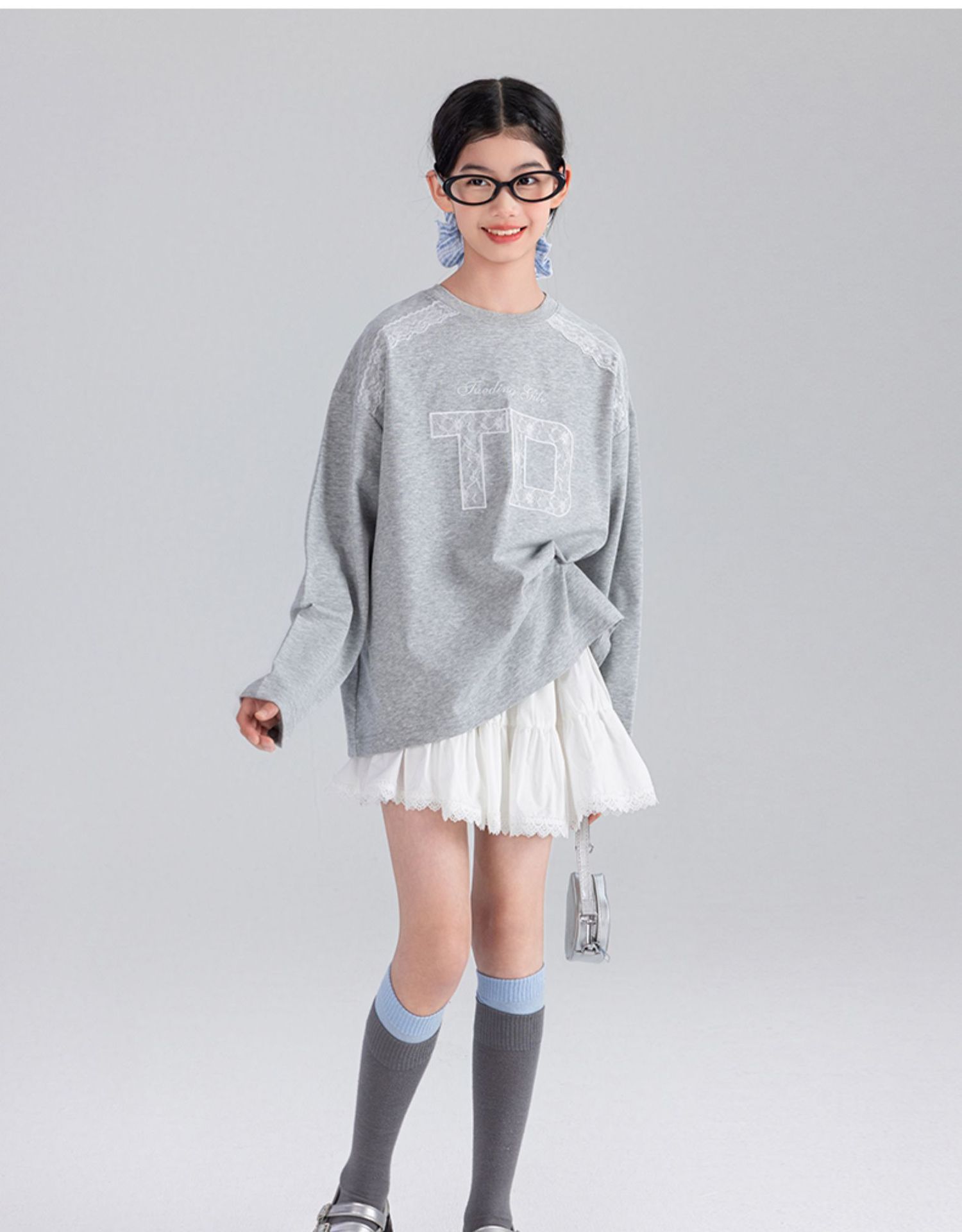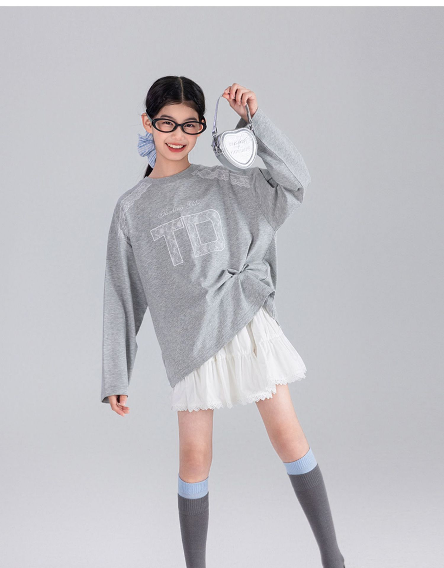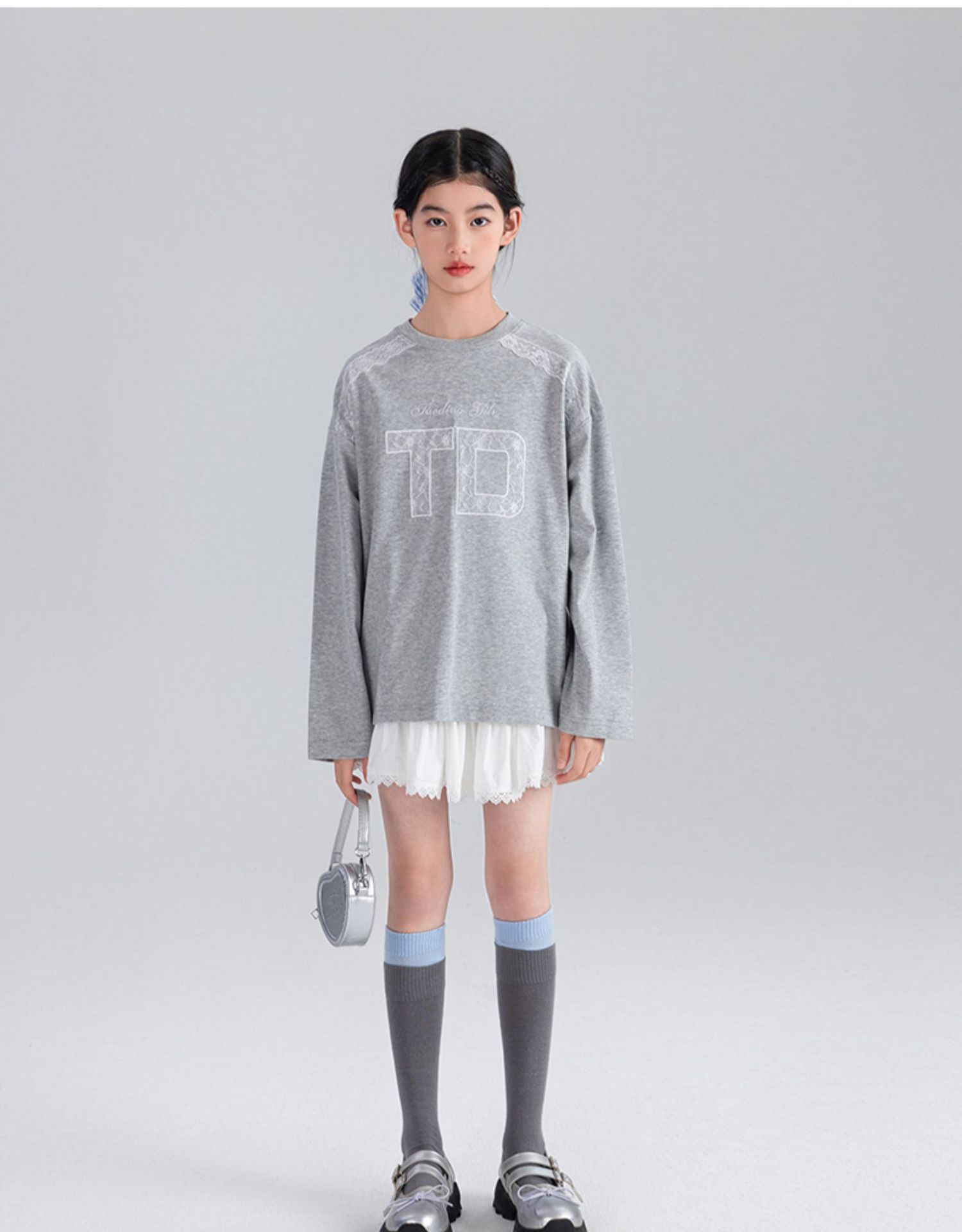 Amoy Town [외부 음악 교실] 여자 발레 긴 소매 티셔츠 봄과 가을 새로운 올 매치 루즈베이스 셔츠스토어 가기