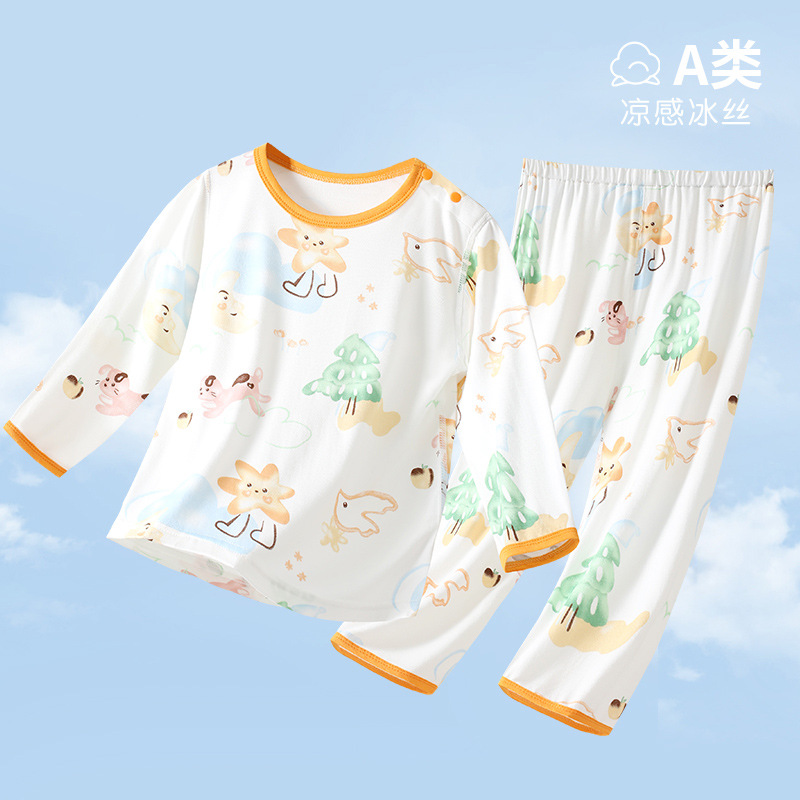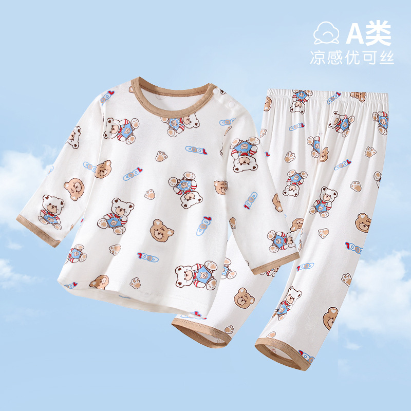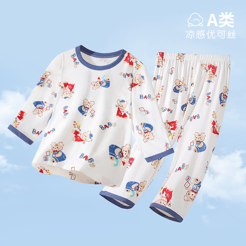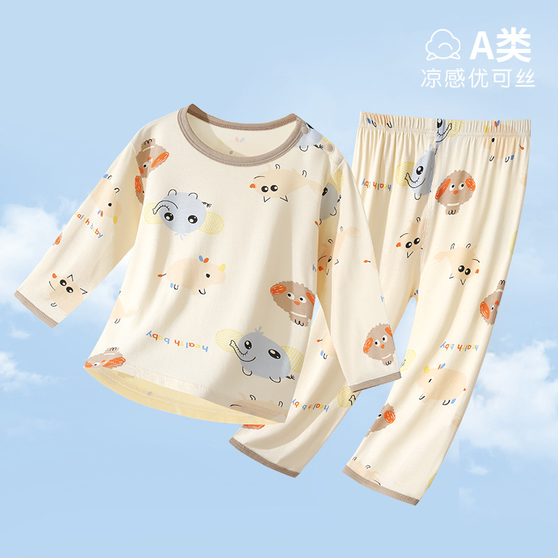 아기 홈 에어컨 옷 EcoCos 여름 얇은 아기 긴팔 어린이 잠옷 세트 소년과 소녀 여름 옷스토어 가기