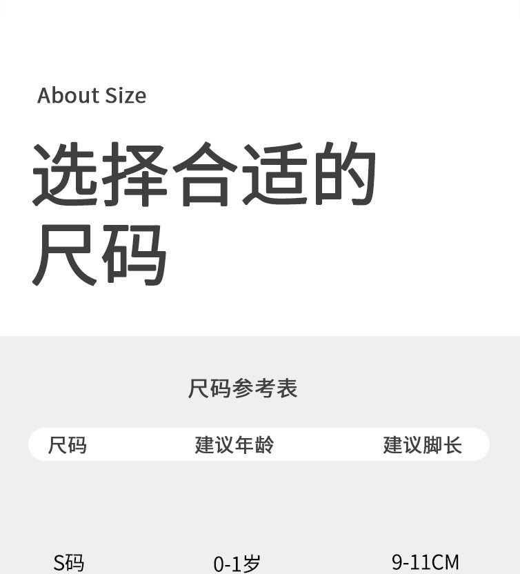 • S 사이즈 0-1세, 권장 발 길이 9-11CM