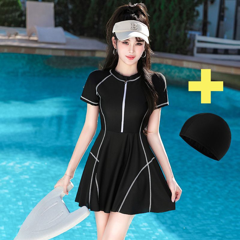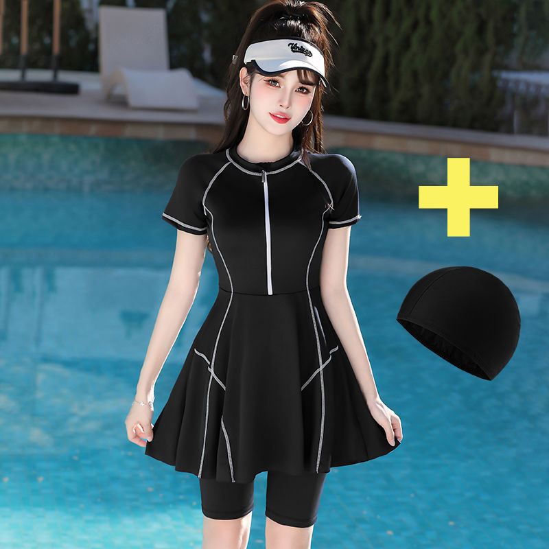• 검정색 수영모 + 876 원피스 복서 브리프 - 검정색(속건성)