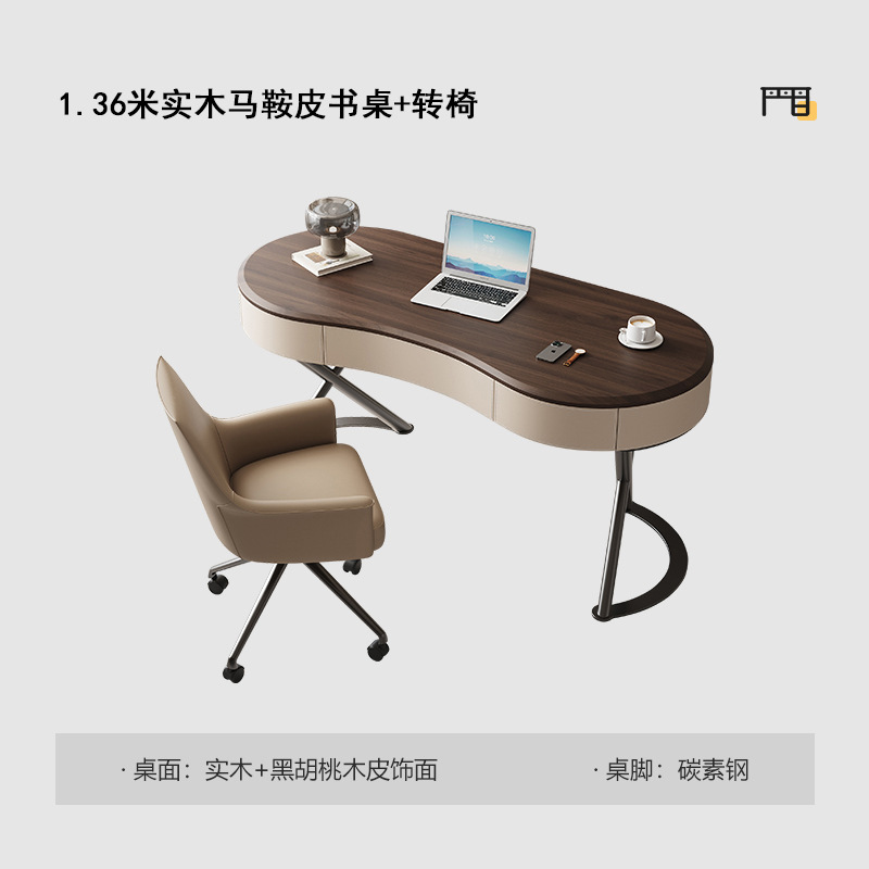 • 1.36m 블랙 월넛 책상 + 회전의자 (가죽)
