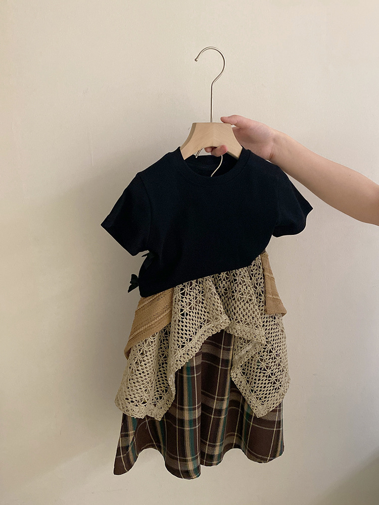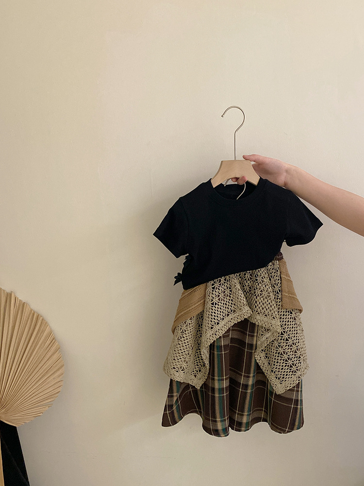 여자 한국식 활 단색 반팔 2025 디자인 틈새 올매치 할로우 아웃 플레이드 트렌디 스커트스토어 가기