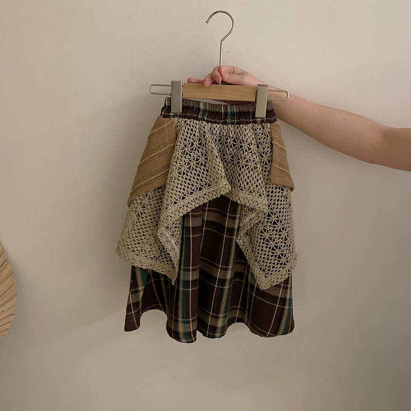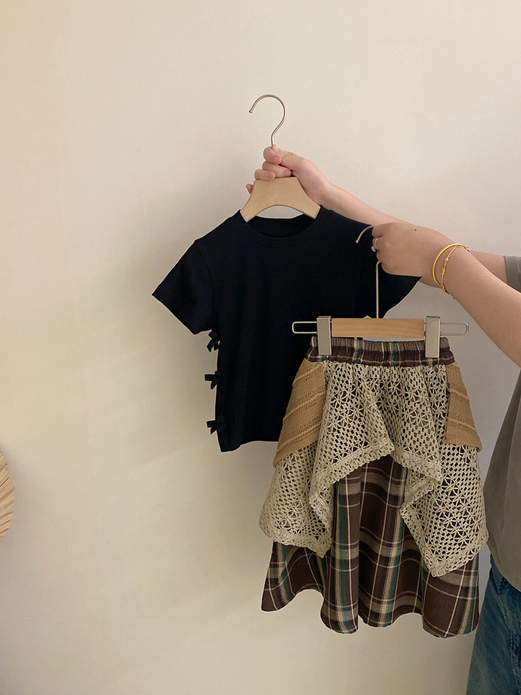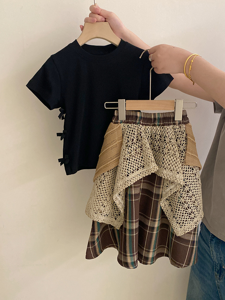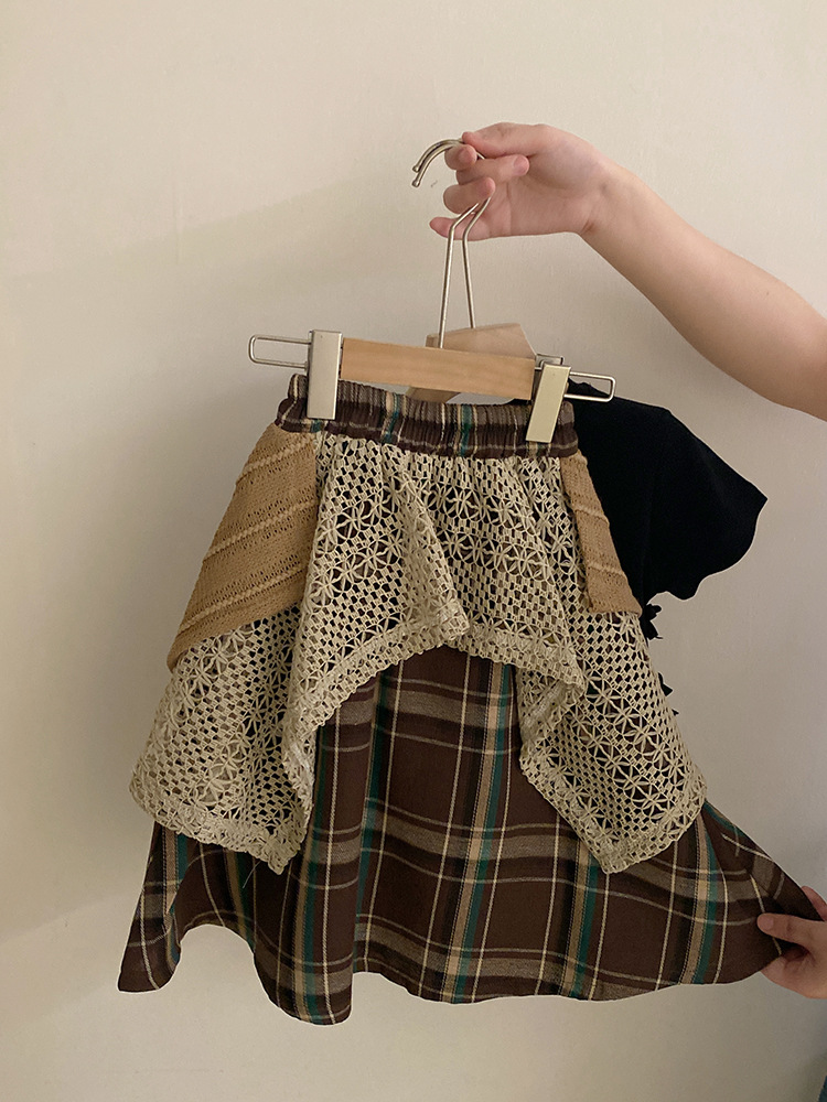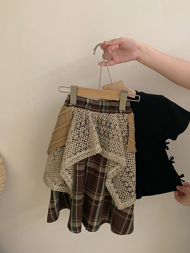 여자 한국식 활 단색 반팔 2025 디자인 틈새 올매치 할로우 아웃 플레이드 트렌디 스커트
