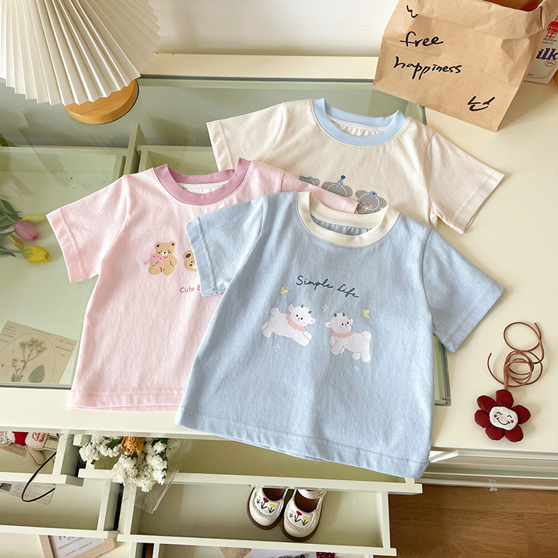 [재고] XY259425 어린이 반팔 2025 여름 새로운 한국 만화 강아지 경량 통기성 캐주얼스토어 가기