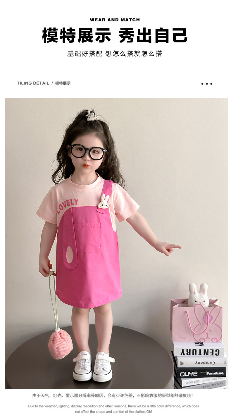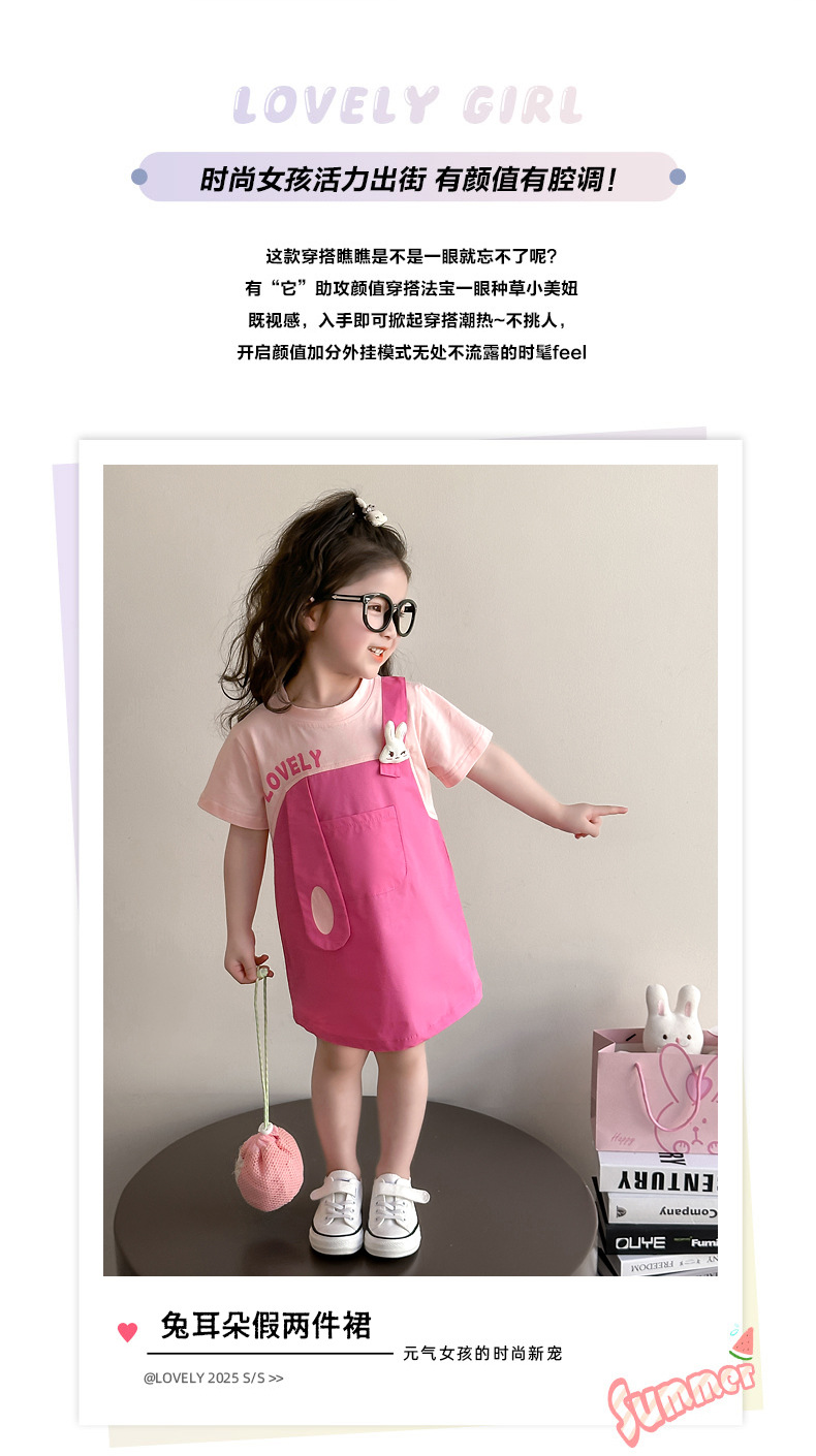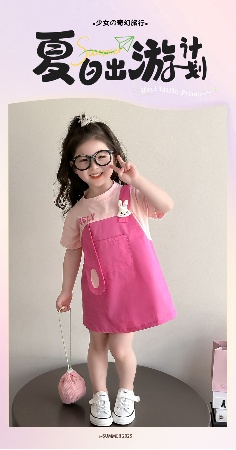 여자 티셔츠 스커트 여름 2025 새로운 스타일 독특하고 아름다운 외국 스타일 반팔 어린이 여름 드레스스토어 가기