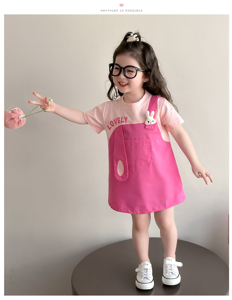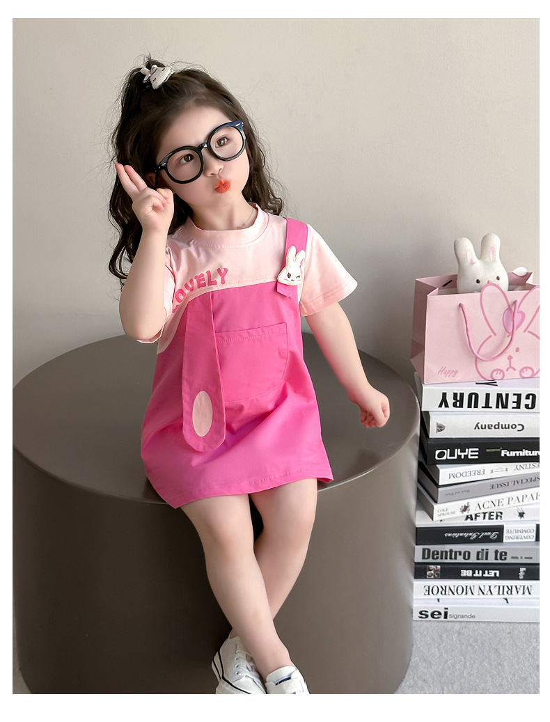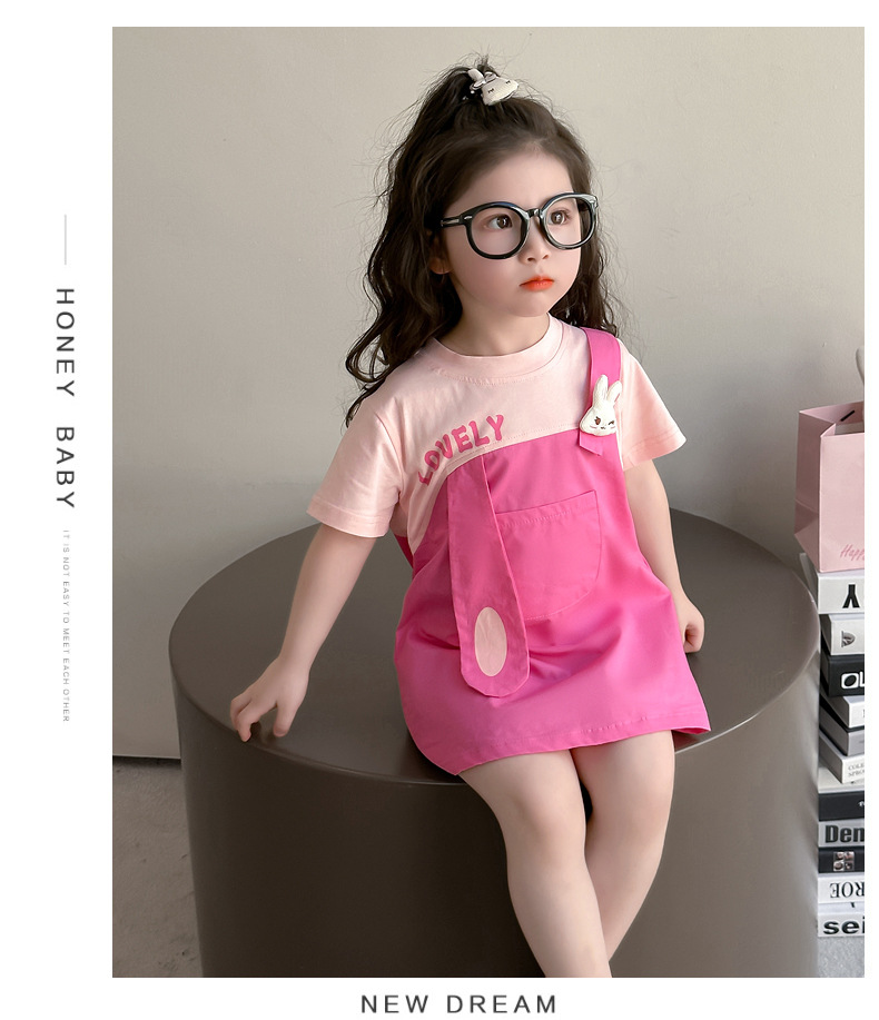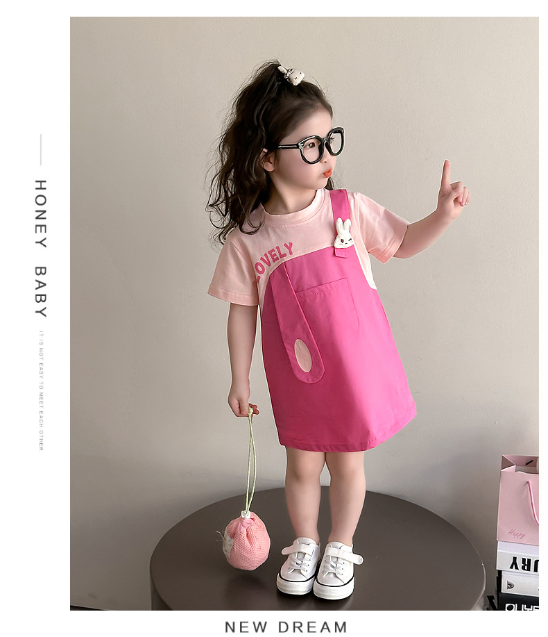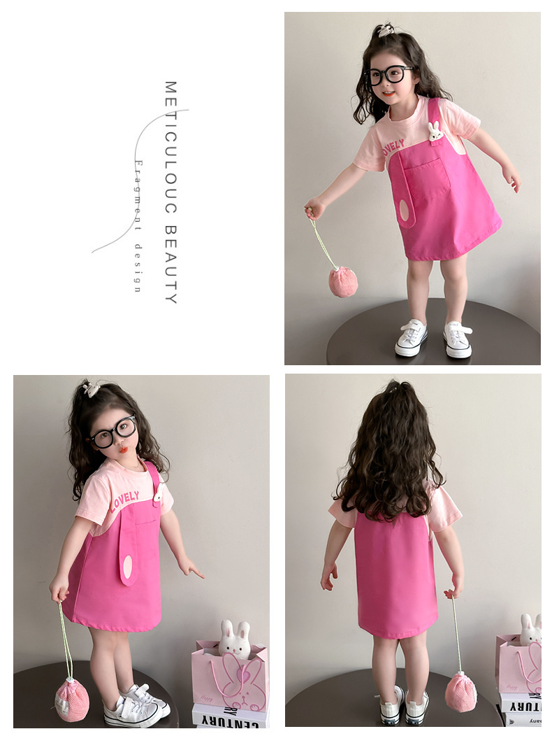 여자 티셔츠 스커트 여름 2025 새로운 스타일 독특하고 아름다운 외국 스타일 반팔 어린이 여름 드레스스토어 가기