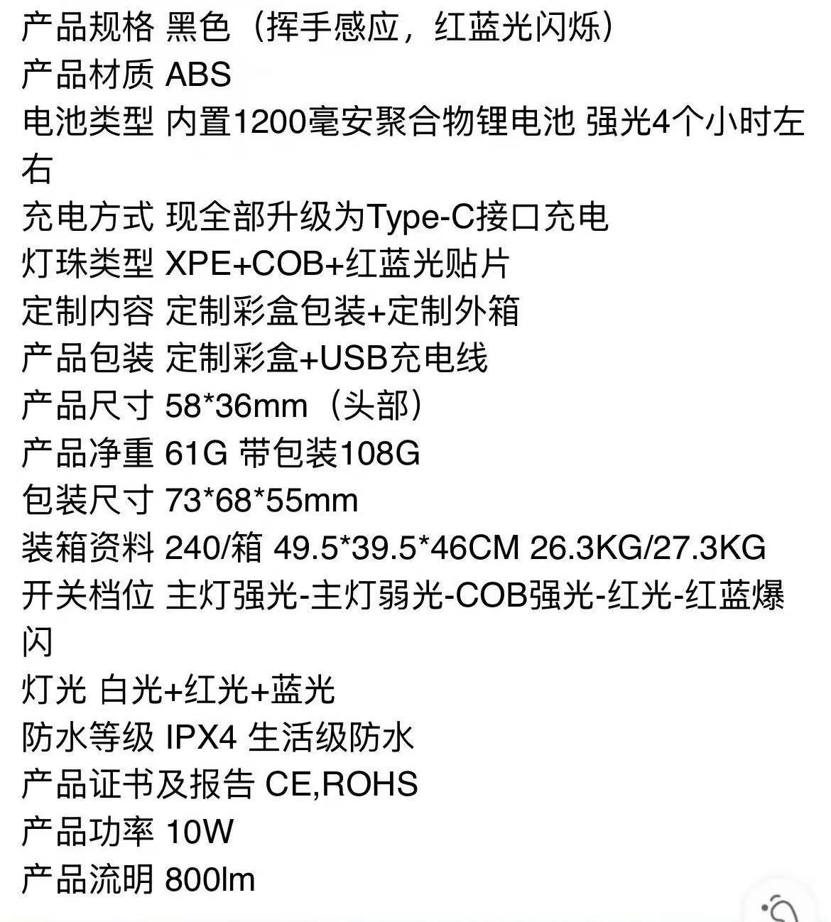 • 유도 헤드라이트 + USB 케이블 + 컬러 박스