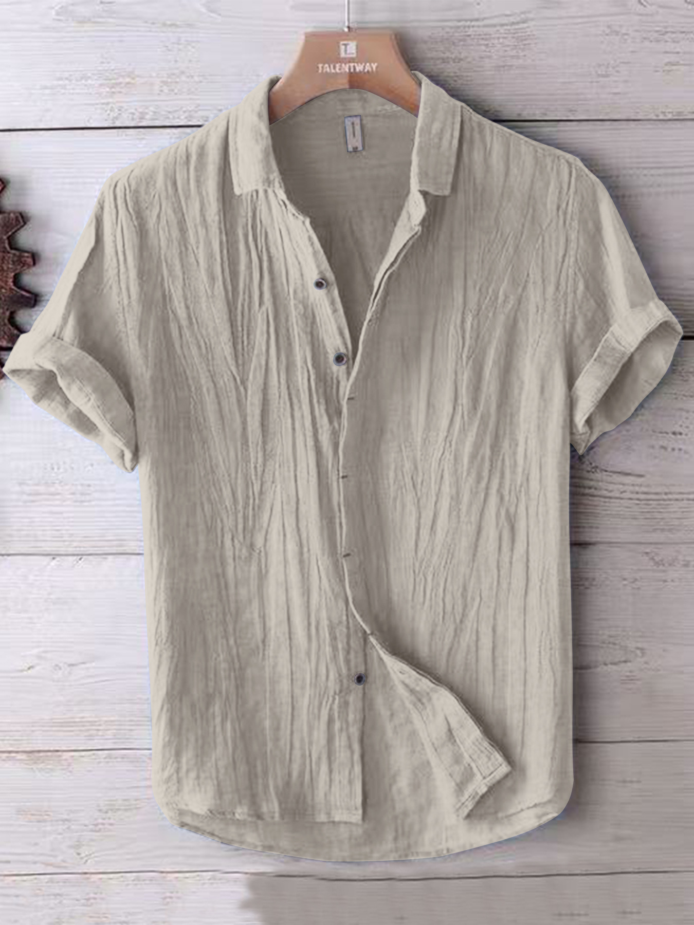재고 뉴 2025 여름 도시 셔츠 남성용 솔리드 컬러 코튼 리넨 짧은 소매 느슨한 행운 남성용 셔츠스토어 가기