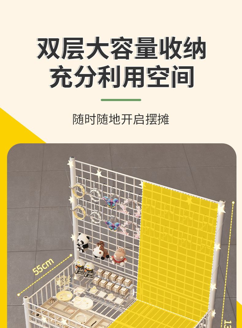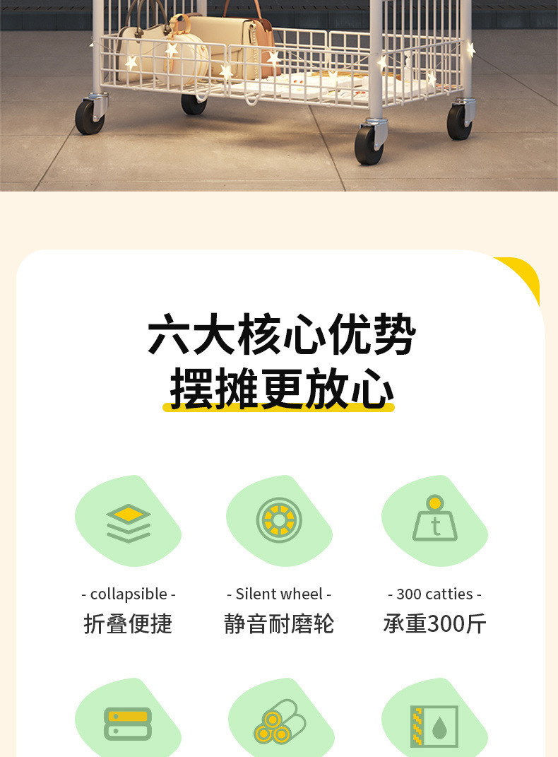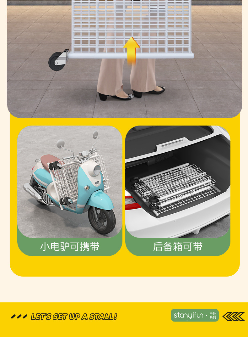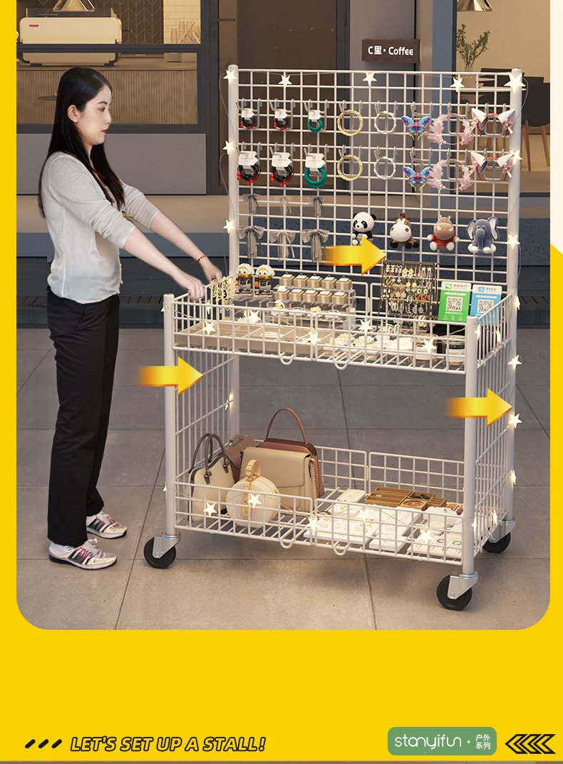 바닥 마구간 비즈니스 트롤리 보석 접이식 디스플레이 랙 야시장 마구간 그리드 프로모션 자동차
