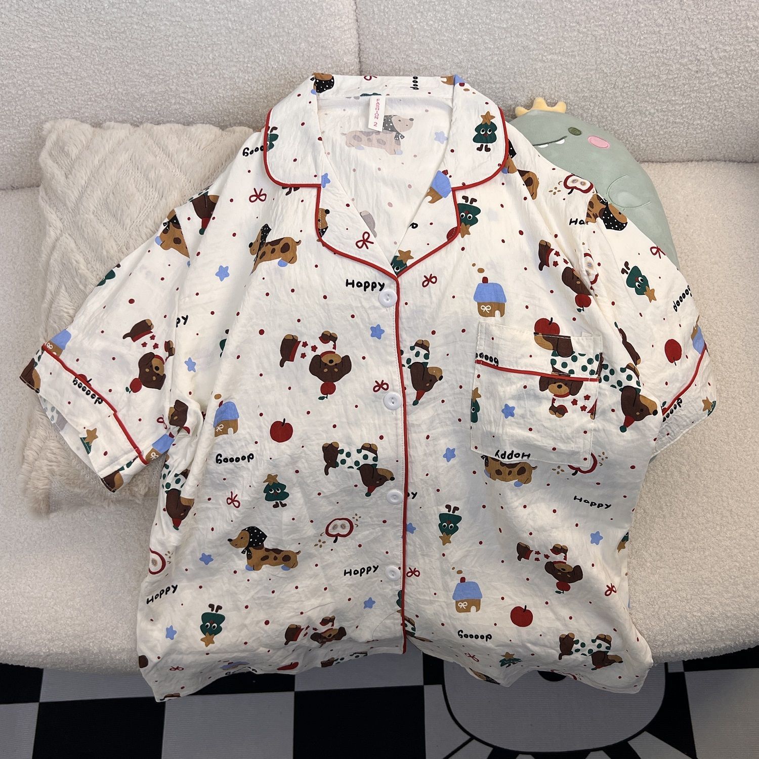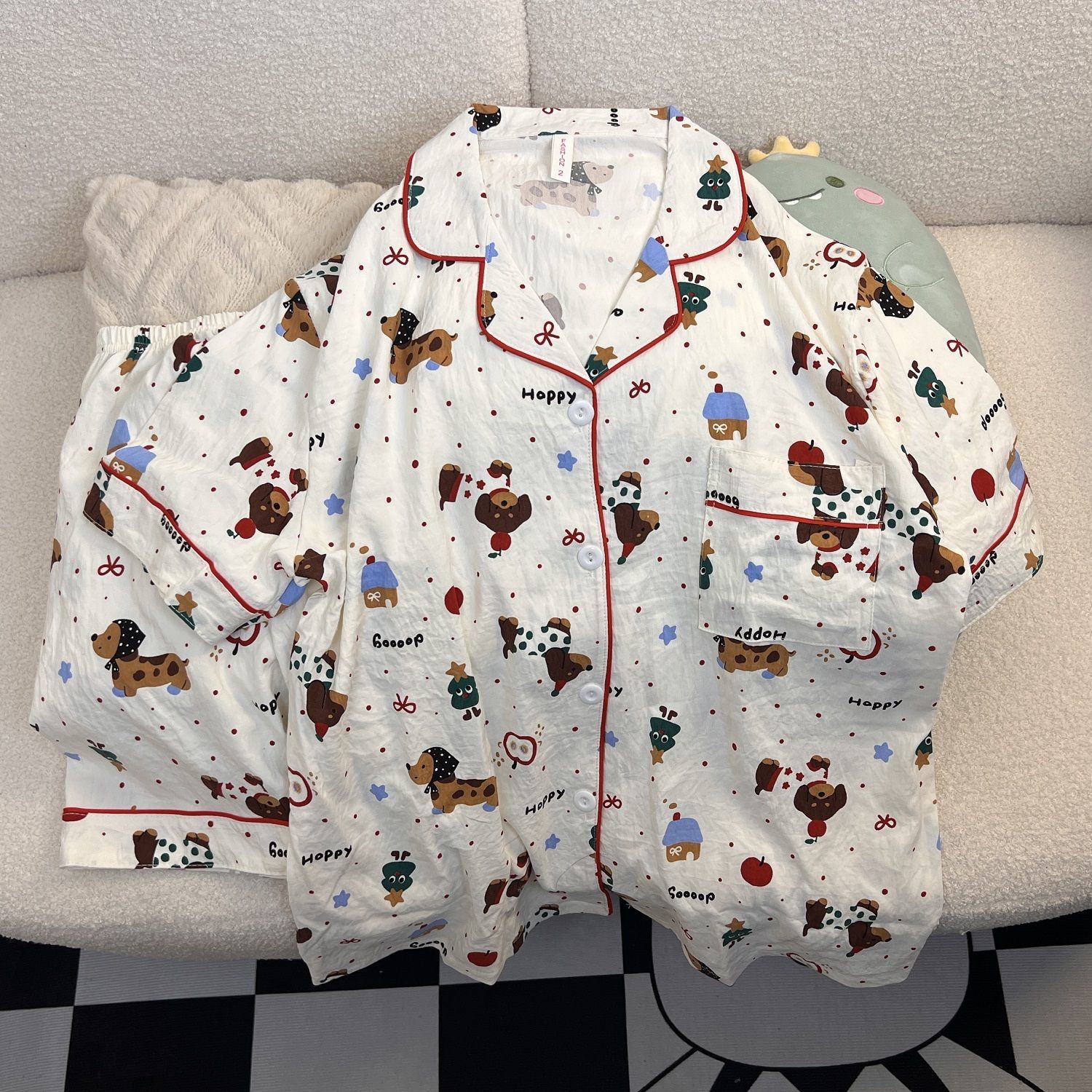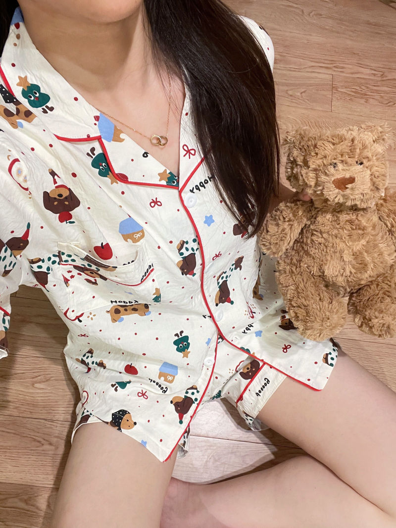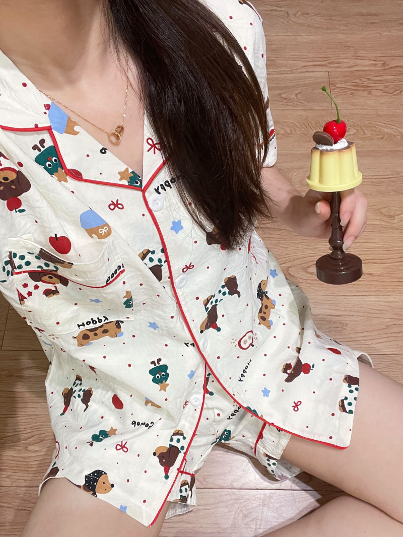 고급스러운 격자 무늬 KT 인기 클라우드 코튼 얇은 여름 루즈 잠옷 여성 반팔 반바지 홈웨어 세트스토어 가기