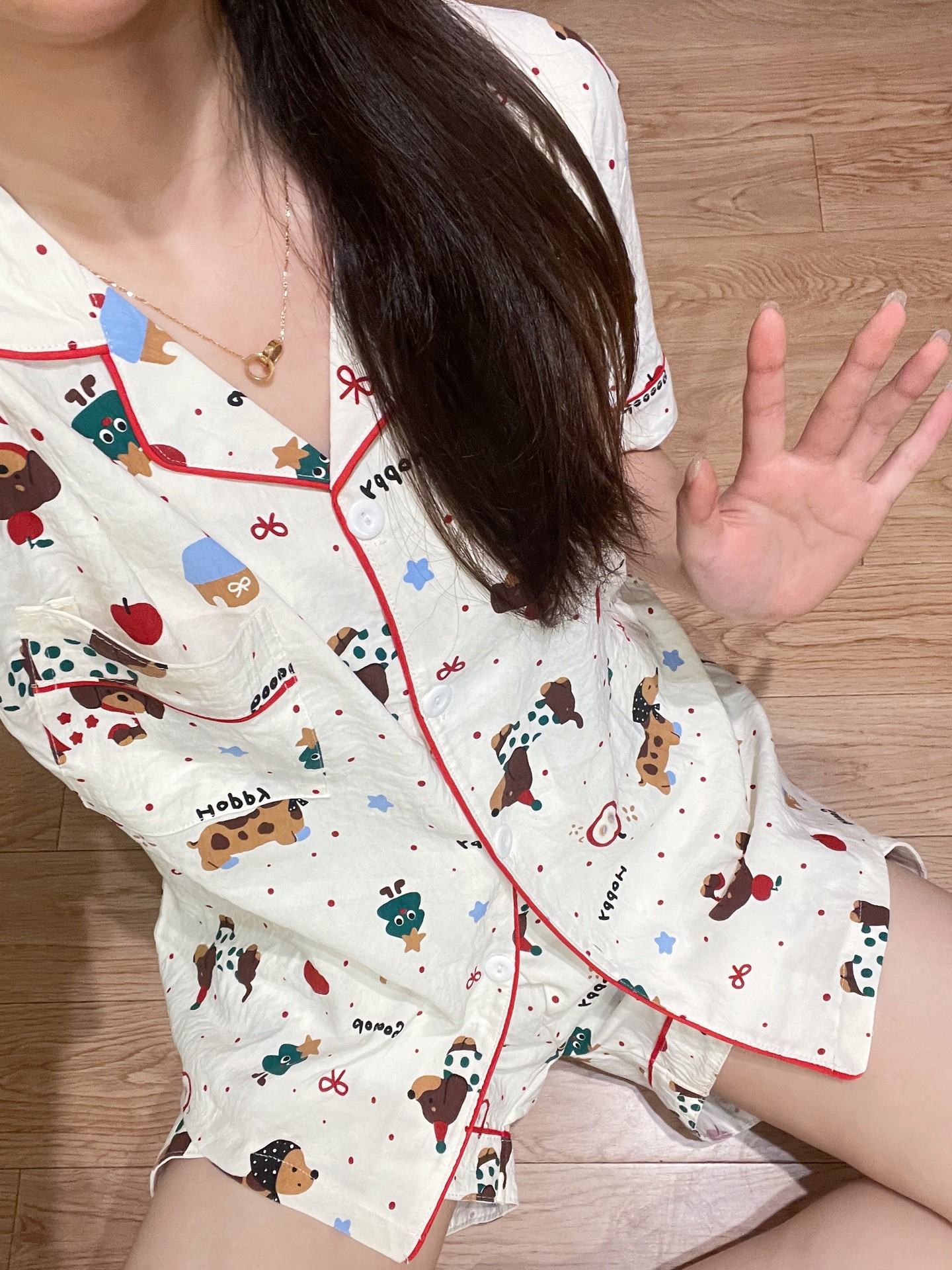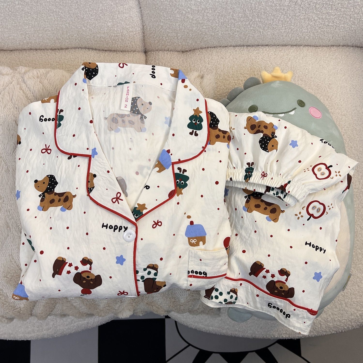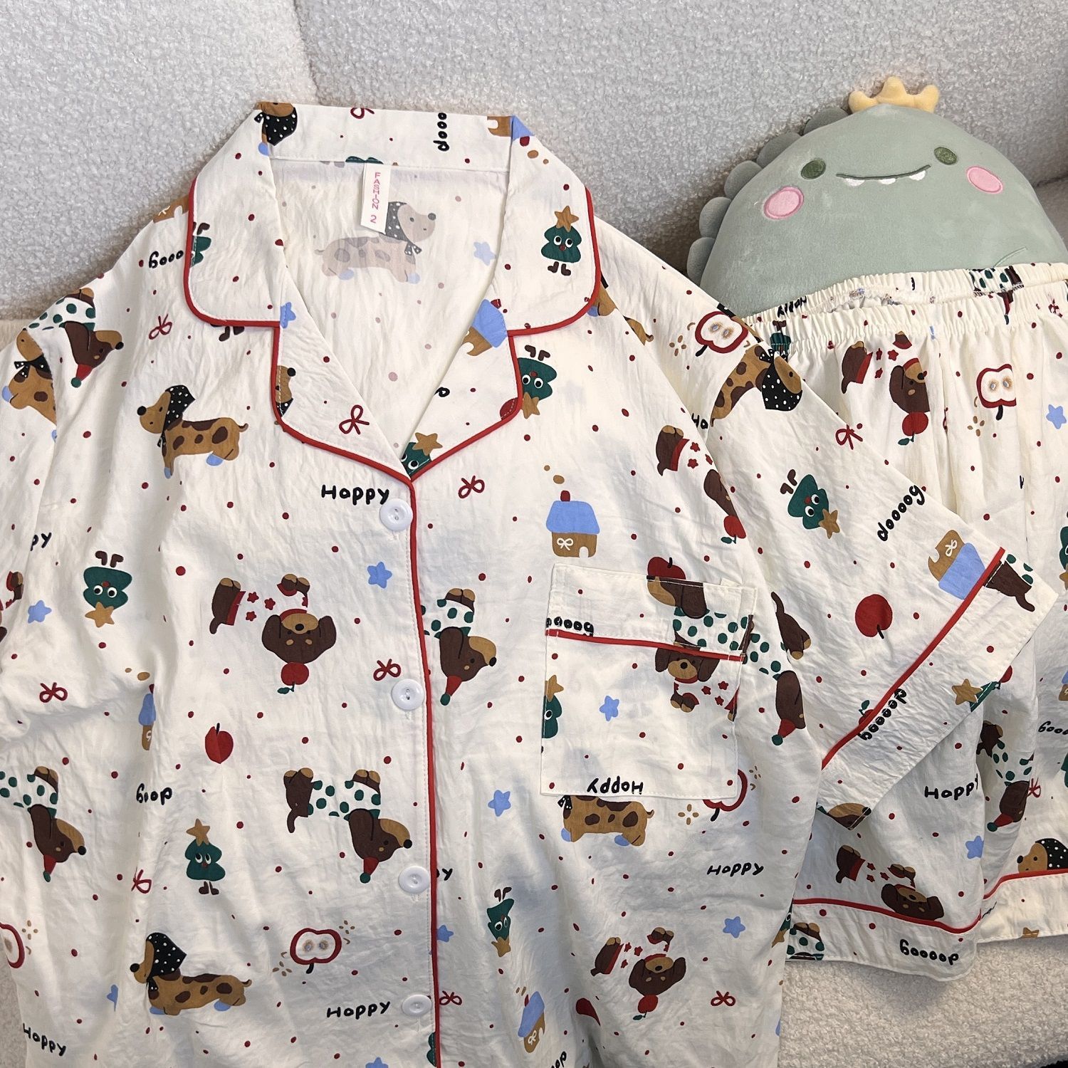 고급스러운 격자 무늬 KT 인기 클라우드 코튼 얇은 여름 루즈 잠옷 여성 반팔 반바지 홈웨어 세트스토어 가기