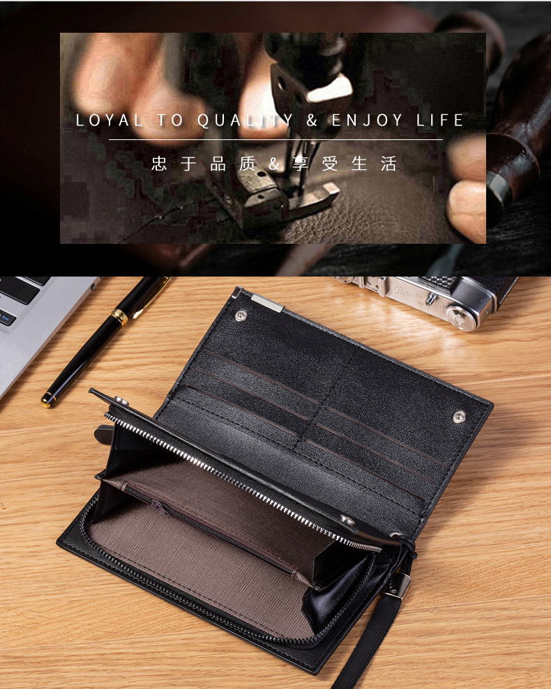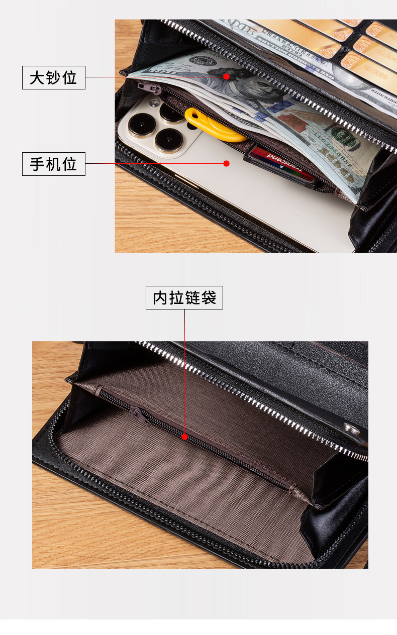 국경을 넘는 신상 남성용 롱 지퍼 클러치 카드지갑, 대용량 다중 카드 슬롯, 휴대성 좋고 가벼움스토어 가기