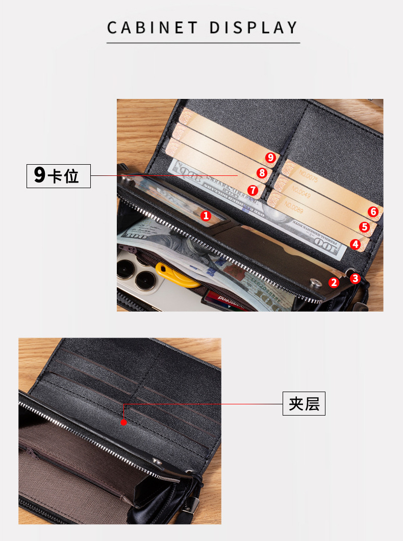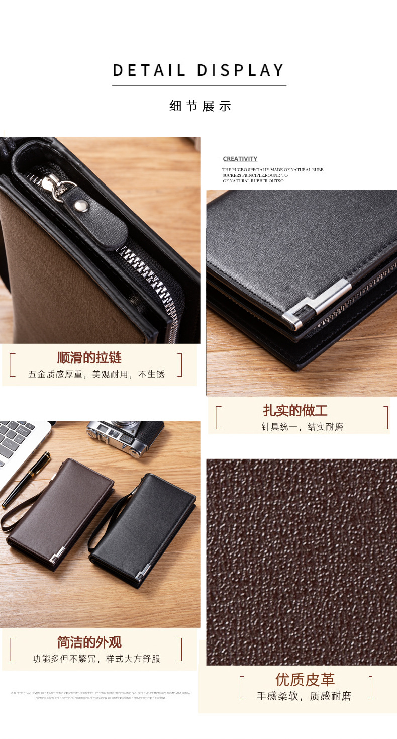 국경을 넘는 신상 남성용 롱 지퍼 클러치 카드지갑, 대용량 다중 카드 슬롯, 휴대성 좋고 가벼움