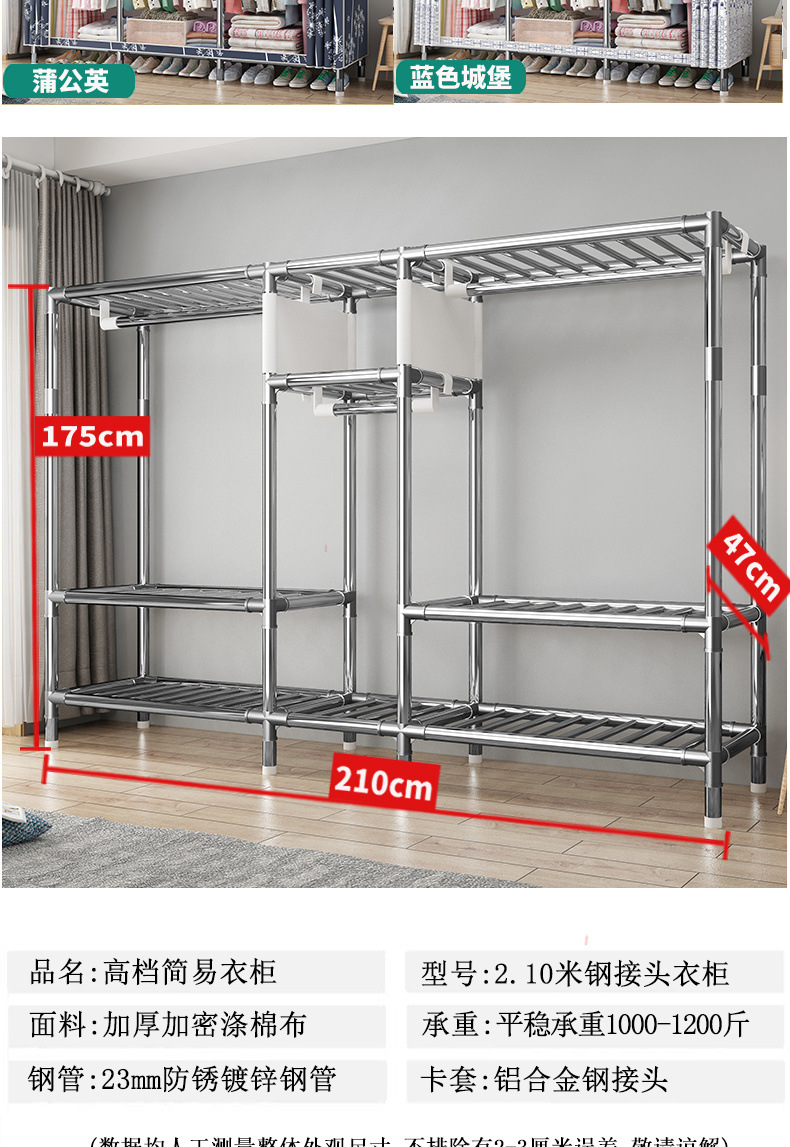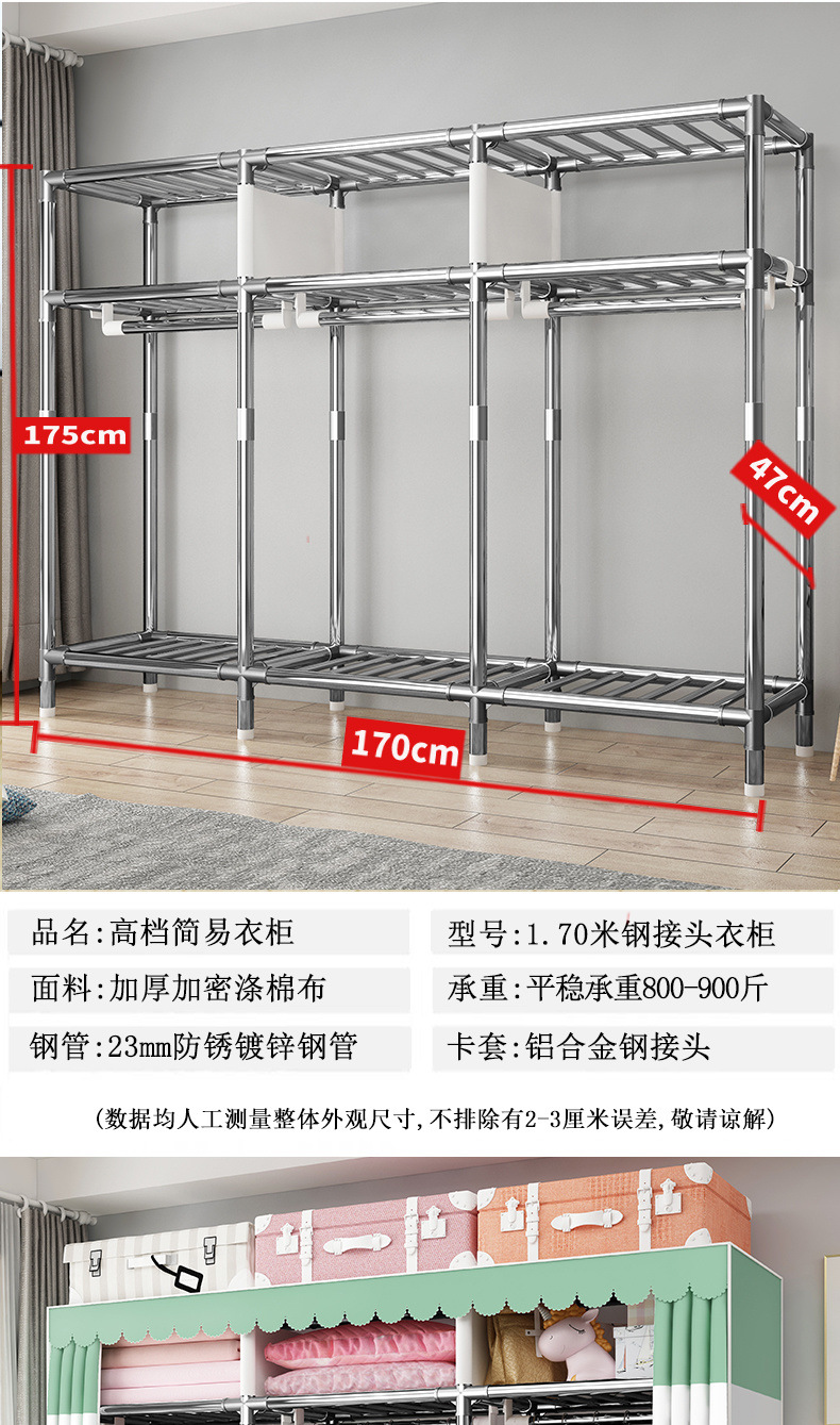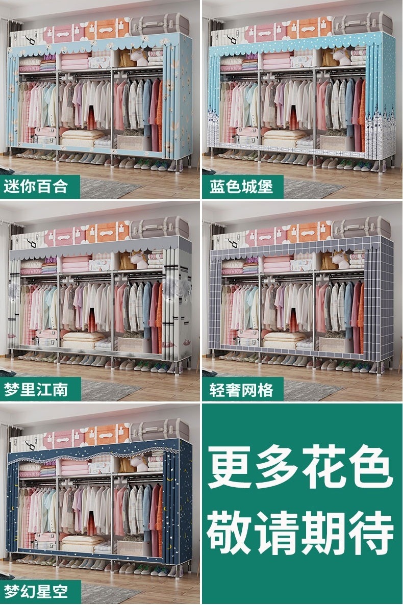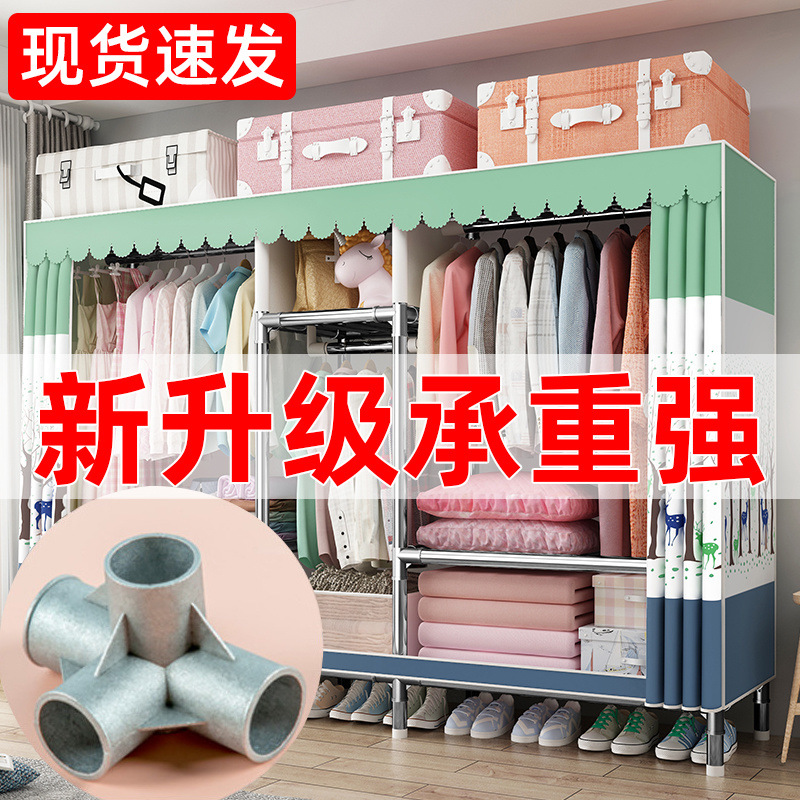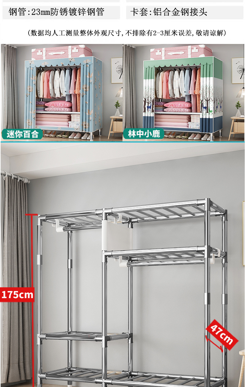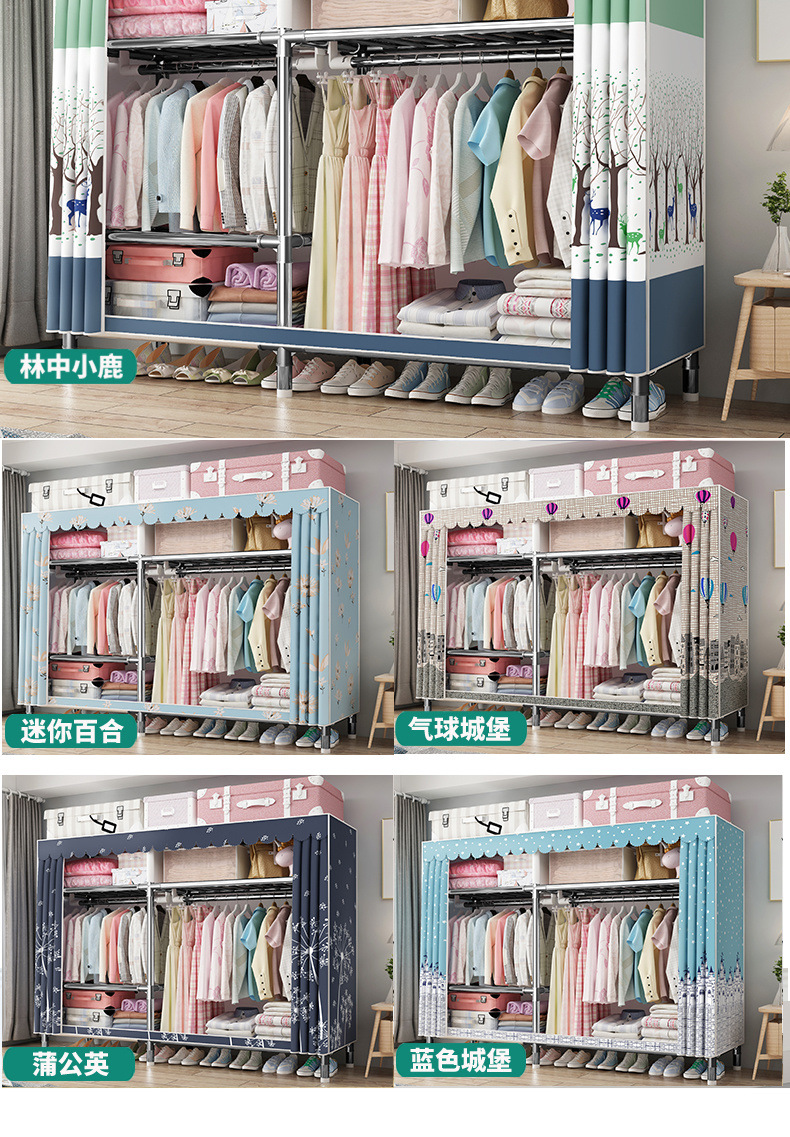 간단한 천 옷장 강철 파이프 두꺼운 천 원목 대형 및 중형 싱글 및 더블 수납 선반 렌탈 하우스용 걸이형스토어 가기