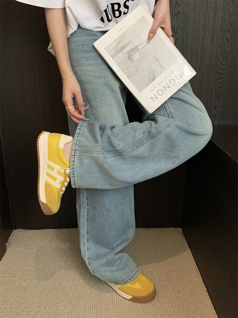 Shougu의 인기 있는 정품 가죽 캐주얼 스포츠 두꺼운 밑창 운동화, 가볍고 부드러운 밑창의 와플 포레스트 검프 트레이닝 슈즈, 여성용 트렌디스토어 가기