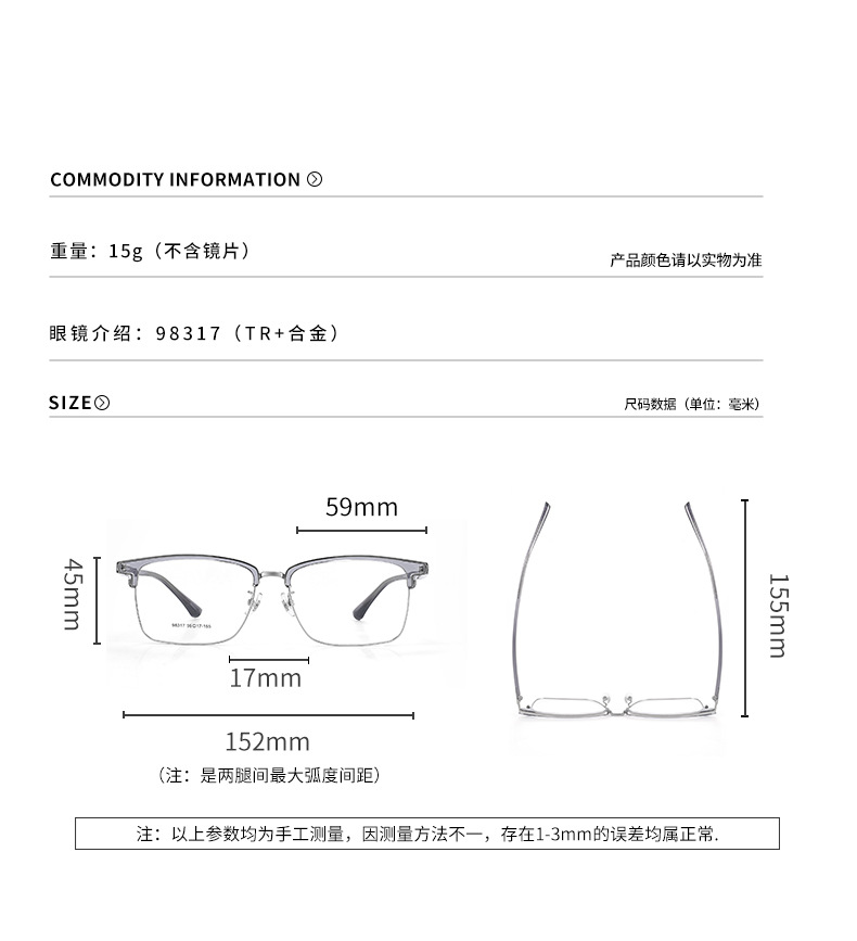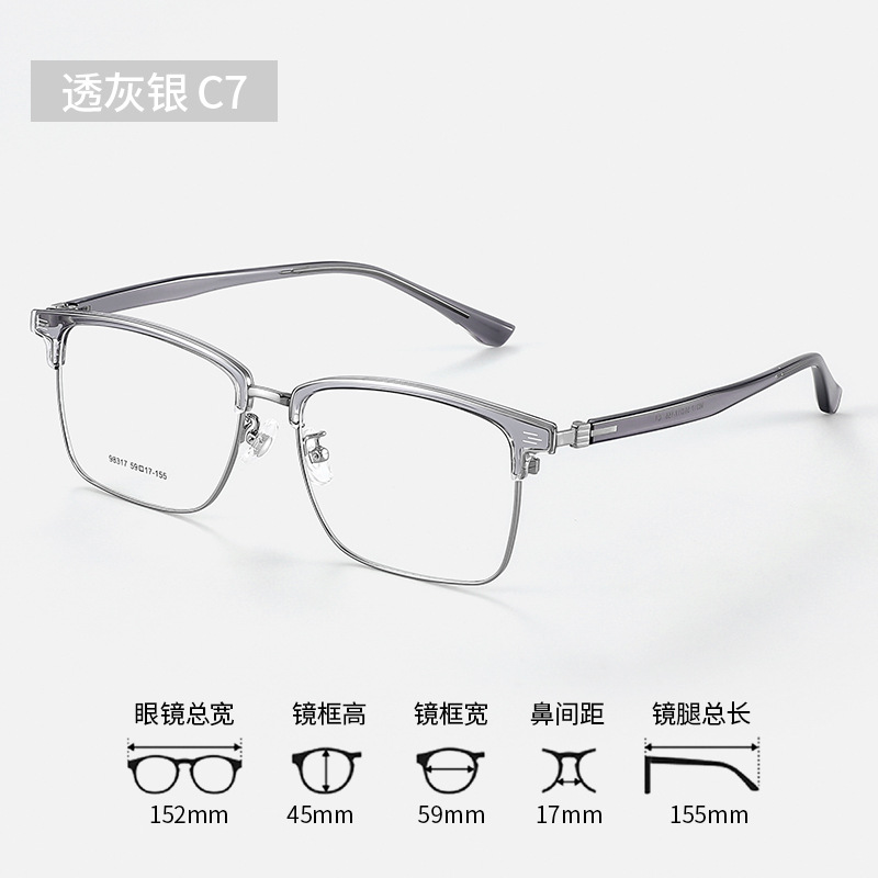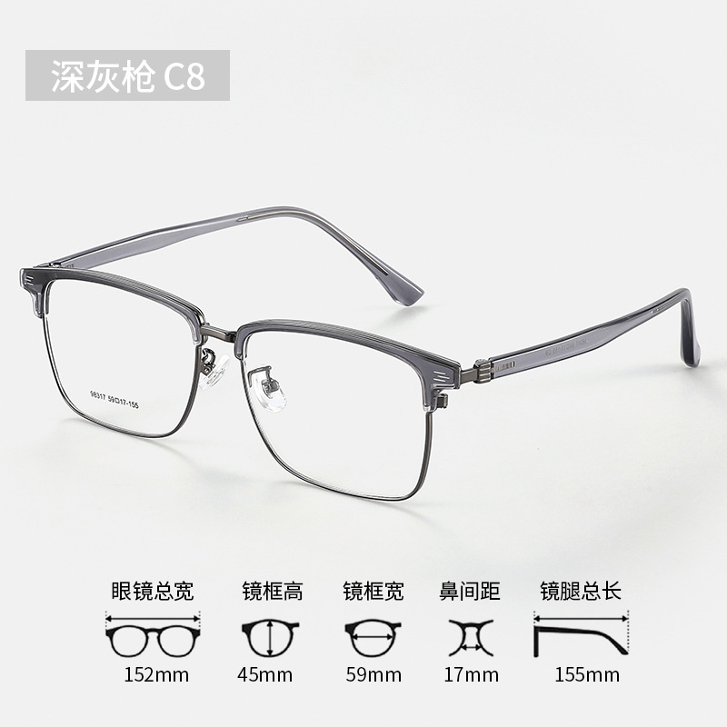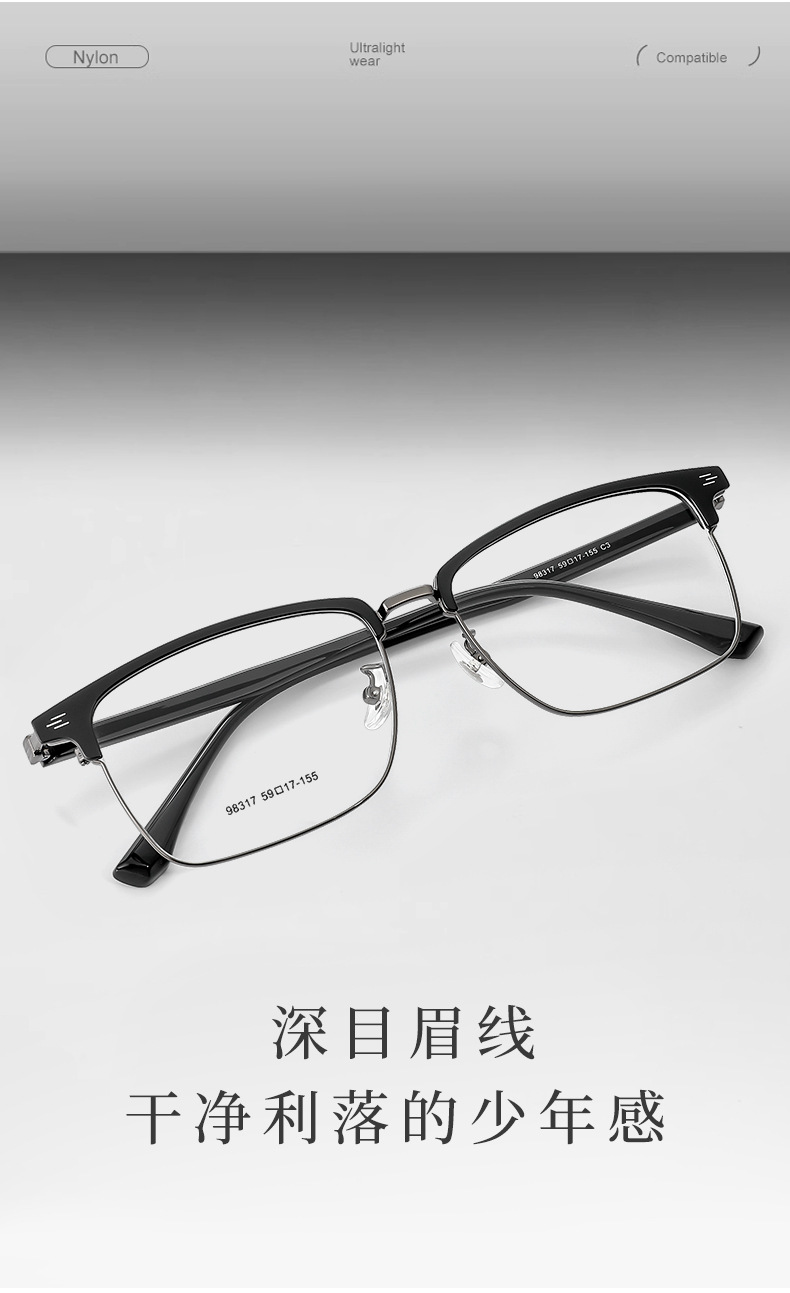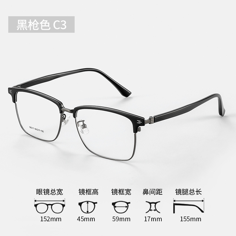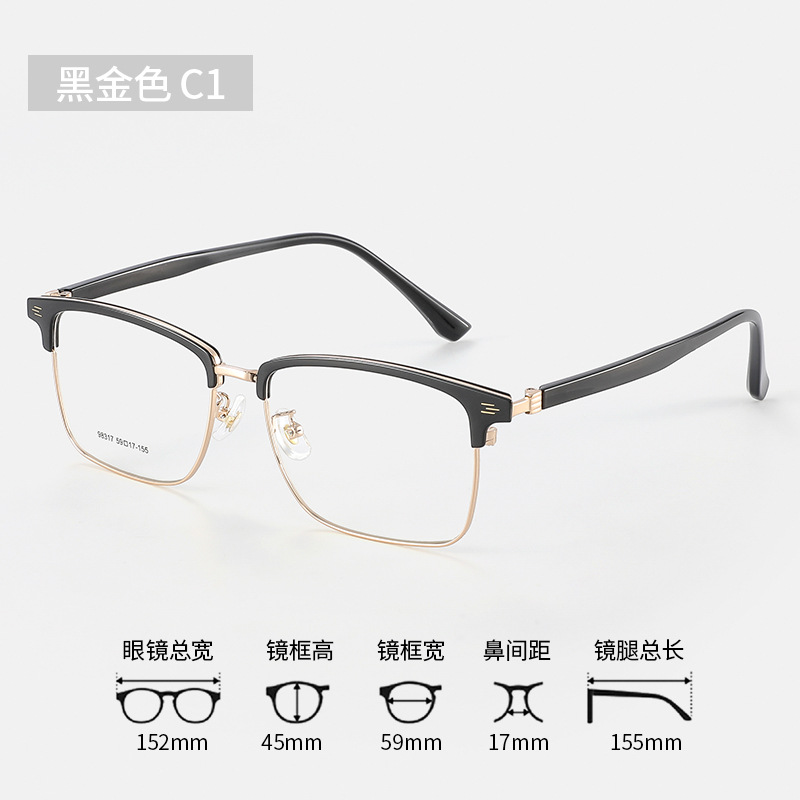 눈썹 프레임 하프 프레임 빅 페이스 비즈니스 TR90 안경 남성 복고풍 근시 안경 98317 단양 안경스토어 가기