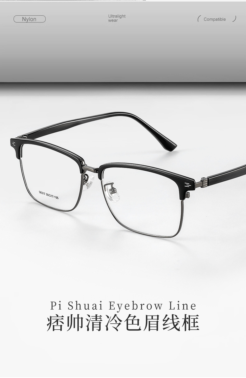 눈썹 프레임 하프 프레임 빅 페이스 비즈니스 TR90 안경 남성 복고풍 근시 안경 98317 단양 안경