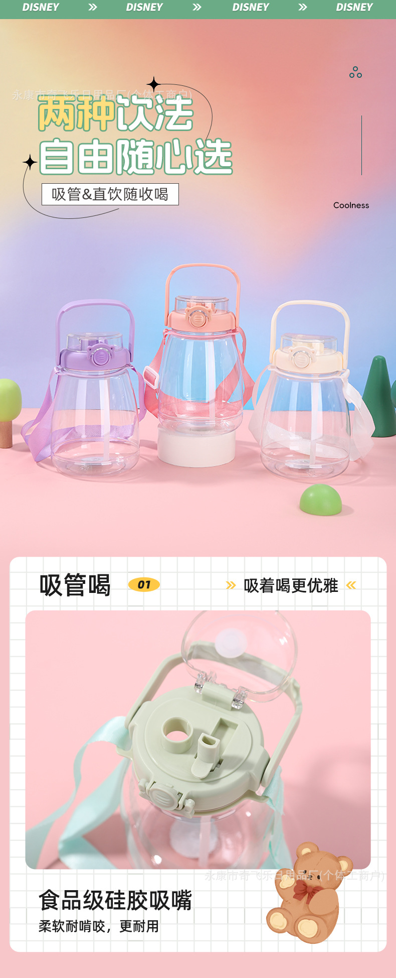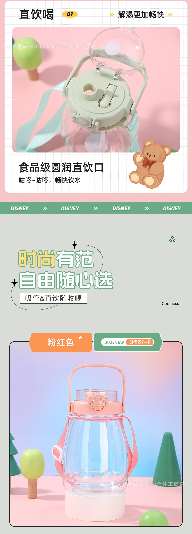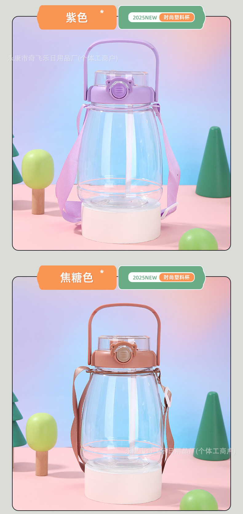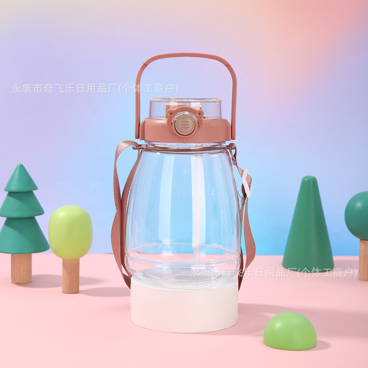여름 대용량 플라스틱 컵, 바운스 커버, 야외 휴대용 이중 음료 학생 물컵, 인터넷 연예인 밀짚 로프 대형 배 컵