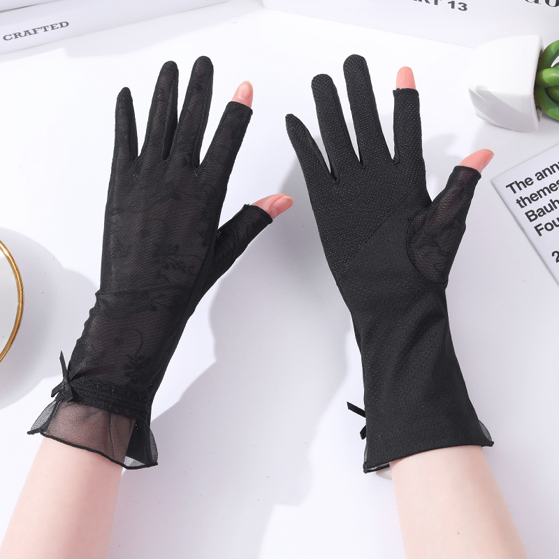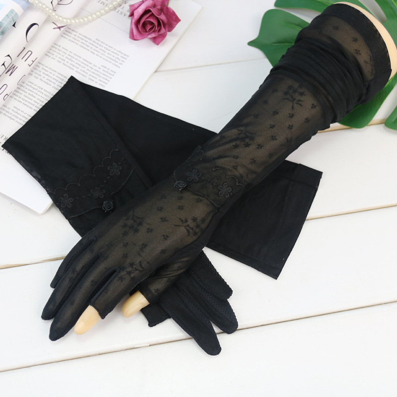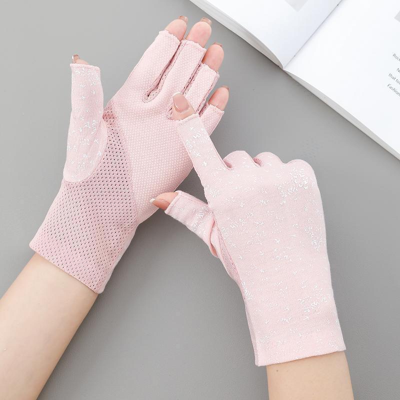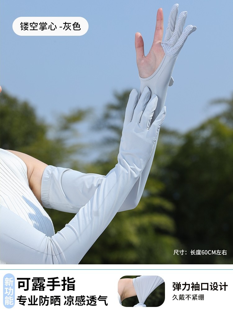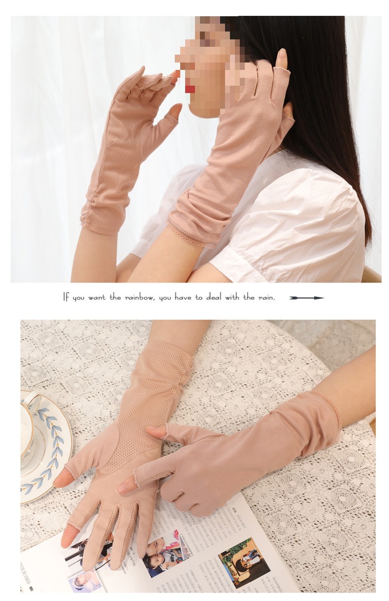 여성용 자외선 차단 장갑, 자외선 차단, 운전 및 사이클링, 차 따기 슬리브, 여성용 얇은 미끄럼 방지 면 통기성 얼음 실크 슬리브