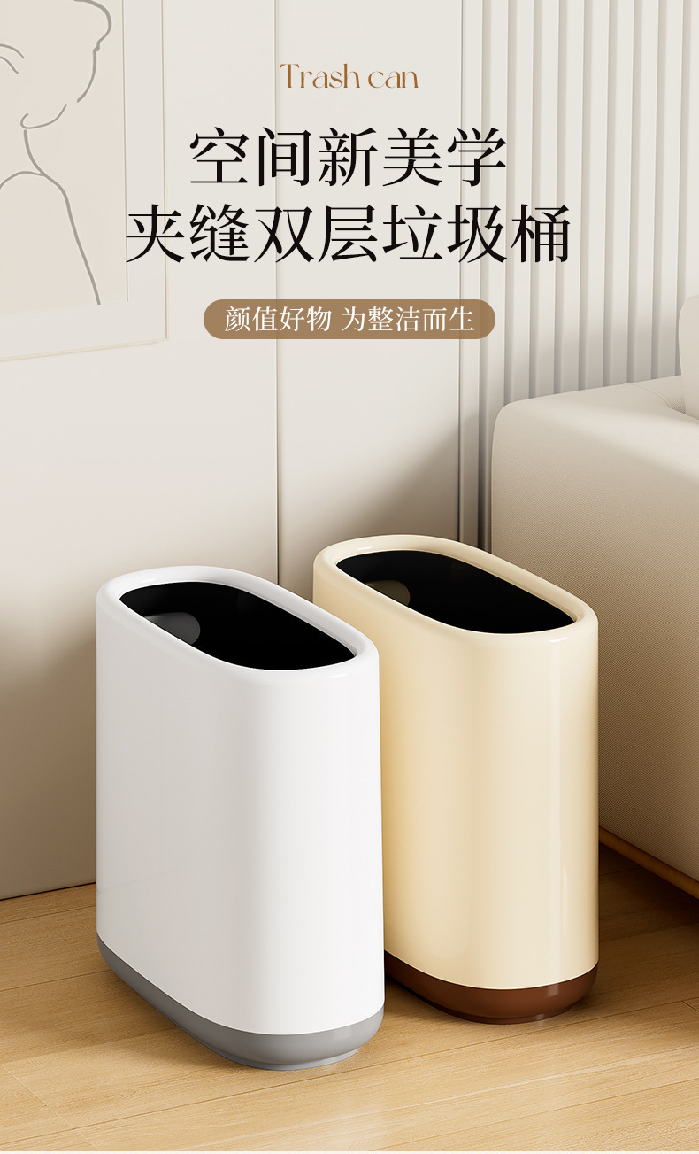 가구 프레스 휴지통 거실 주방 슬릿 핸드 프레스 휴지통 화장실 뚜껑이 달린 좁은 쓰레기통