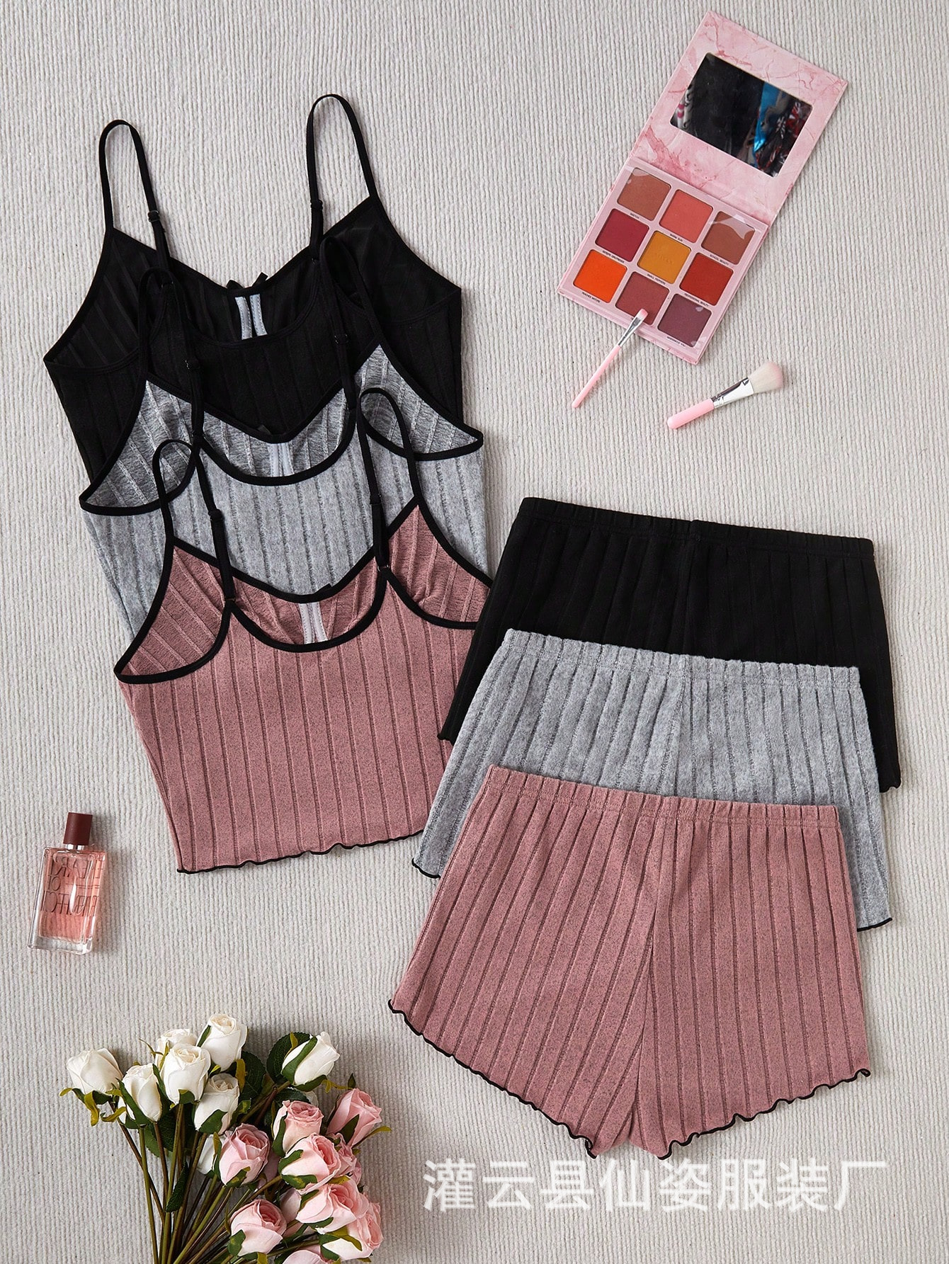 국경을 넘나드는 유럽과 미국 스타일의 신축성 있는 대형 잠옷, 여성스러운 폴리에스터 면 슬립팬츠, 기모 핏 스트립 홈웨어