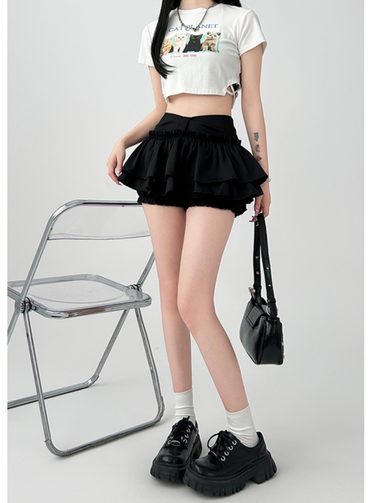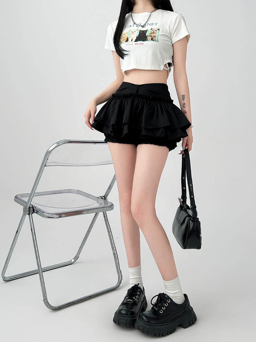 여름 여성 신작 BM 핫 소녀 순수한 욕망 섹시하고 달콤한 발레 스타일 프릴 케이크 스커트 하프 길이 퍼프 스커트