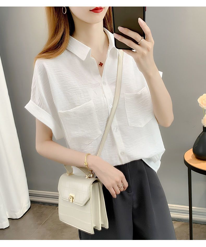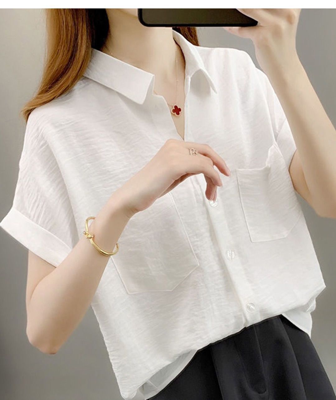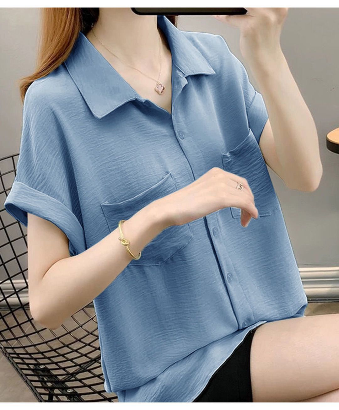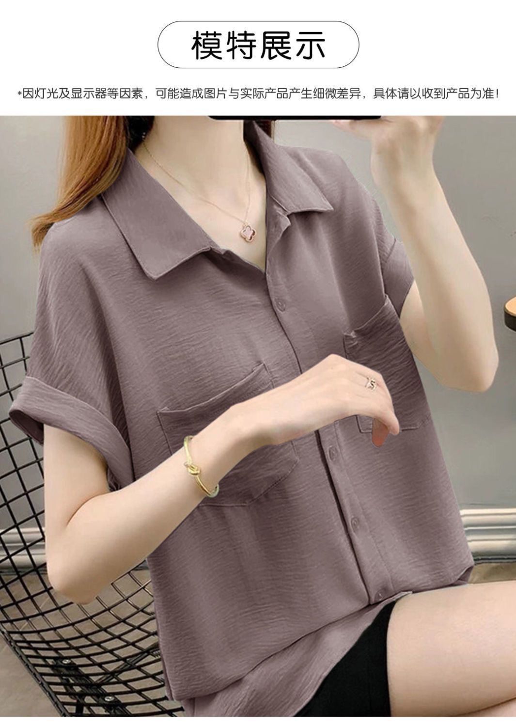 새로운 도착 유행 느슨한 배꼽 커버 스타일 최고급 쉬폰 셔츠 여성의 2025 여름 얇은 반팔 셔츠스토어 가기
