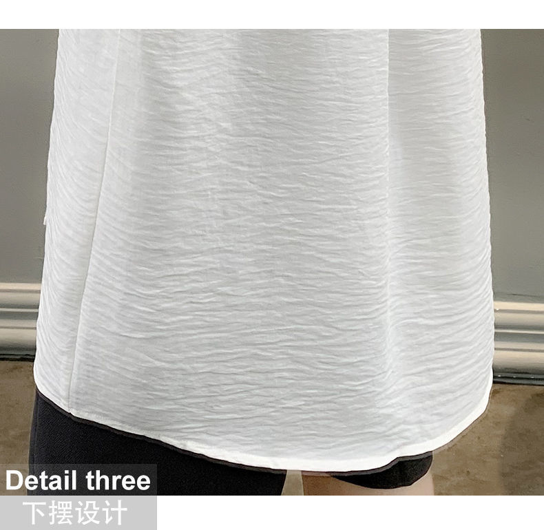 새로운 도착 유행 느슨한 배꼽 커버 스타일 최고급 쉬폰 셔츠 여성의 2025 여름 얇은 반팔 셔츠