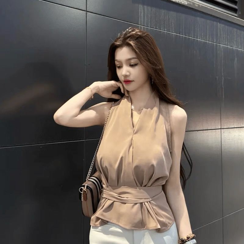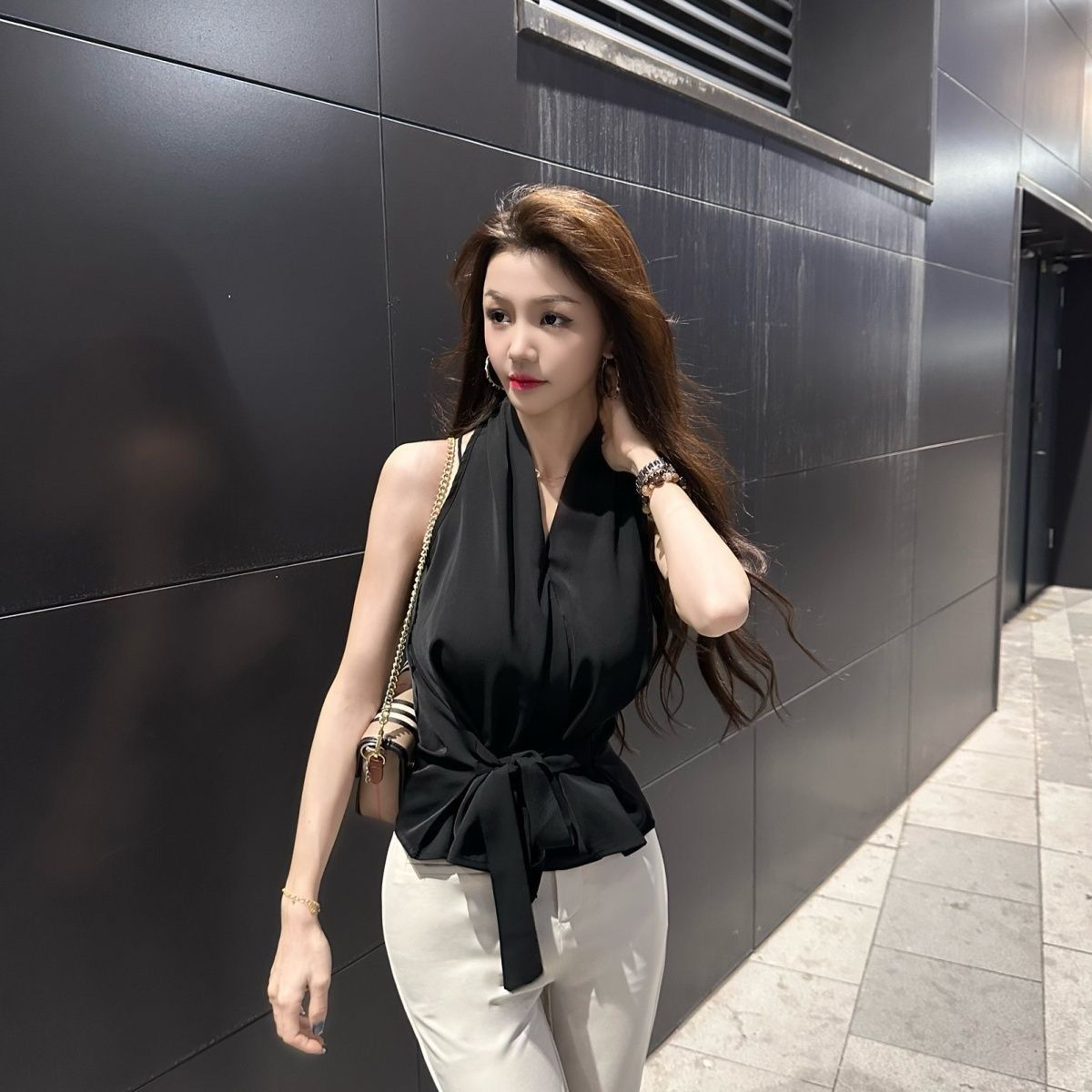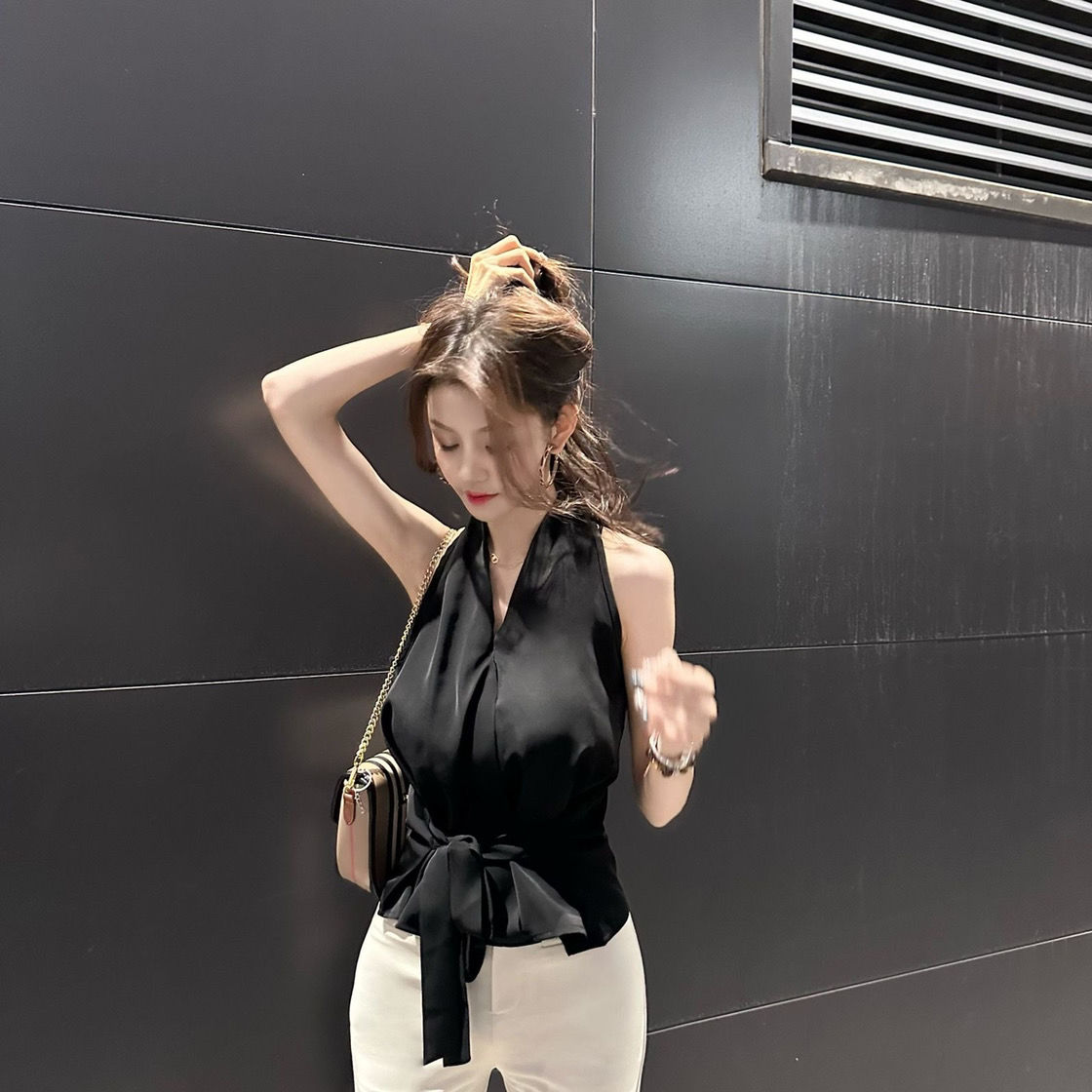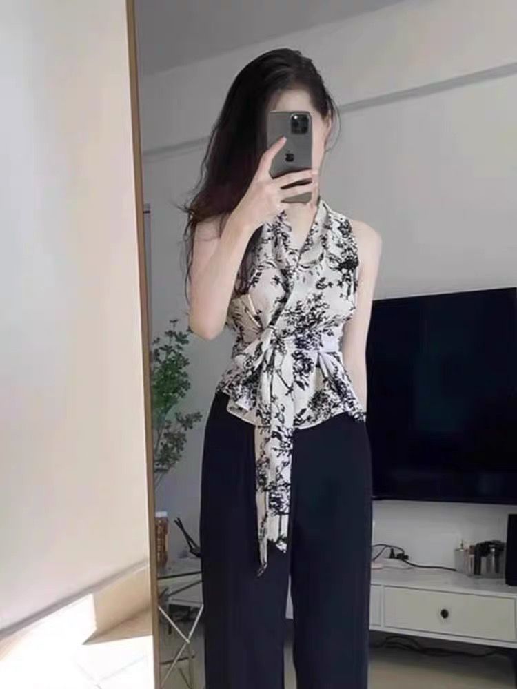 프랑스 복고풍 꽃 민소매 목 셔츠 여자 2025 여름 원피스 아름다운 우아한 조끼 작은 셔츠 고급 탑스토어 가기