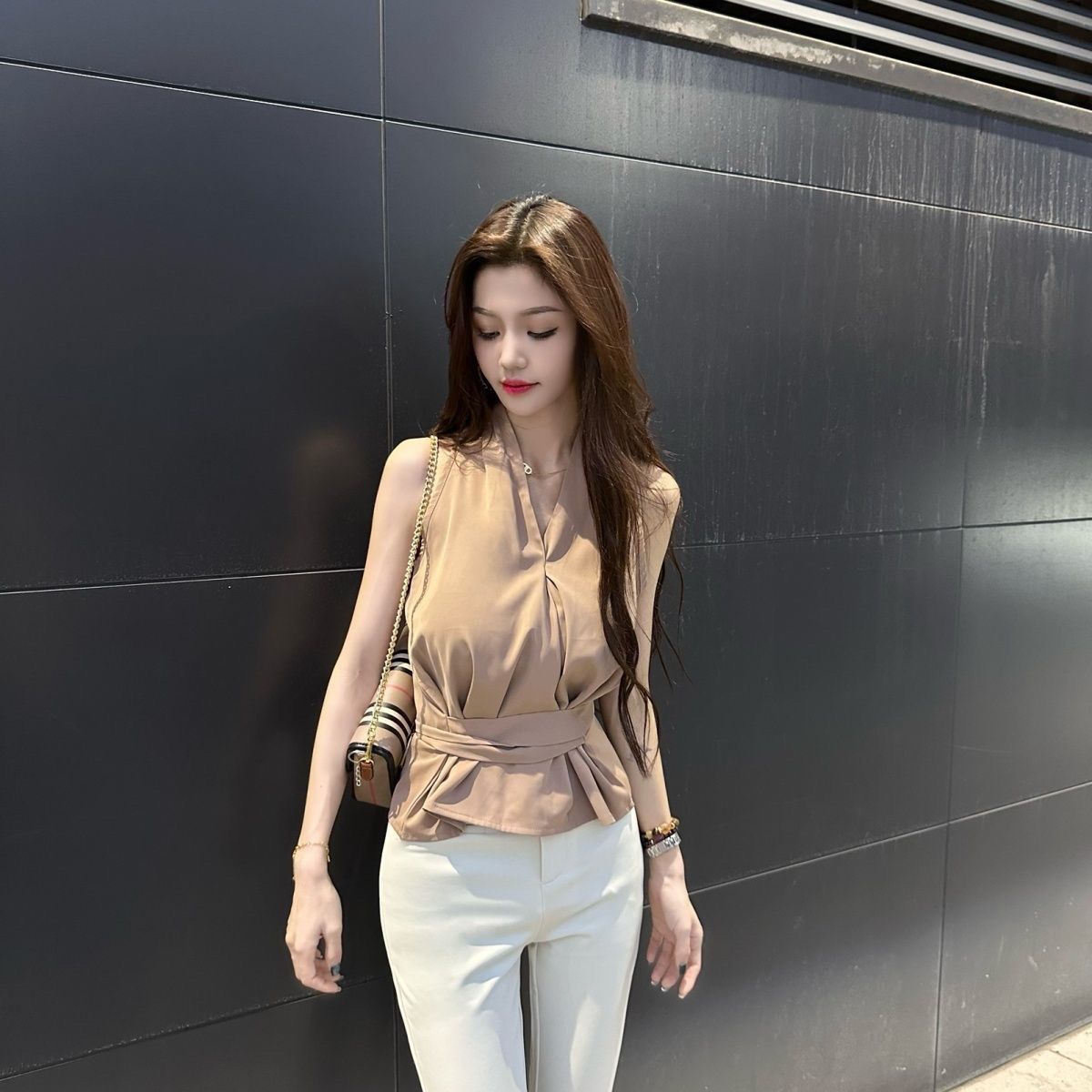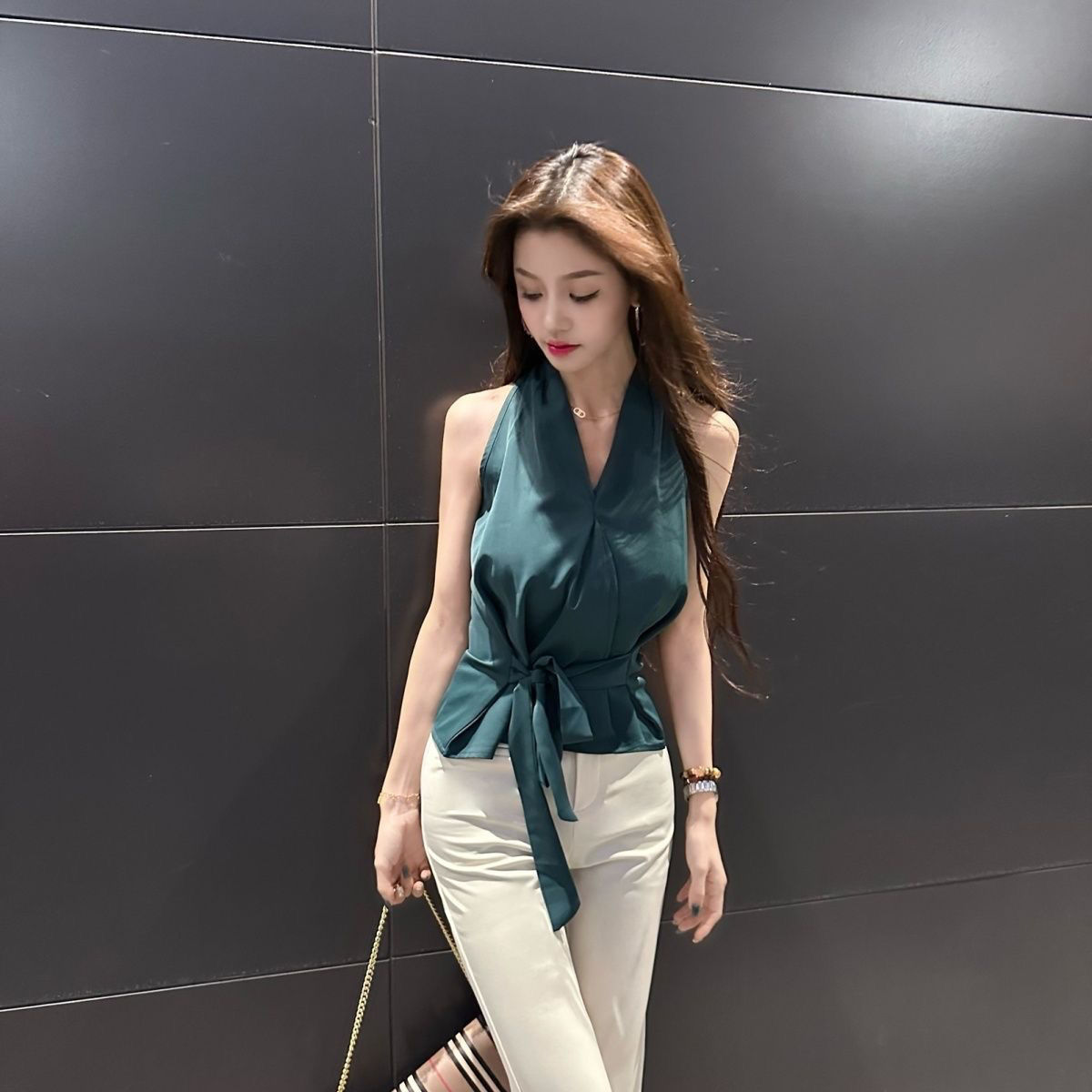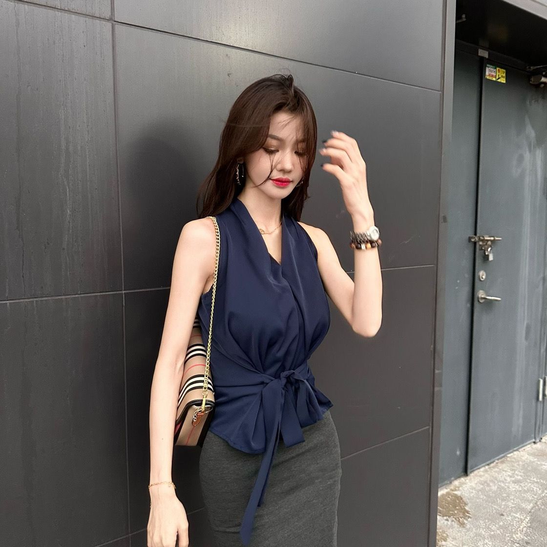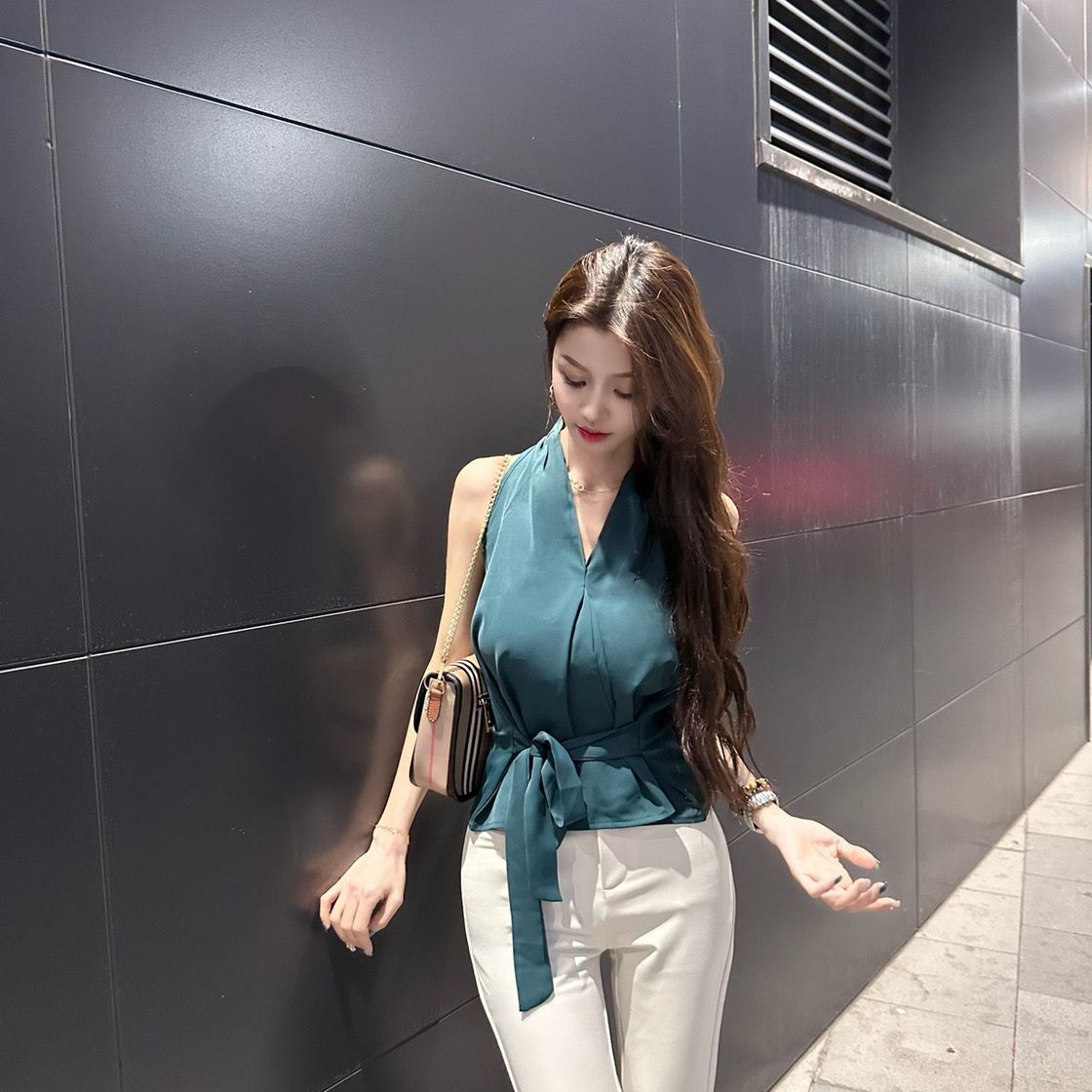프랑스 복고풍 꽃 민소매 목 셔츠 여자 2025 여름 원피스 아름다운 우아한 조끼 작은 셔츠 고급 탑스토어 가기
