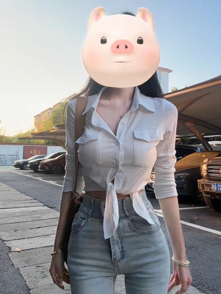 화이트 폴로 칼라 스트랩 긴팔 셔츠 여성용 봄 2025 새로운 순수 우아한 슬림 핏 슬림 핏 쇼트 탑스토어 가기