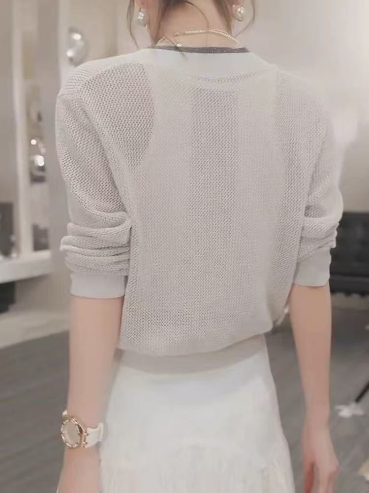 간단한 재킷 지퍼 디자인 센스 탑 니트 카디건 할로우 2025 봄 긴 소매 게으른 스타일 캐주얼 세련된스토어 가기