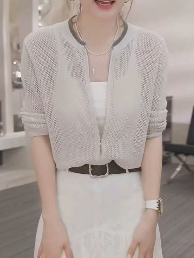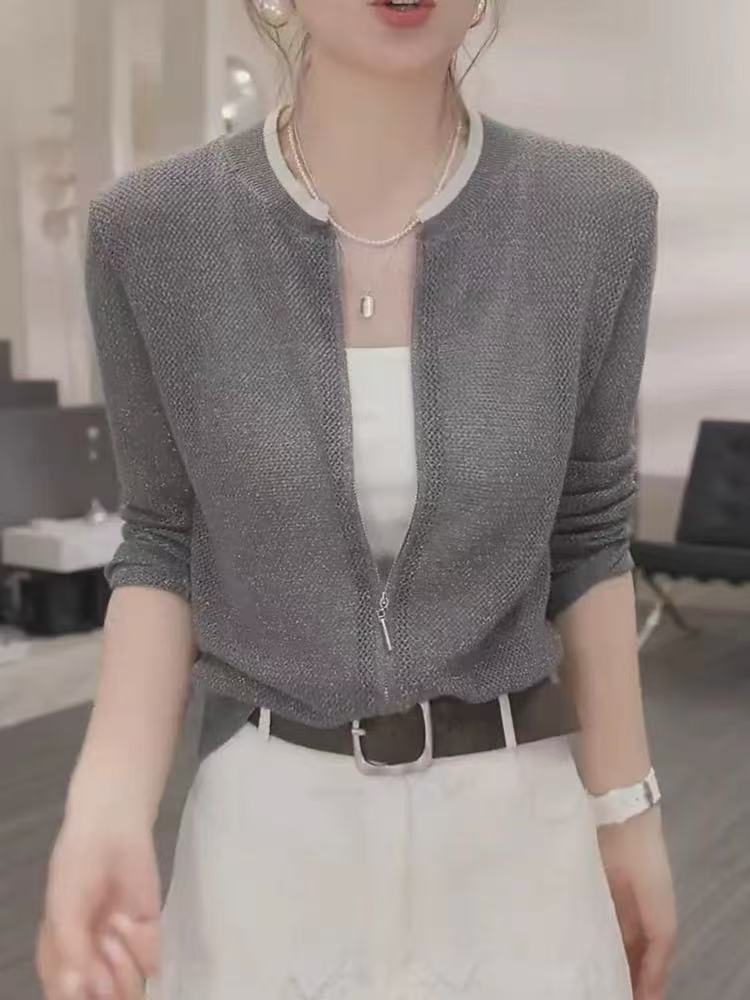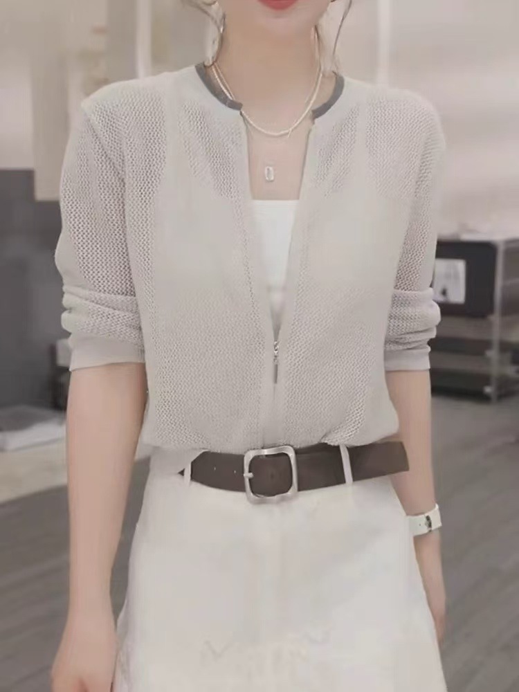 简约外套拉链设计感上衣针织开衫镂空2025春季长袖慵懒风休闲别致
