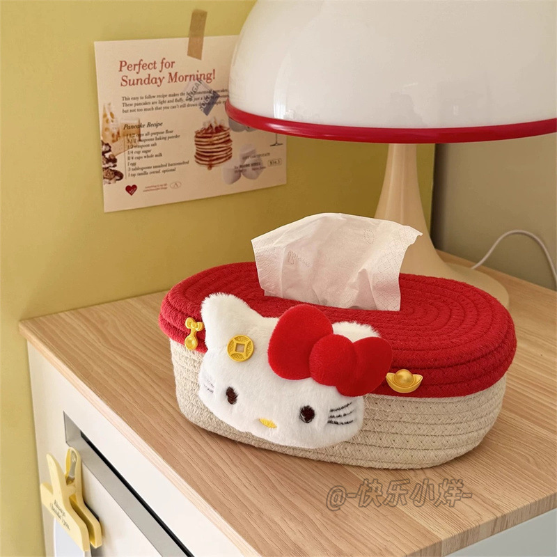∝헬로 키티 면 티슈 박스 홈 거실 냅킨 티슈 박스 만화 새로운 자동차 티슈 보관함