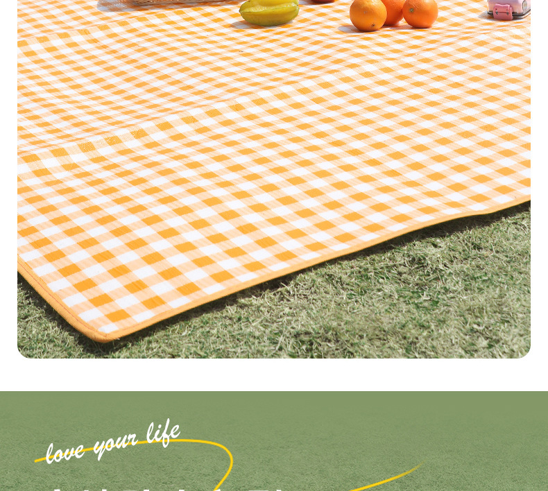 야외 피크닉 매트, 인터넷 연예인 노란색 격자 무늬 두꺼운 방습 매트, 효과적인 야외 접이식 캠핑 매트, 텐트 매트, 봄 나들이 매트