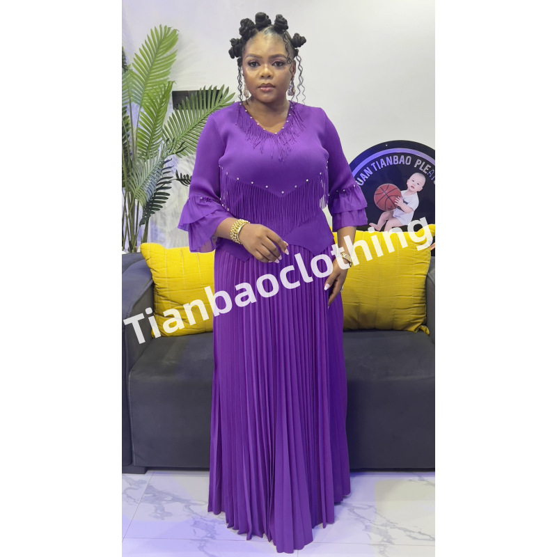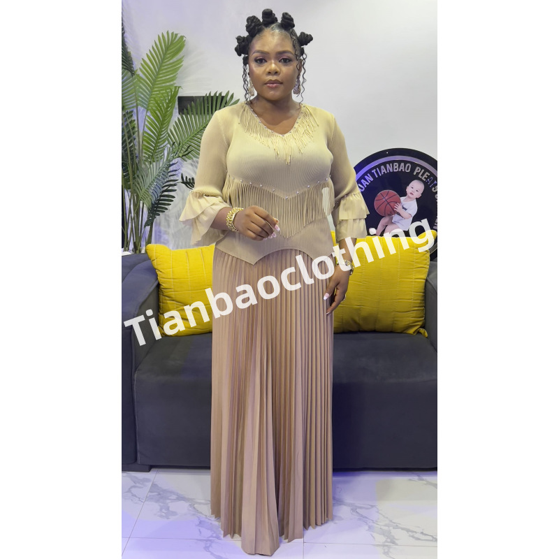 Tianbao miyake 국경 도매 새로운 단색 다이아몬드 술 기질 플러스 사이즈 여성 스커트 세트스토어 가기
