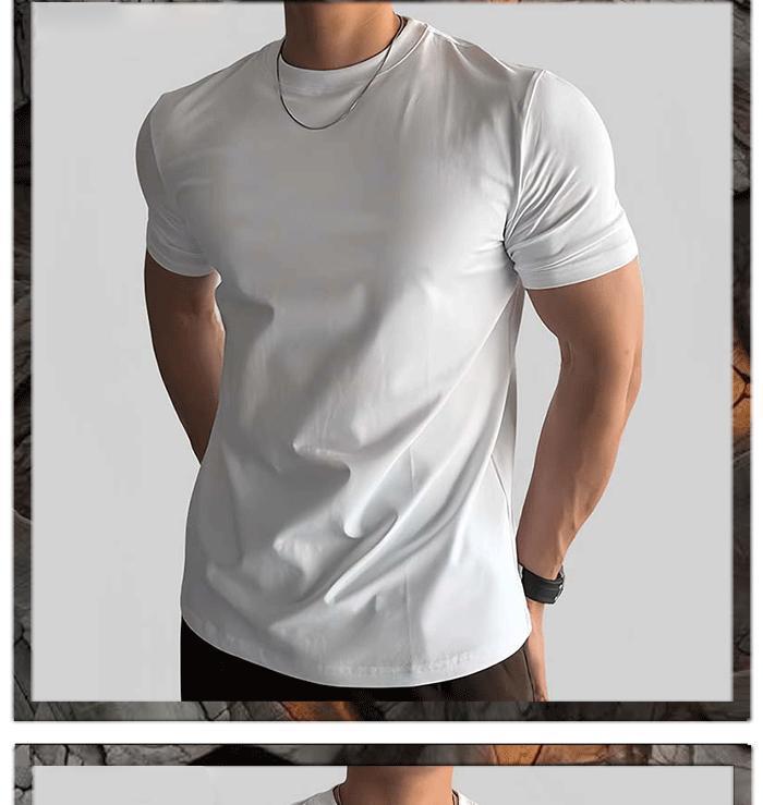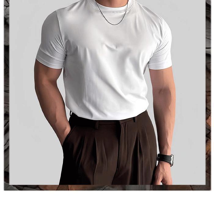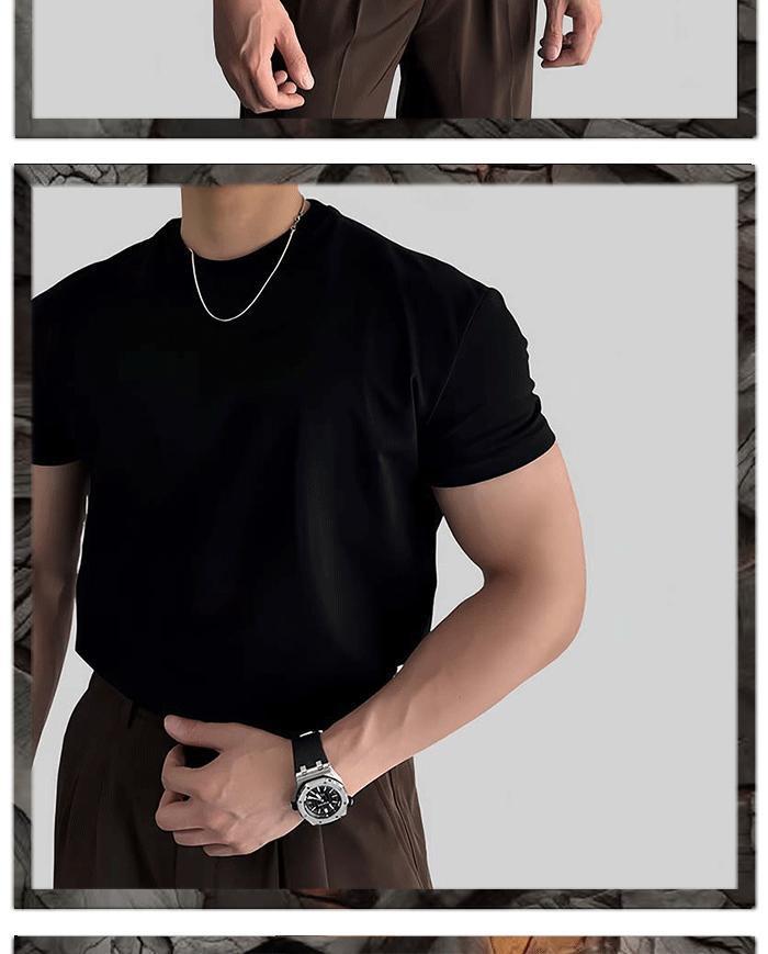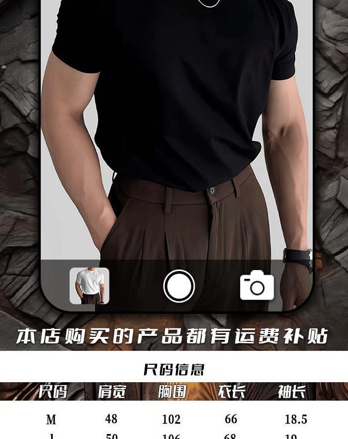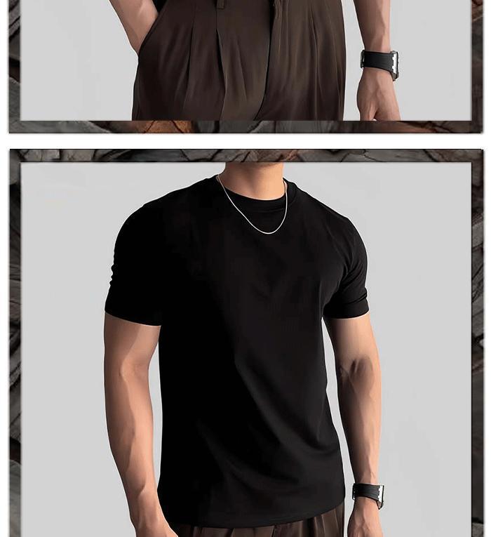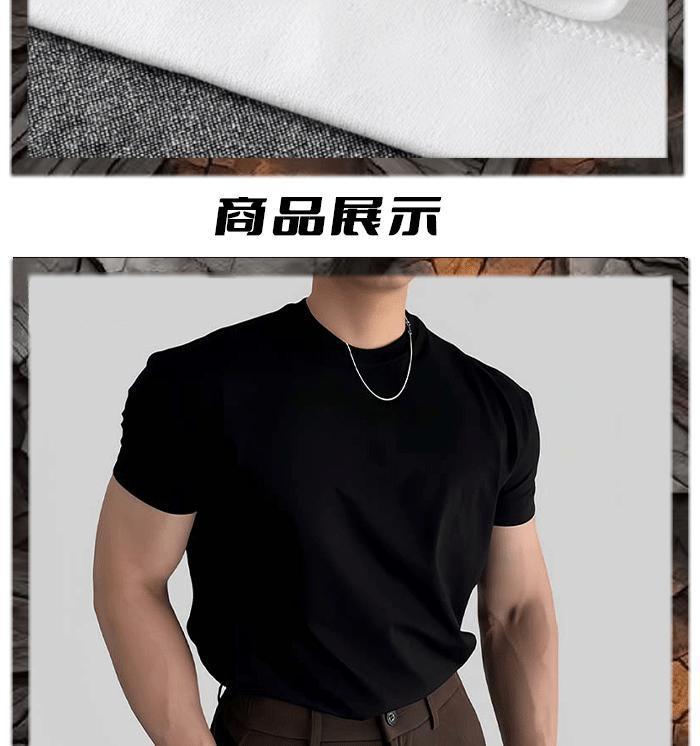 2025 새로운 한국식 솔로나 어깨 반팔 남자 최고 유행 라운드 넥 슬림 올 매치 솔리드 컬러 티셔츠스토어 가기