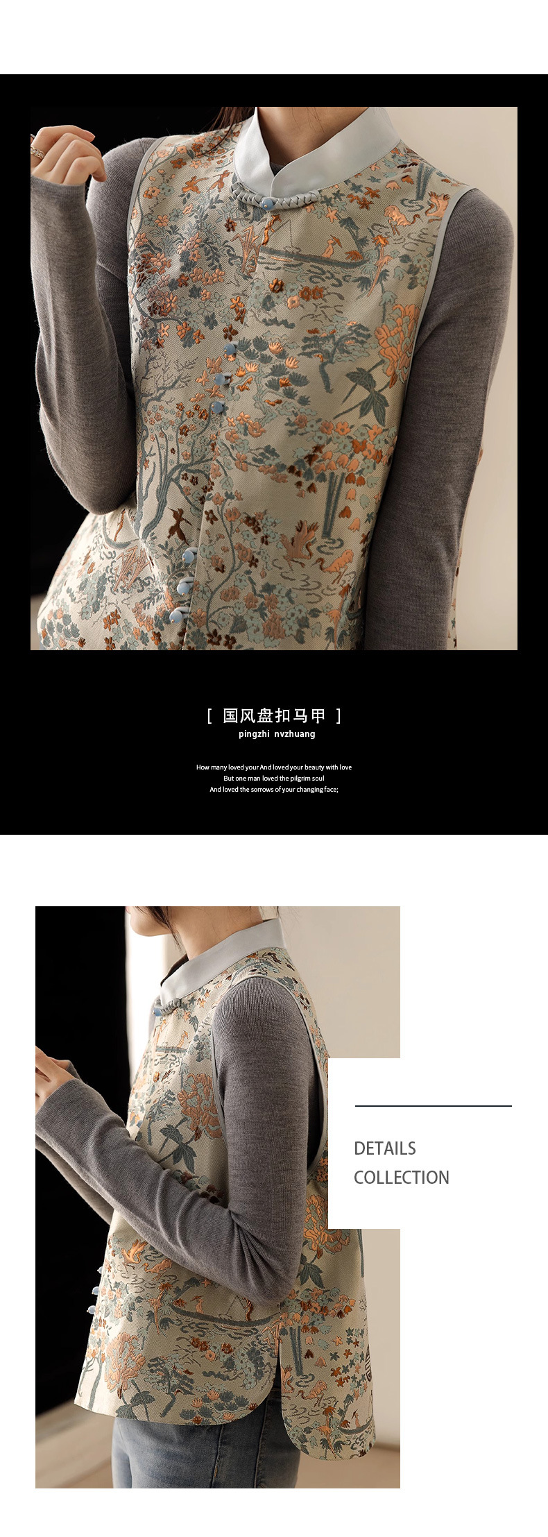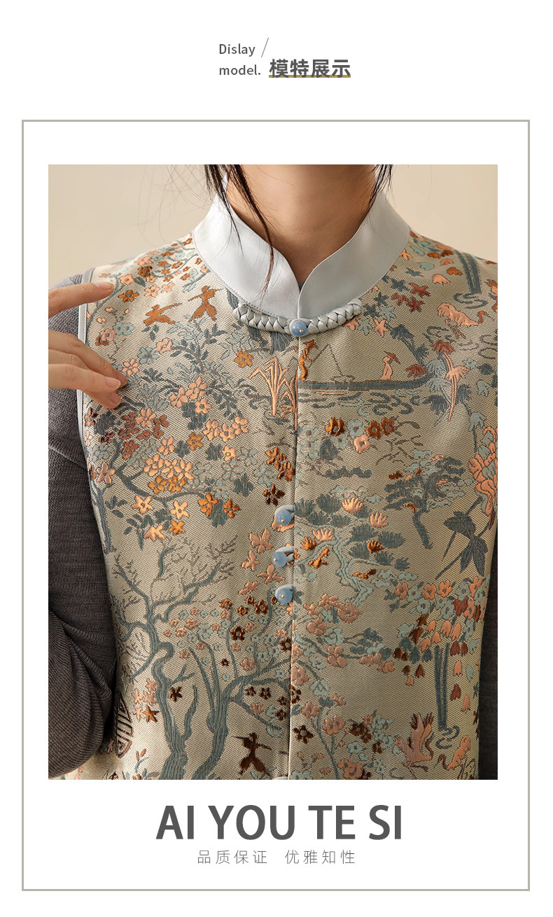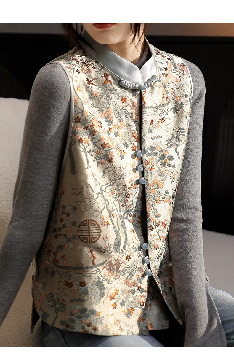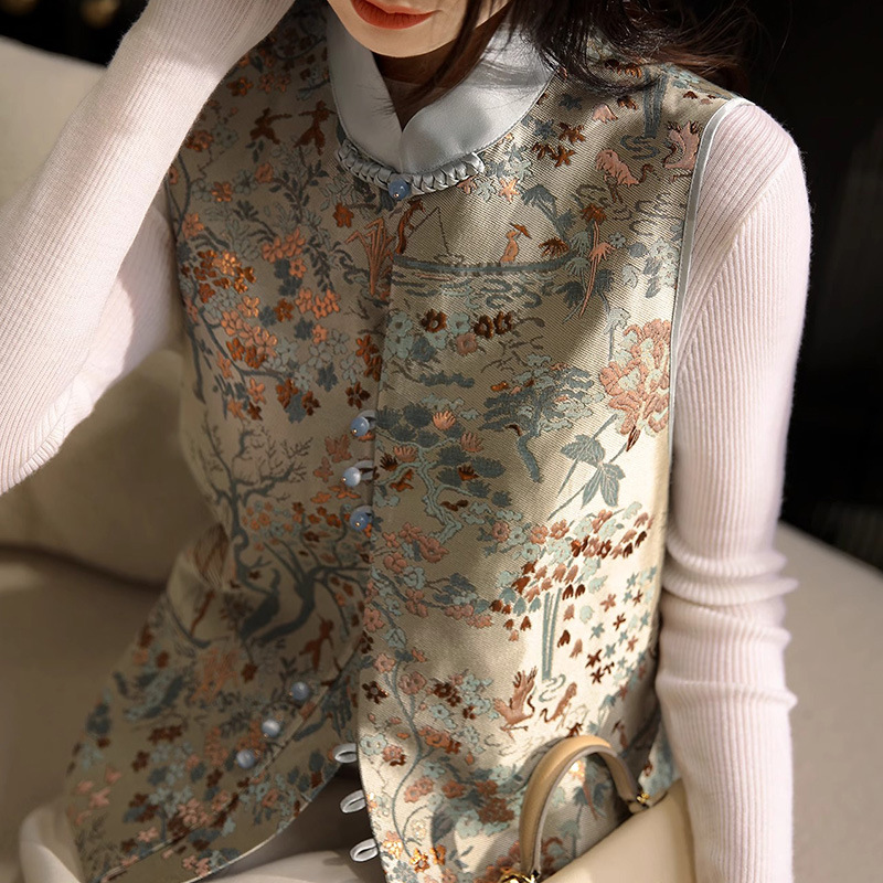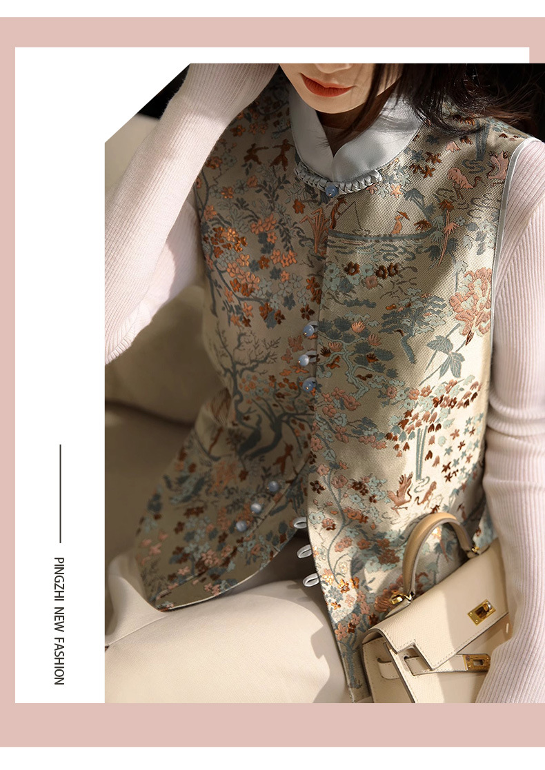 고급스러운 질감의 새로운 중국풍 자카드 단추 조끼, 하이엔드 중국풍 조끼, 2026 봄 고급 여성복 신상 상의