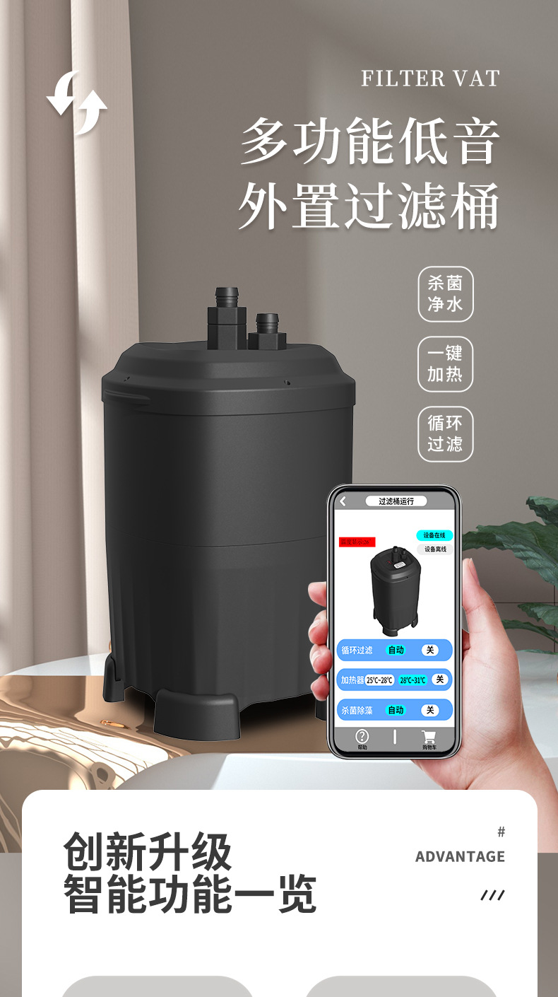 어항 필터 벽 장착 필터 배럴 외부 작은 안전 음소거 외부 정수 필터 순환 시스템스토어 가기
