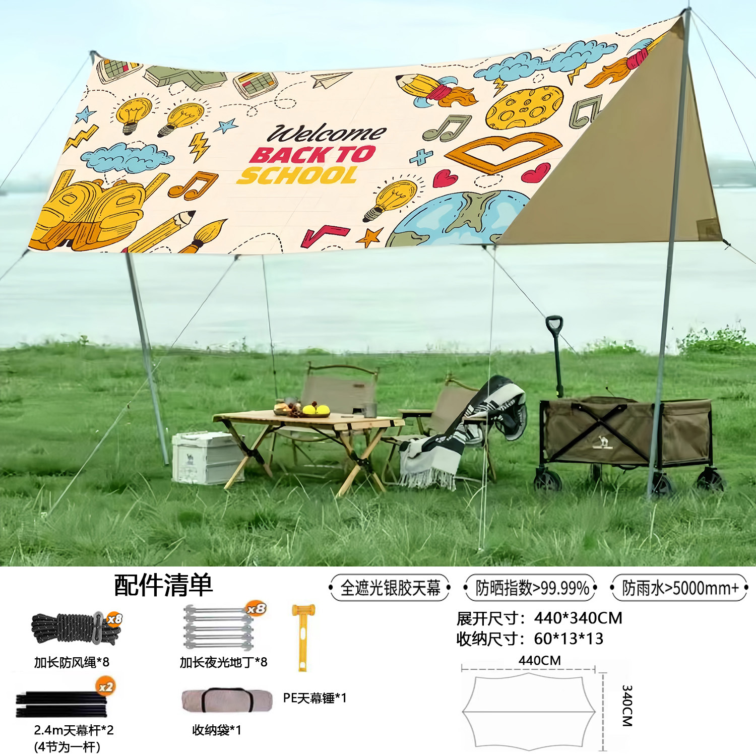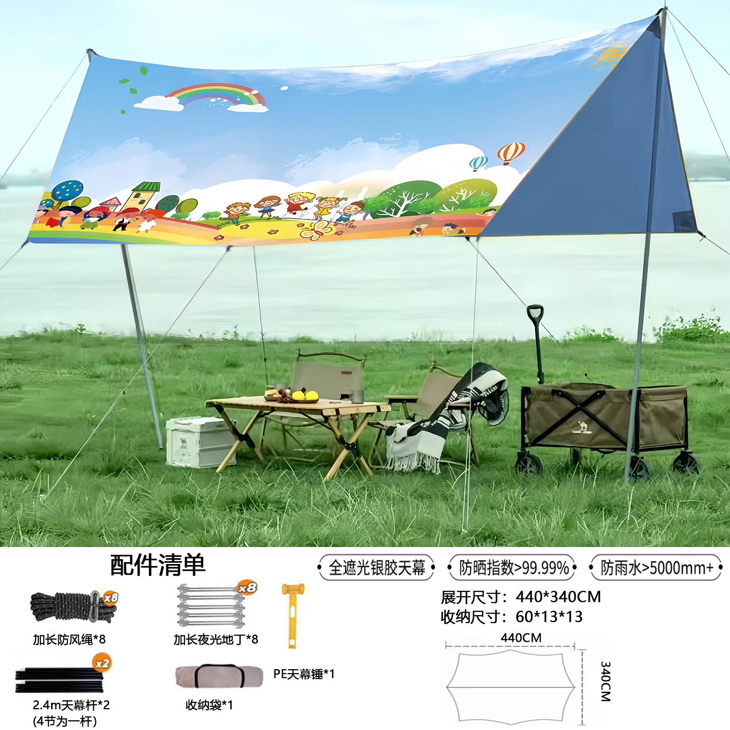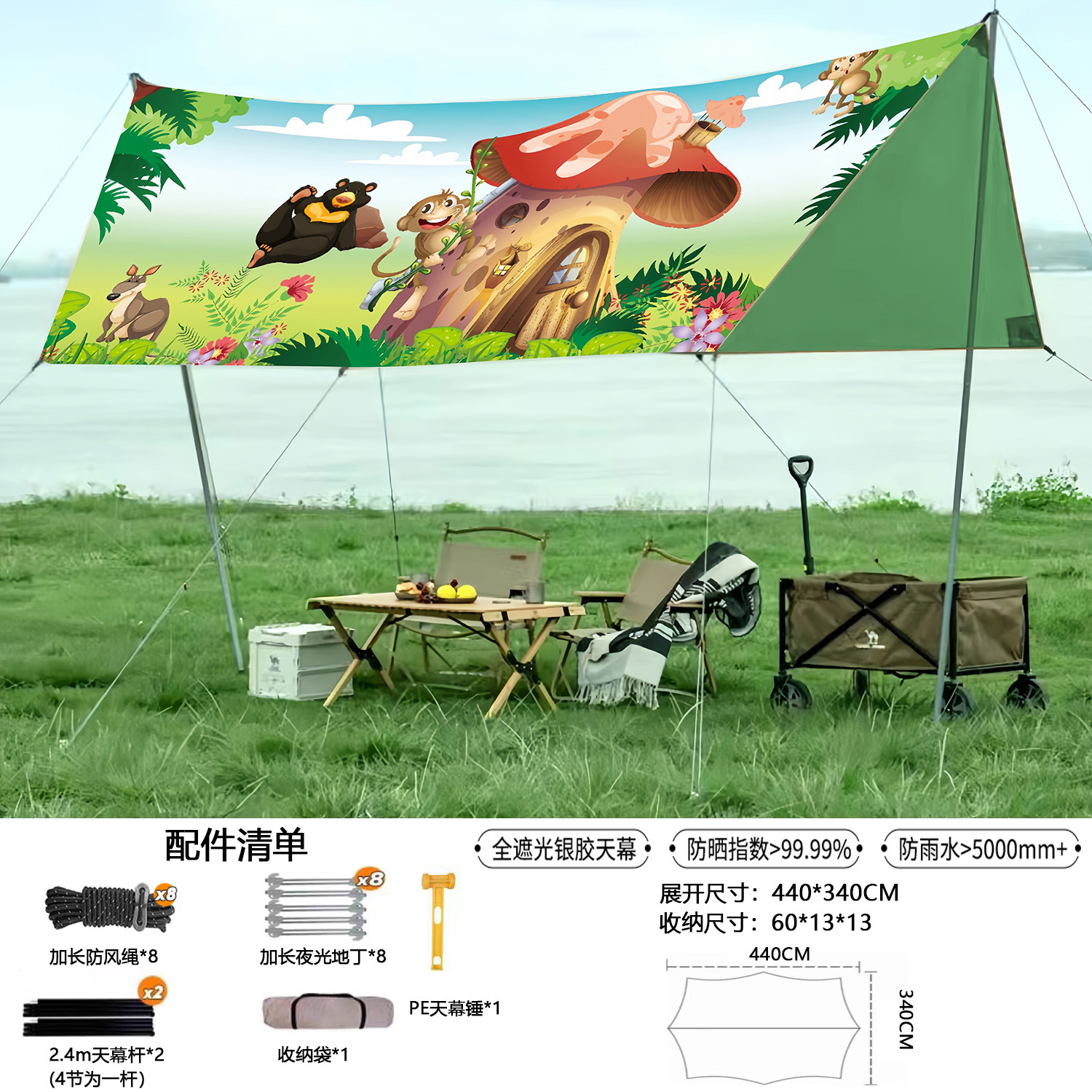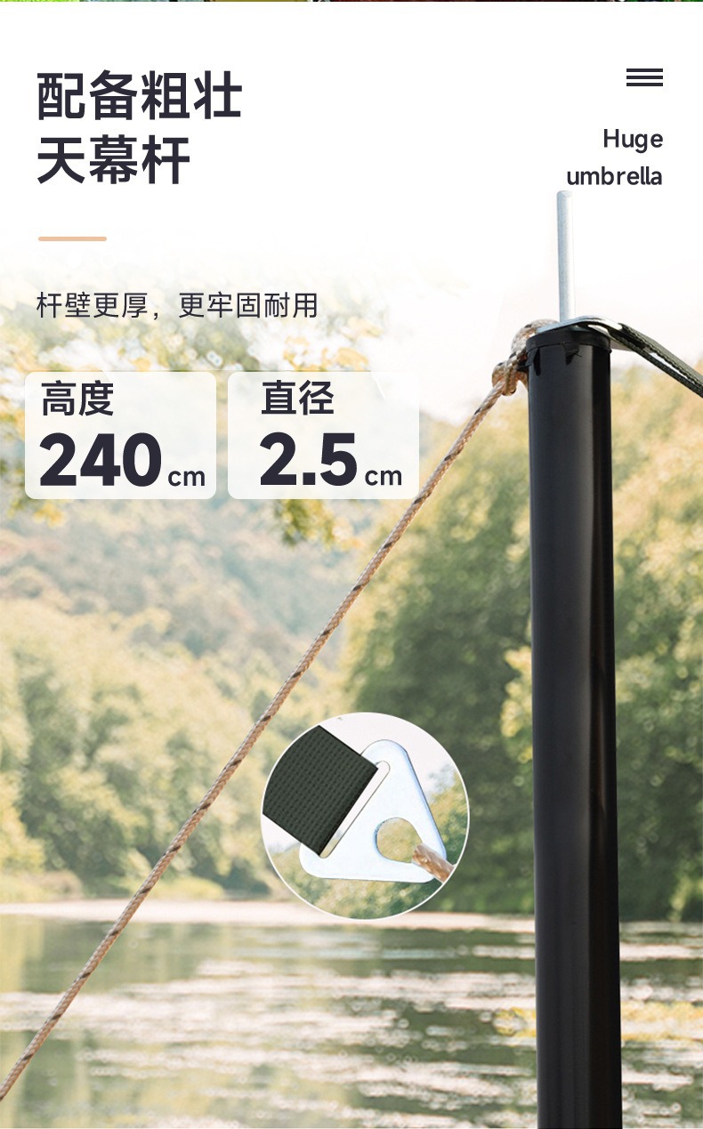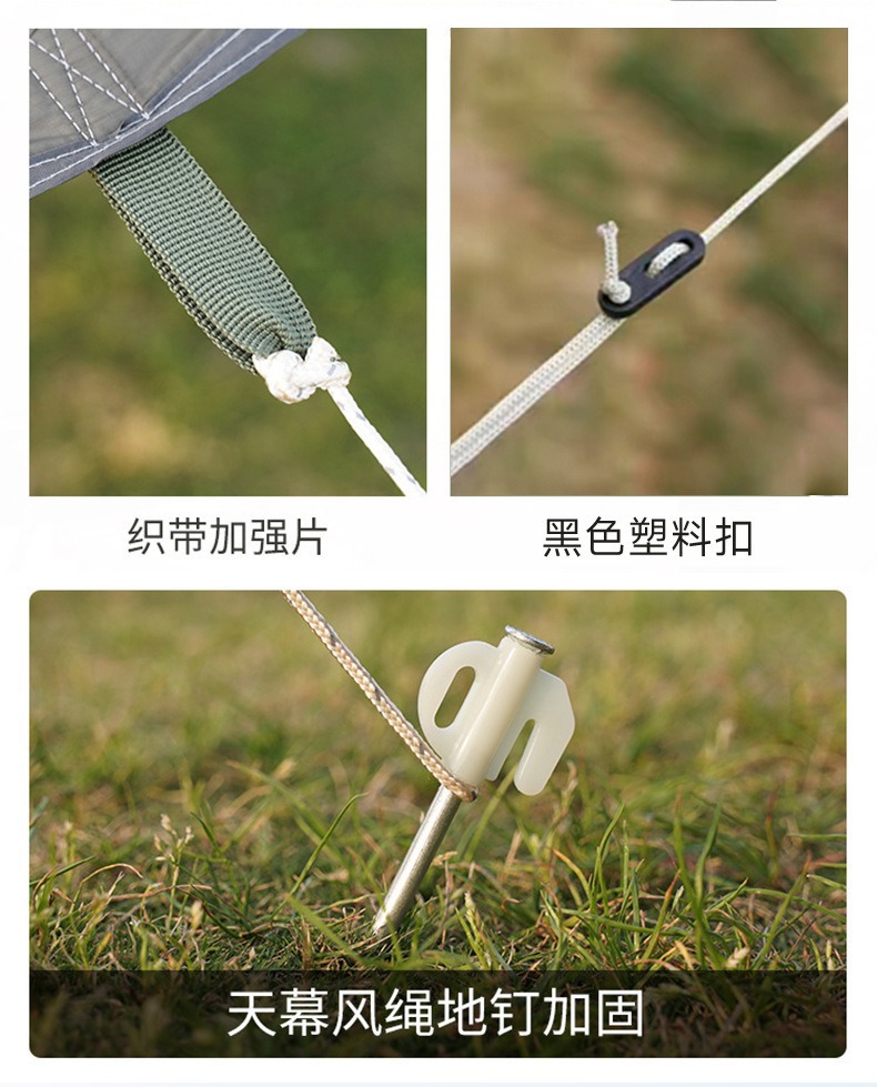 • 실버(아이보리 화이트)로 코팅된 기본 텐트 천 + 윈드 로프