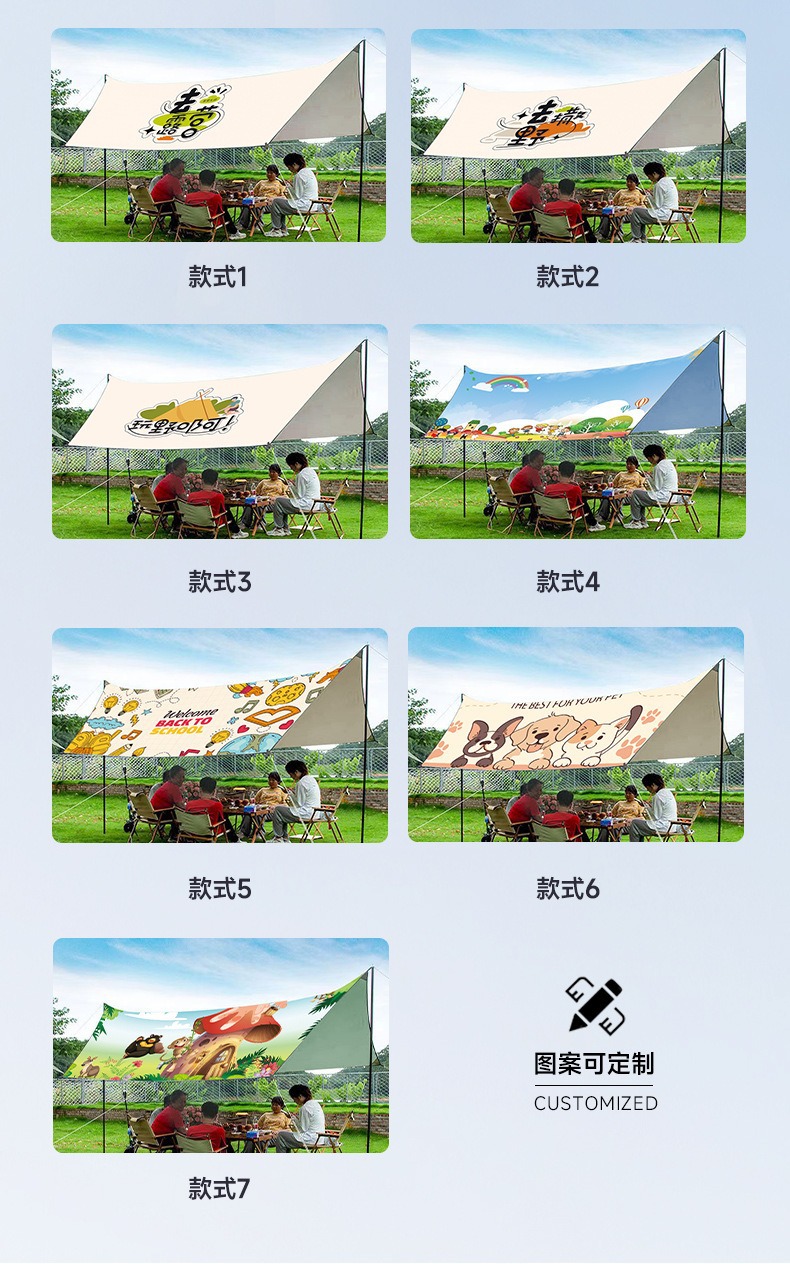 대형 비닐 인쇄 캐노피 텐트 야외 캠핑 UV 보호 휴대용 육각형 나비 캠핑 차양스토어 가기
