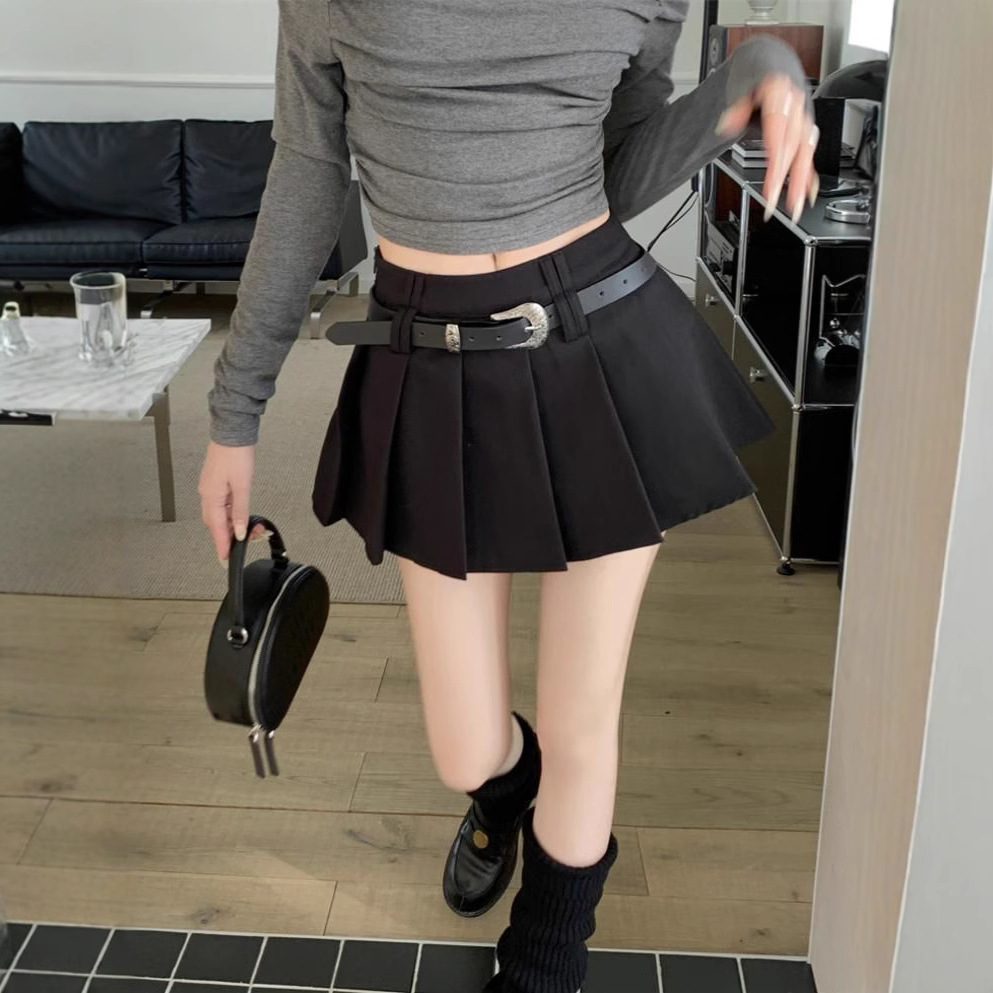 여성을위한 벨트 스타일 작은 미니 스커트 2025 여름 섹시한 뜨거운 소녀 다목적 a 라인 스커트 JK 플리츠 스커트스토어 가기