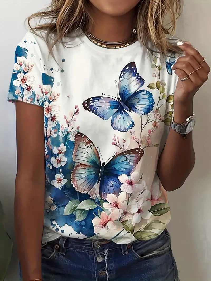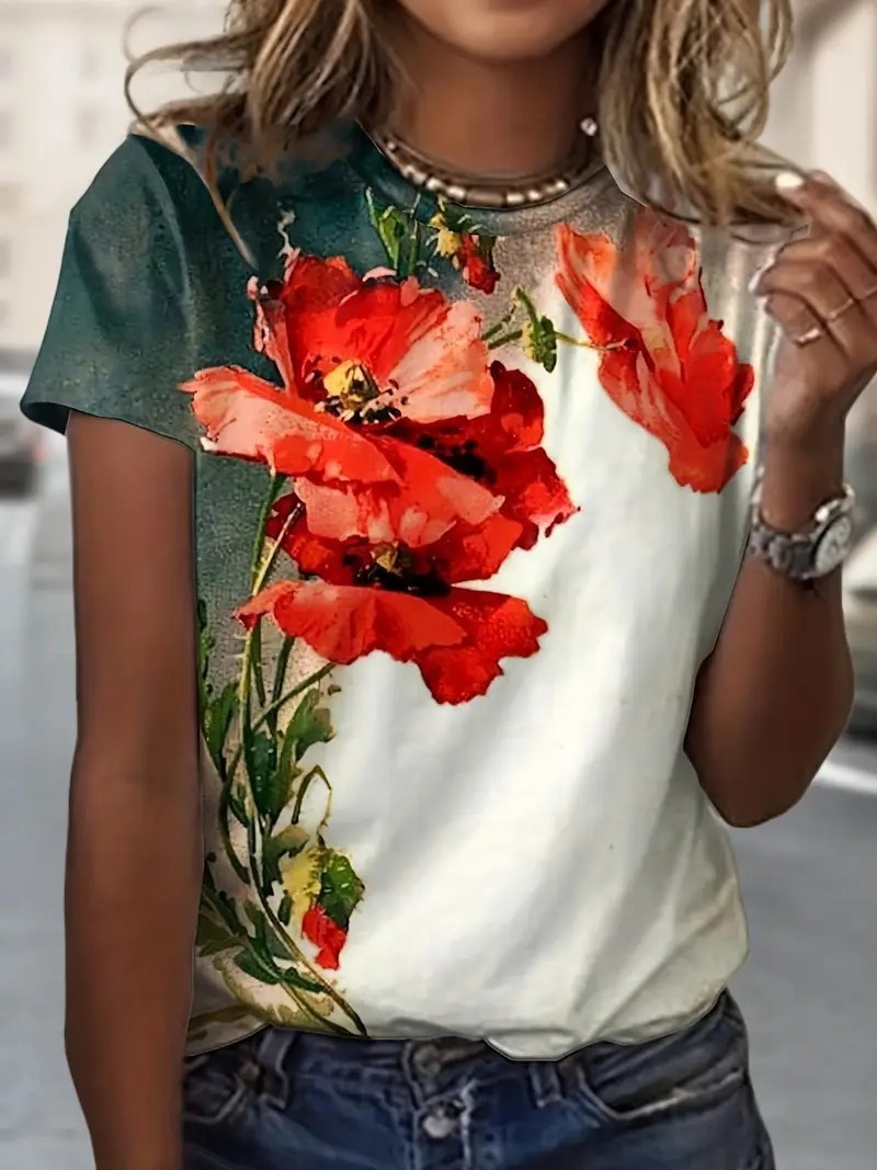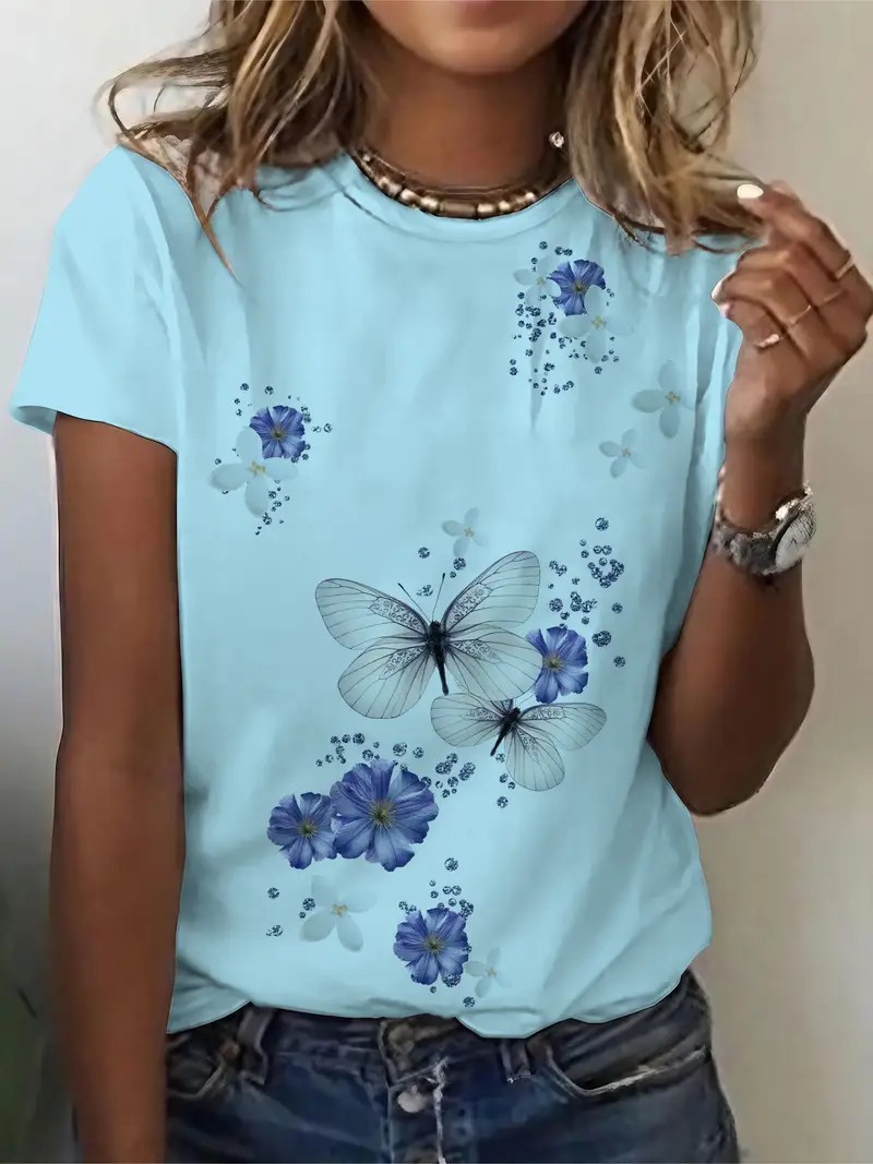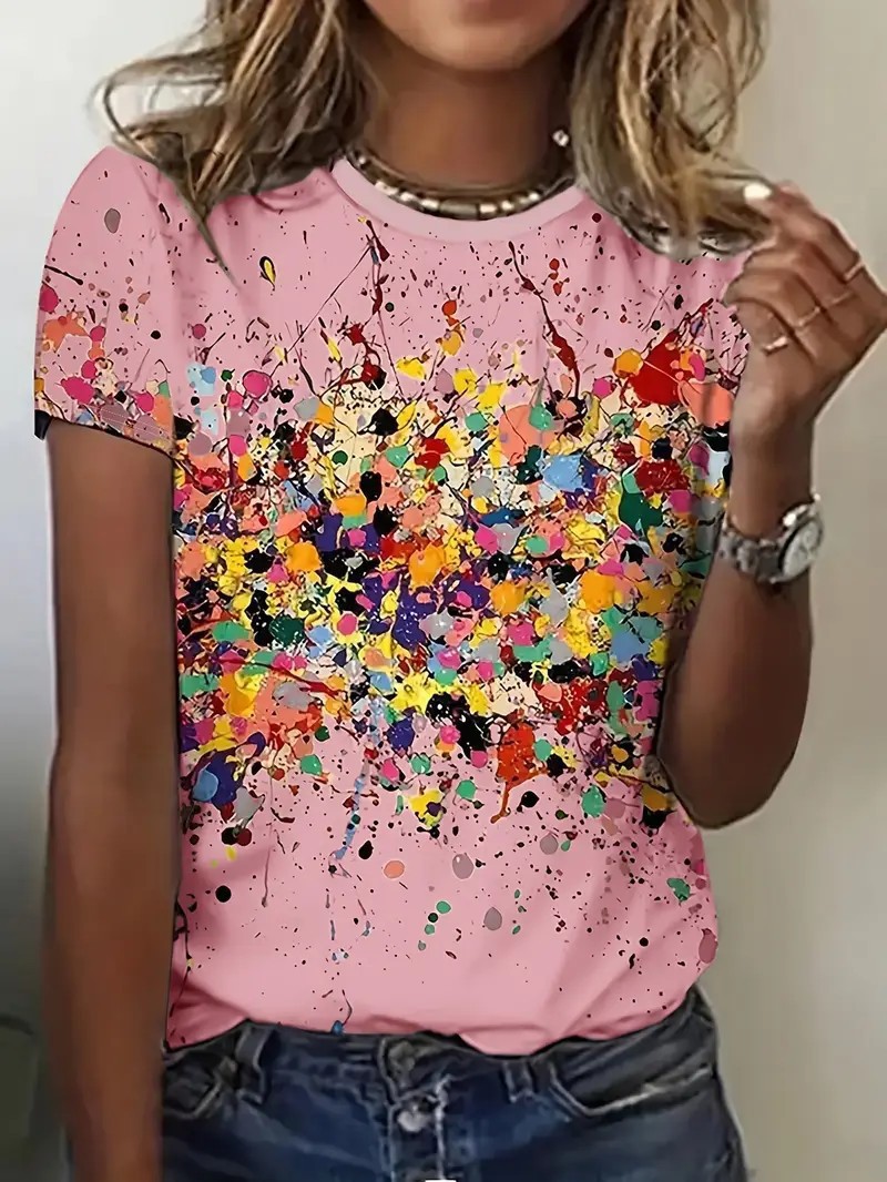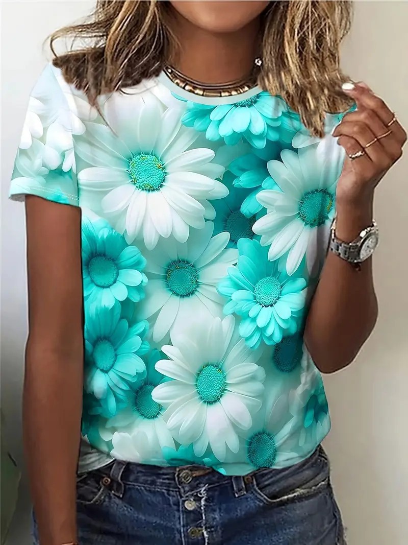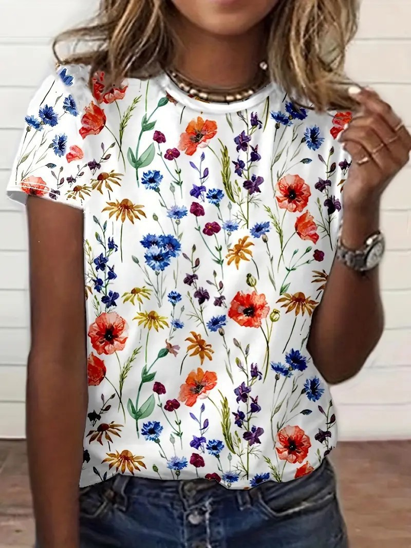 유럽과 미국의 대외 무역 아마존 2025 새로운 패션 캐주얼 다재다능한 패션 여성 반팔 티셔츠 ME13스토어 가기