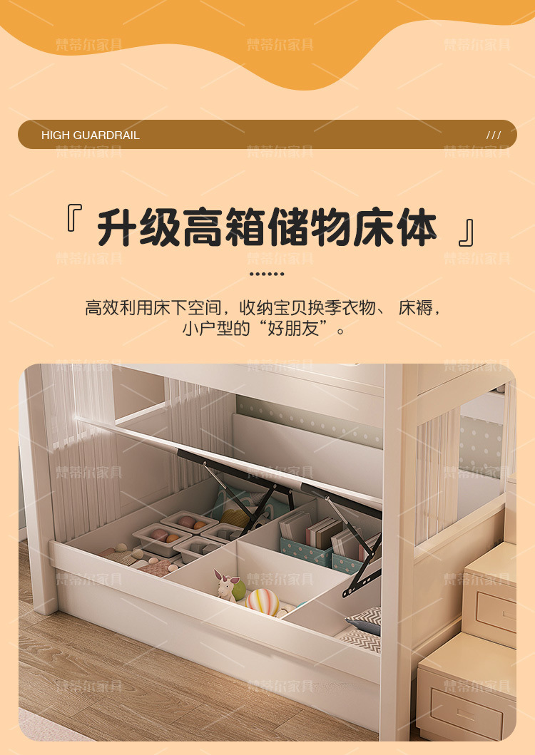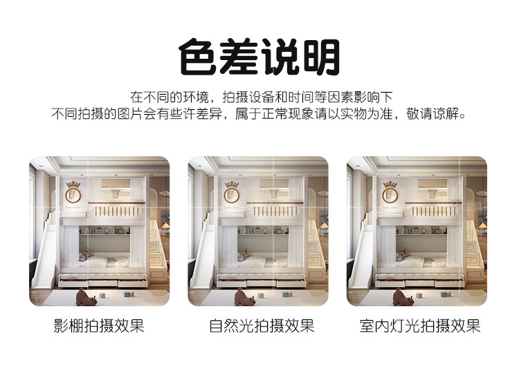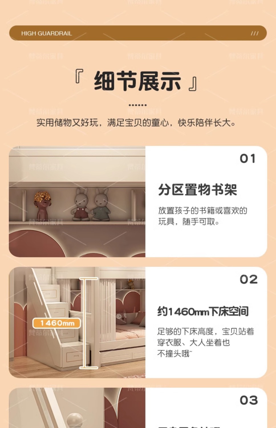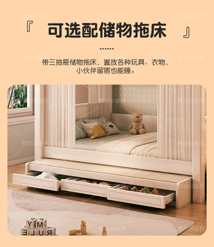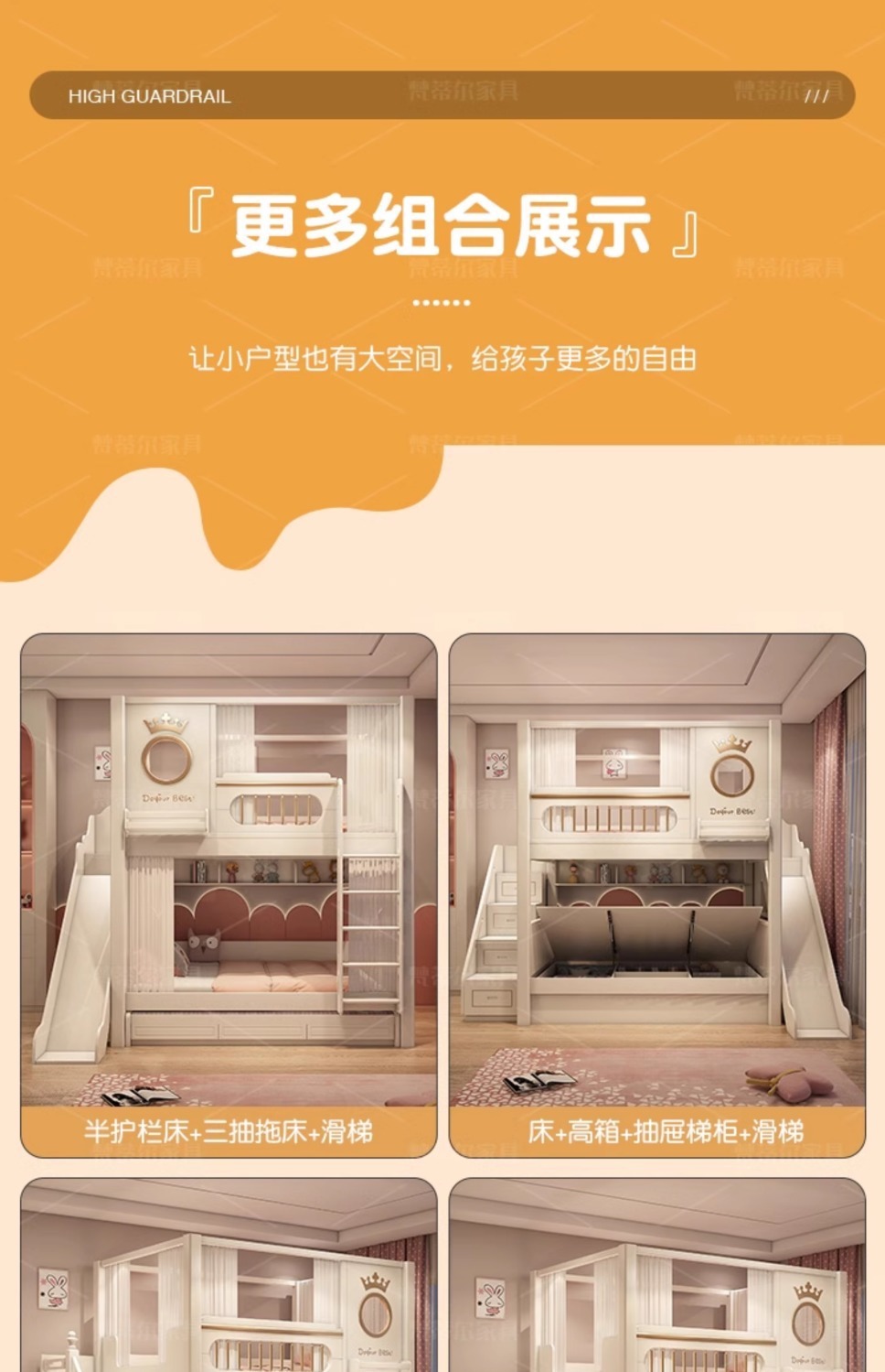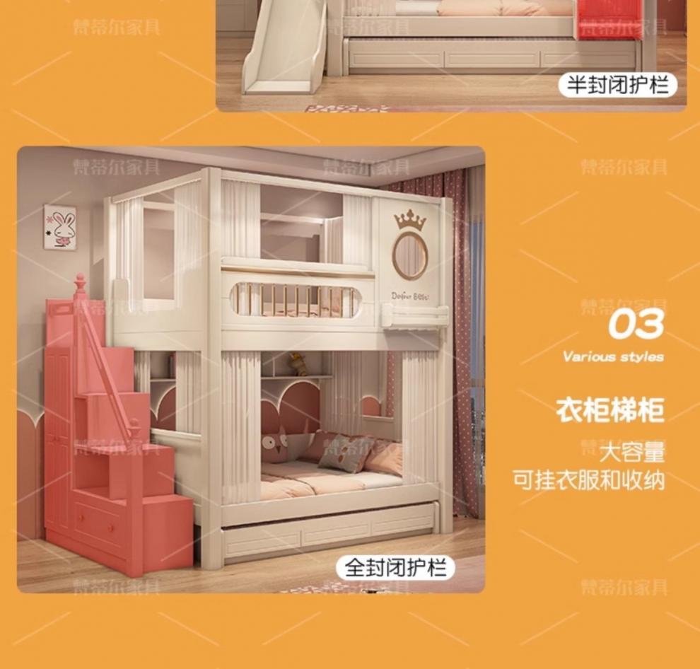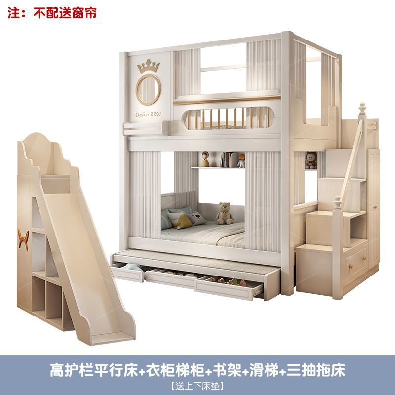 • 이층 침대 + 옷장 사다리 캐비닛 + 슬라이드 + 견인 침대 + 상단 커튼