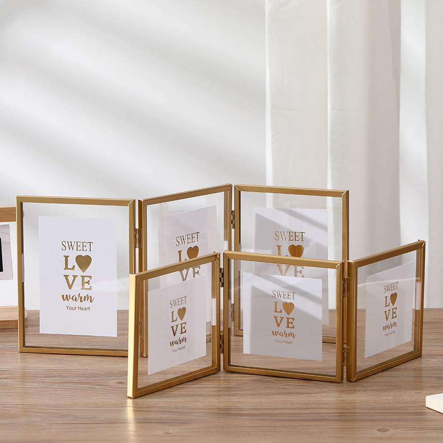 접이식 금속 삼중 사진 프레임 크리 에이 티브 골드 블랙 사진 장식 프레임 4인치 6inch 7inch 장식품