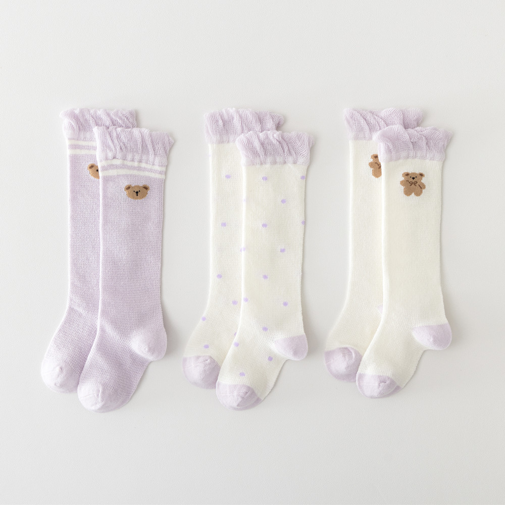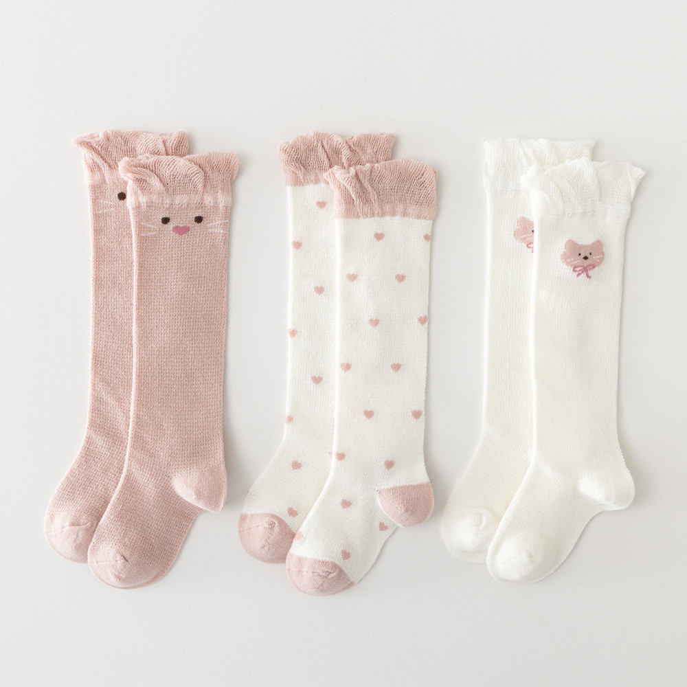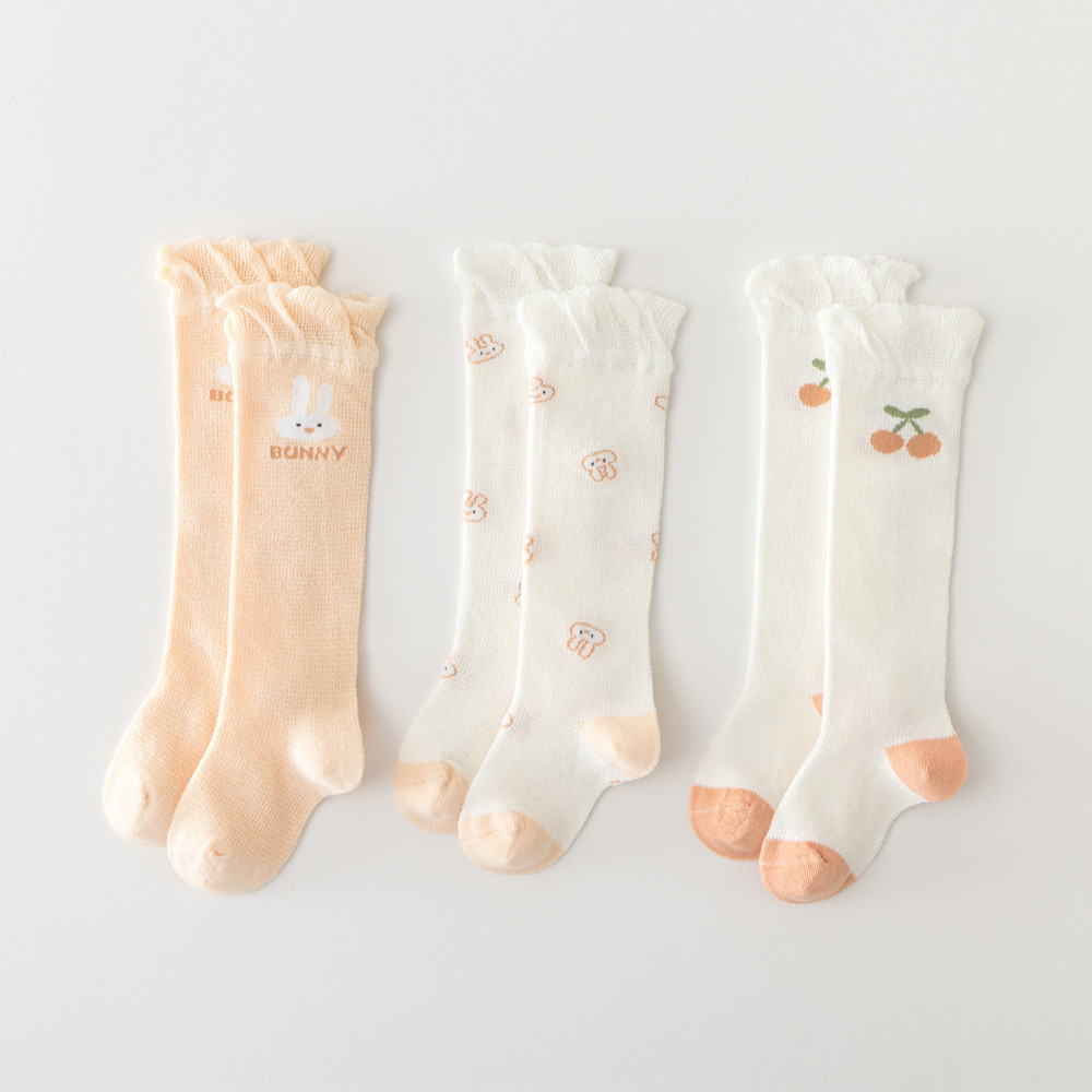 初新生婴幼儿夏季网眼透气薄款松口防蚊无骨长筒袜女宝0-1-3岁