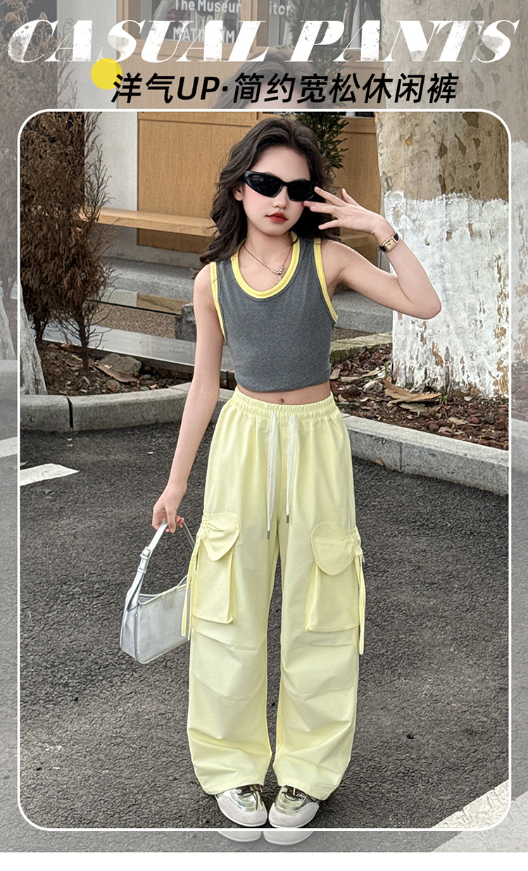 여자 여름 코일 바지 2025 새로운 봄과 여름 어린이 서양식 한국 스타일 소녀의 캐주얼 유행 바지스토어 가기