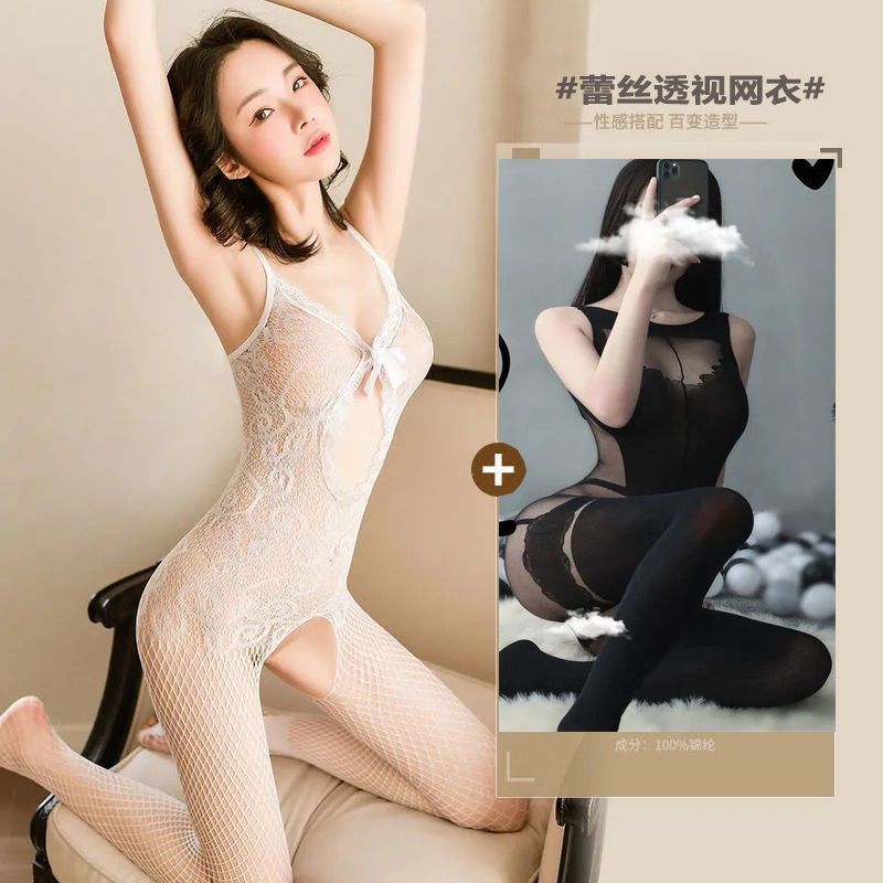 Sy 섹시한 실크 스타킹 옷 투명한 유니폼 침대 유혹 열정 정장 투명한 속이 빈 속옷 오픈 파일스토어 가기