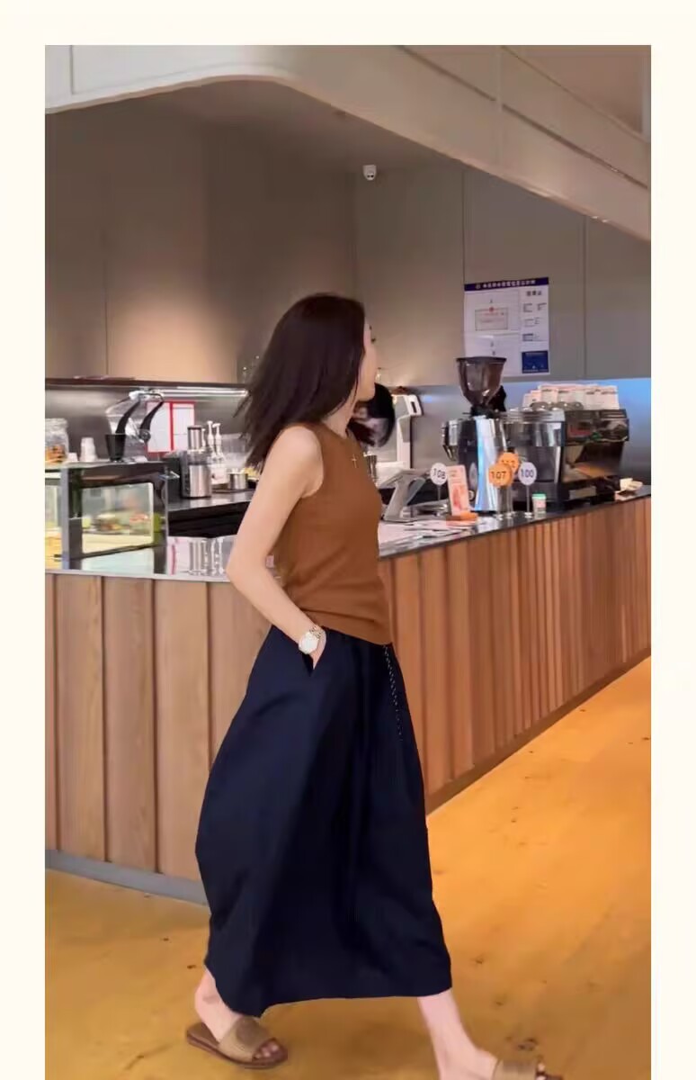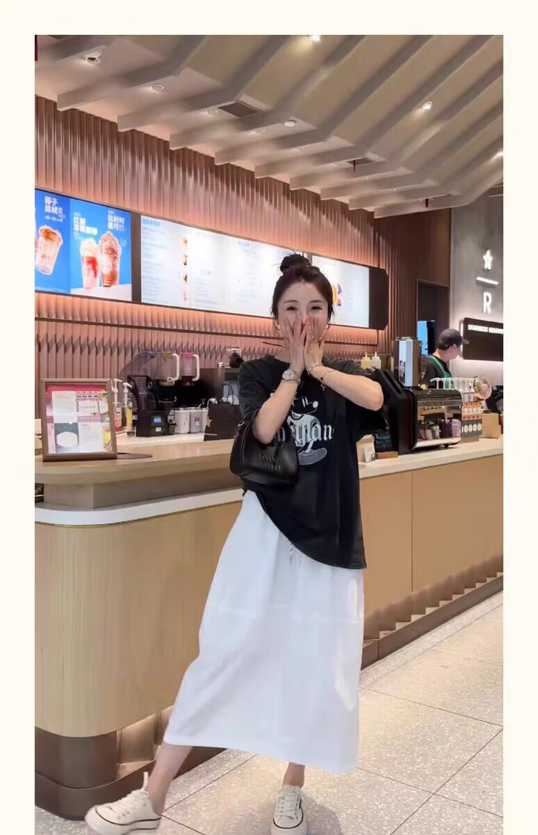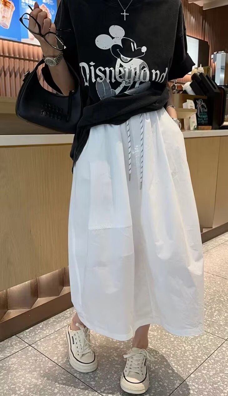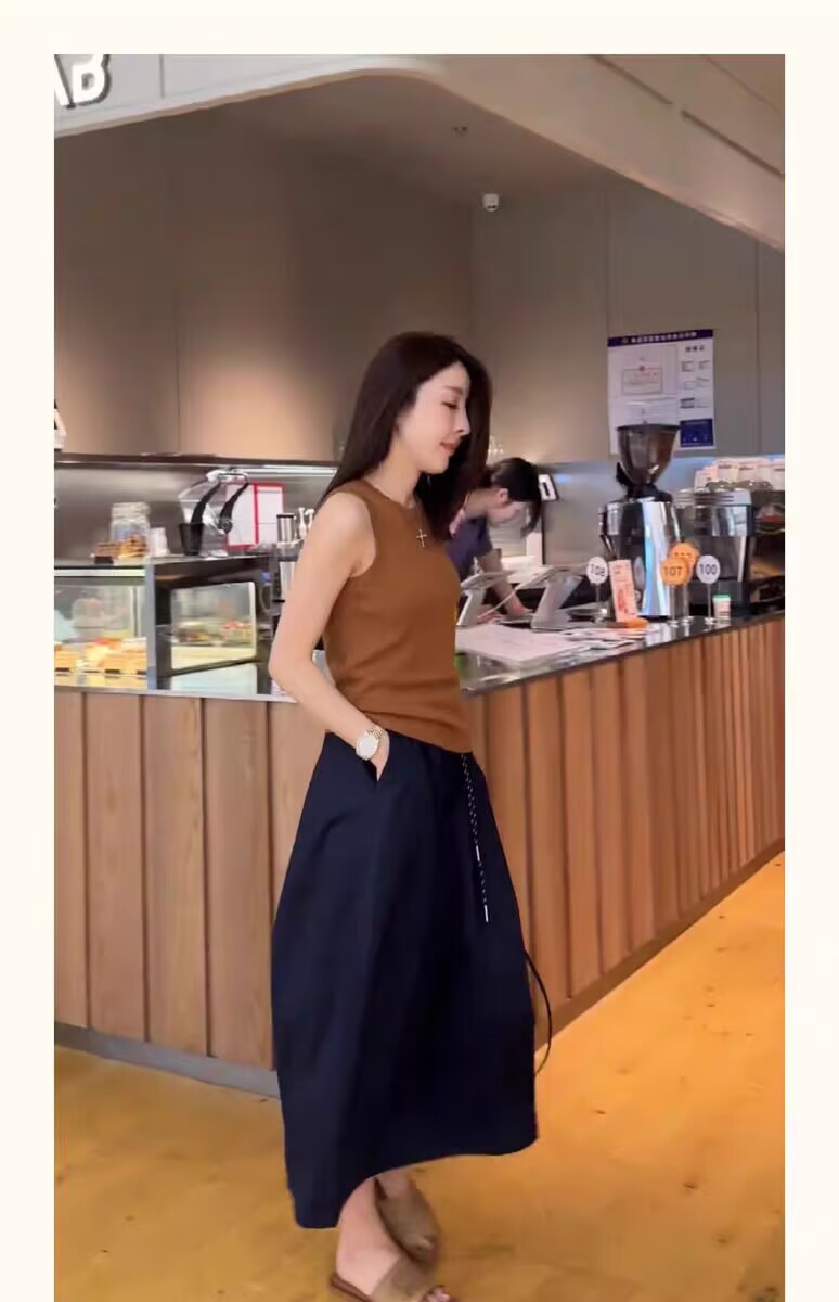 유럽 제품 25 솔리드 컬러 드로스트링 버드 스커트 여성 여름 루즈 슬리밍 다목적 캐주얼 작업복 중간 길이 스커트 여름스토어 가기
